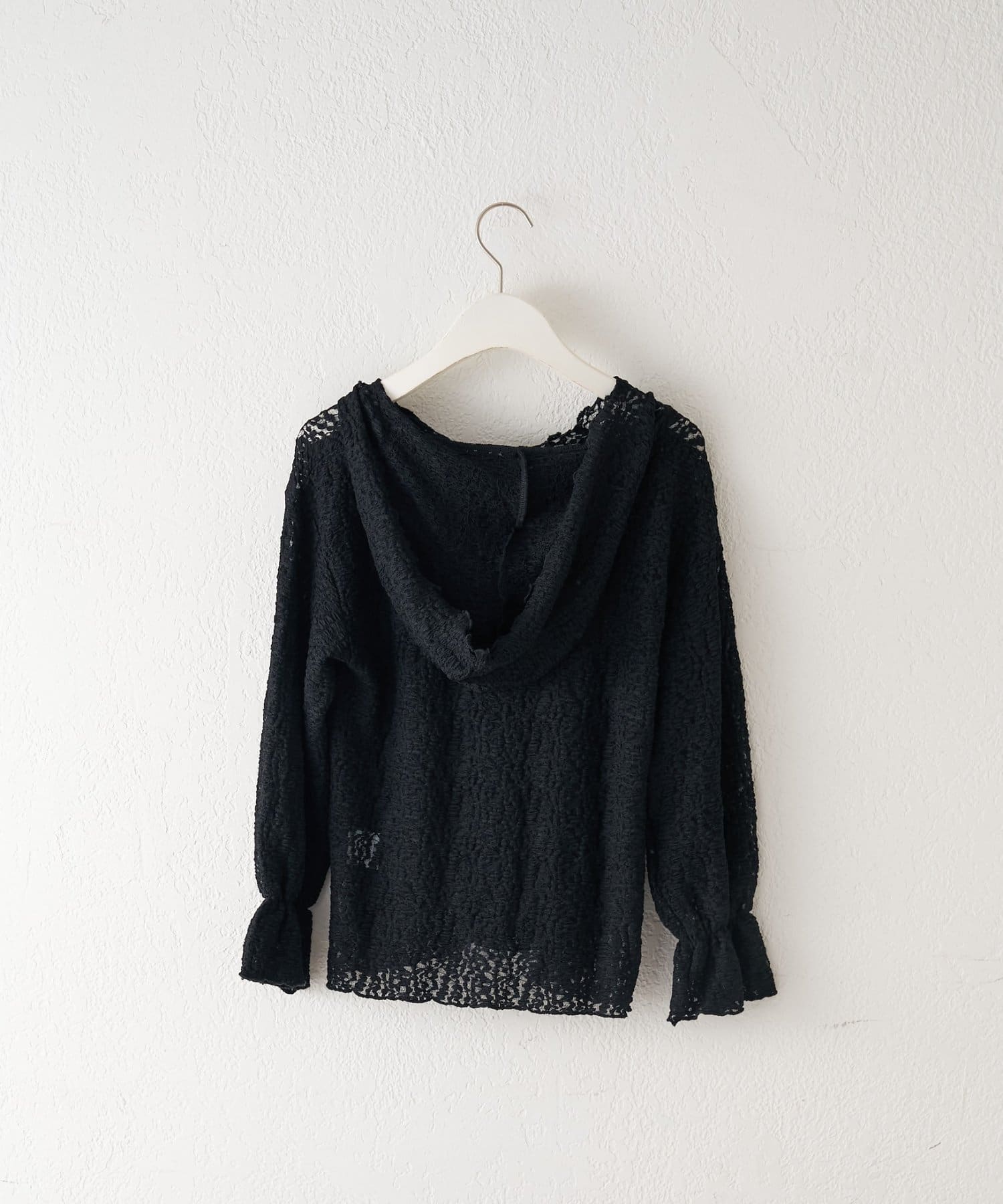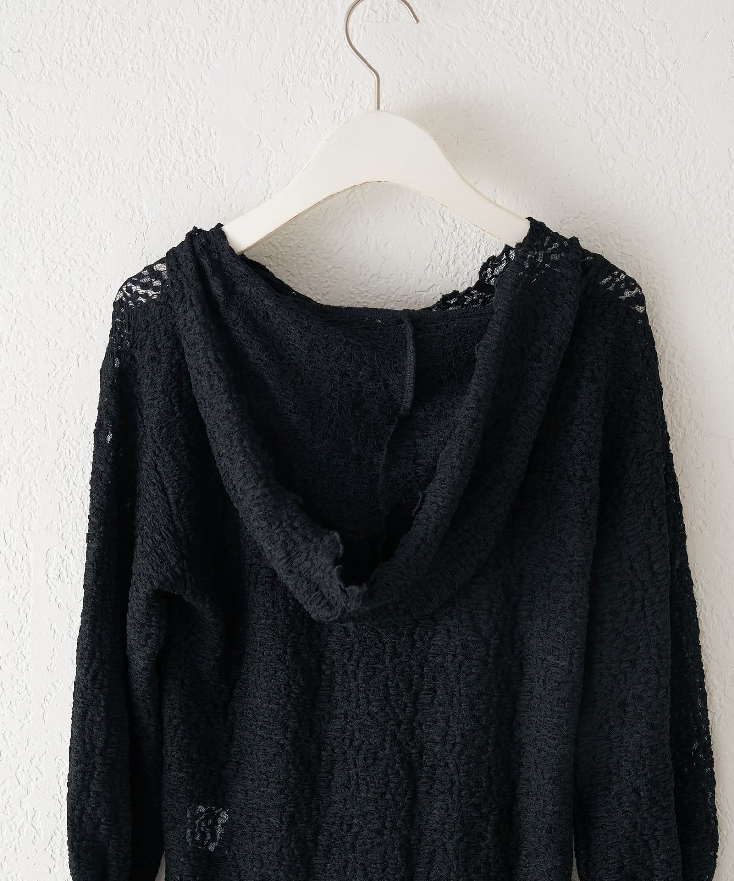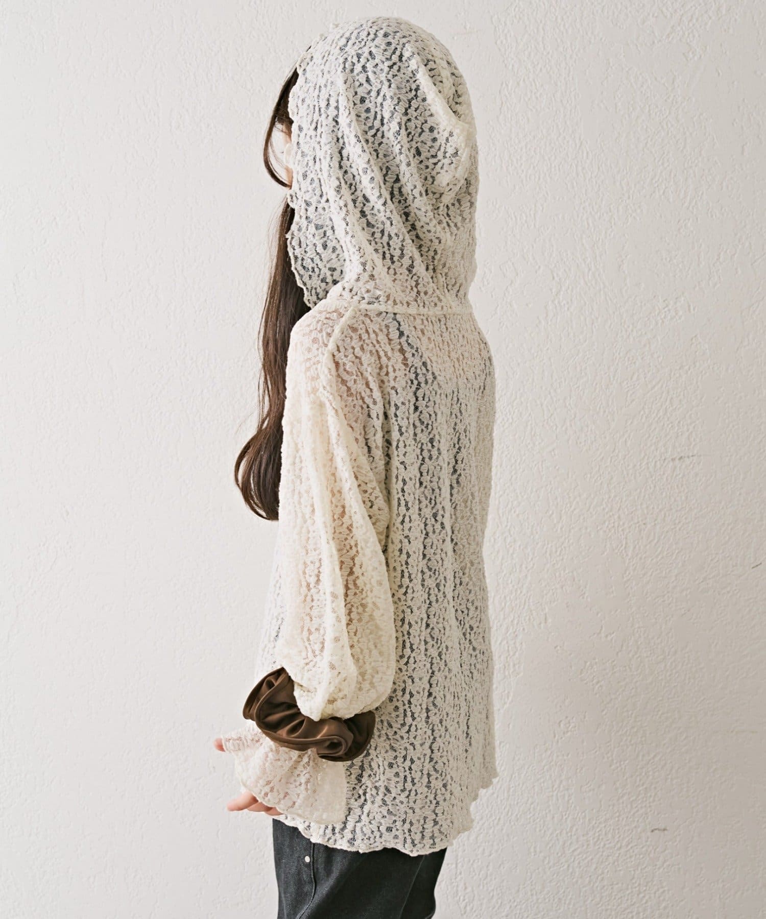 レース素材がおしゃれ見えする”のびのびフーディー”