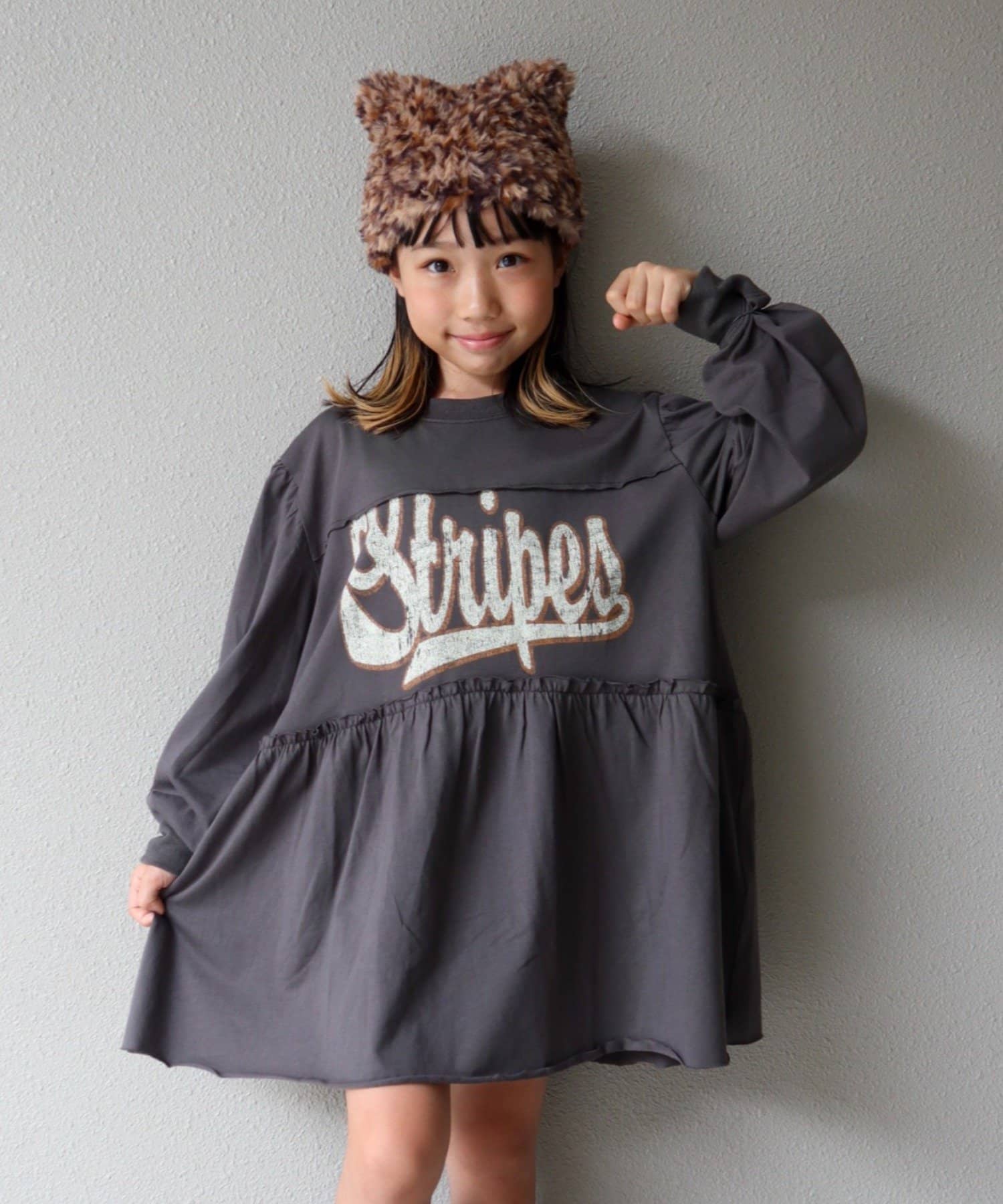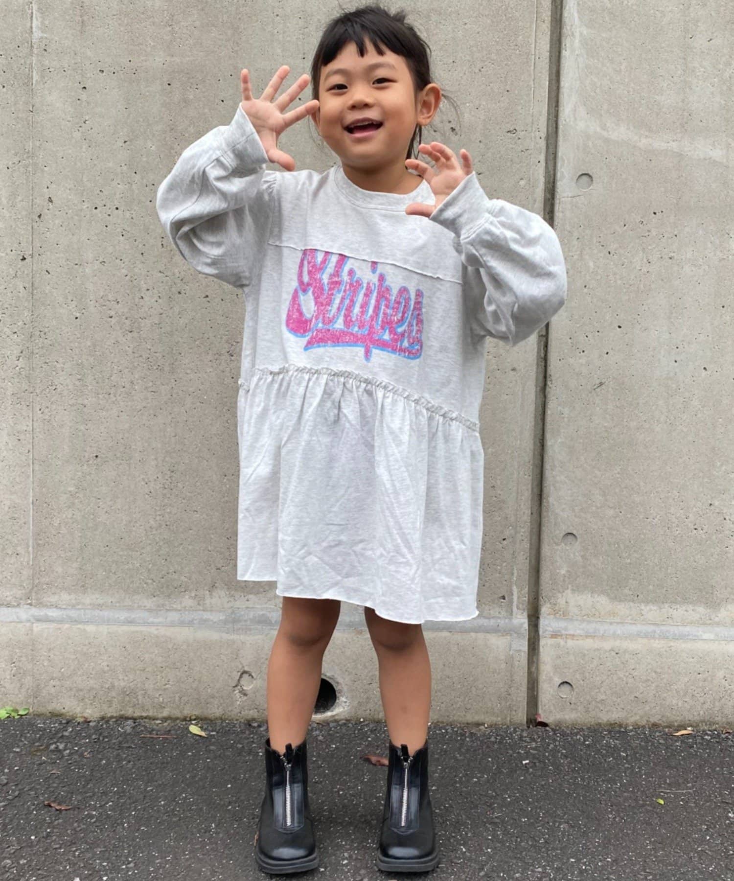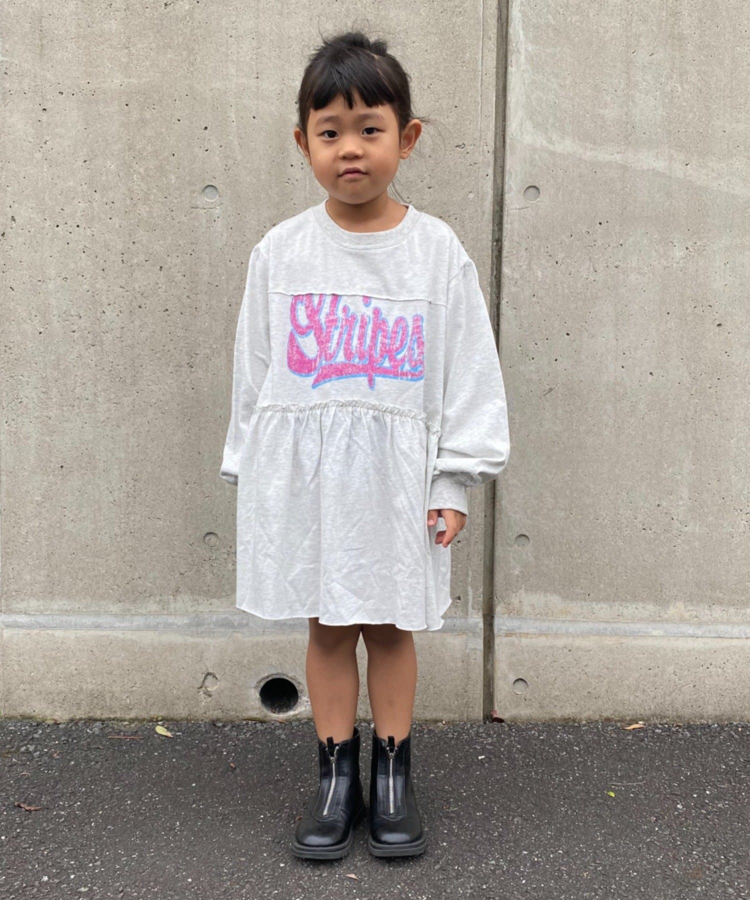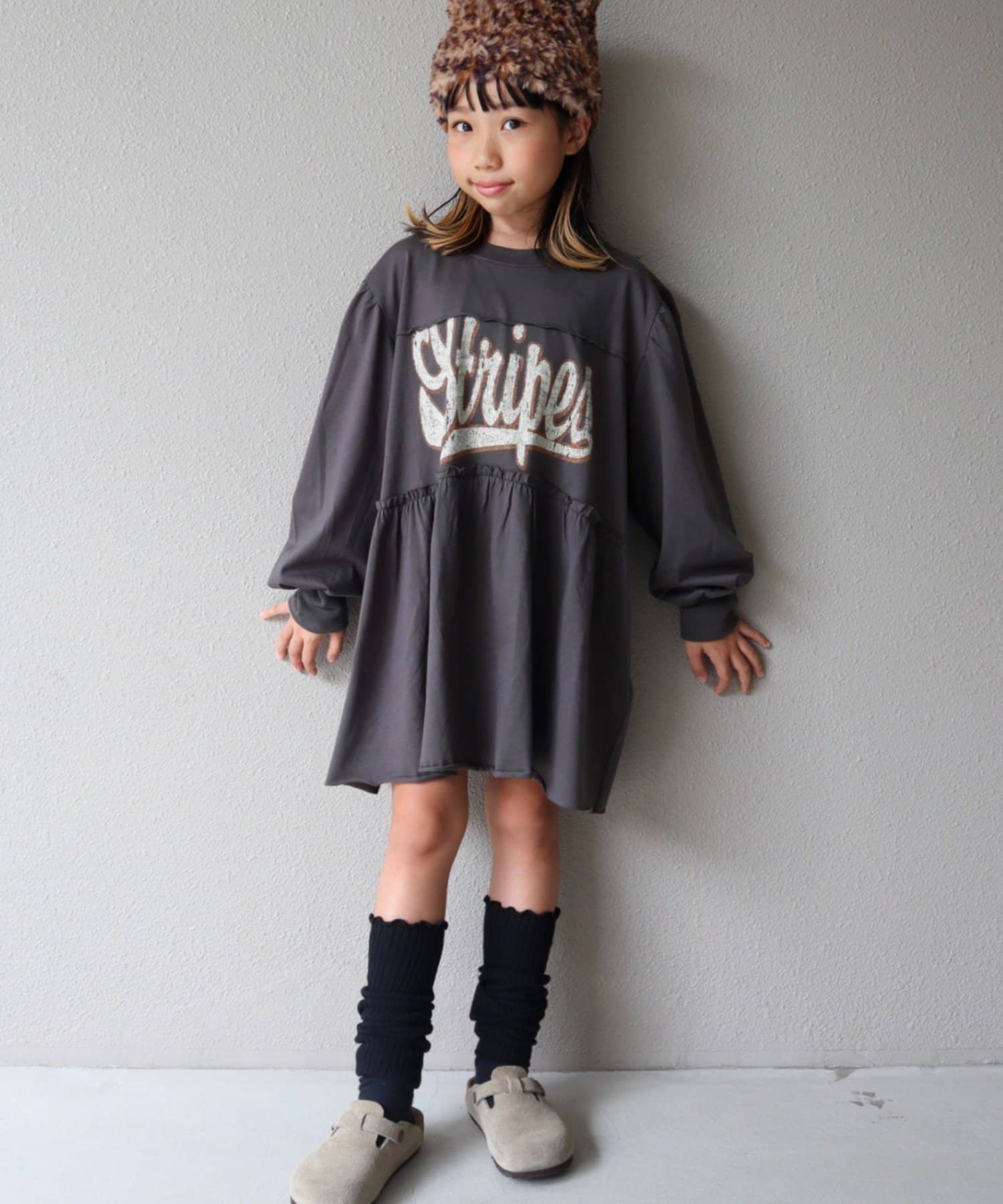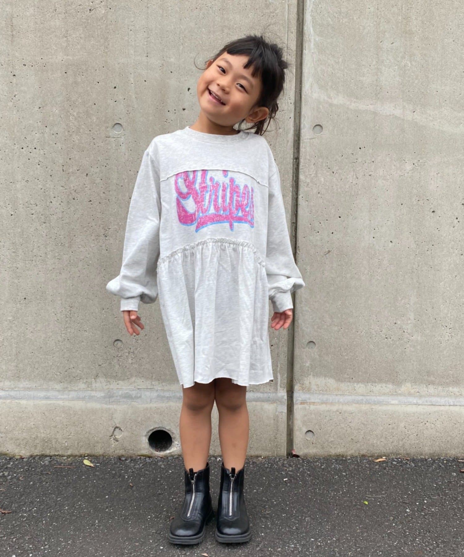 【KIDS】かすれロゴ長袖チュニックミニワンピ