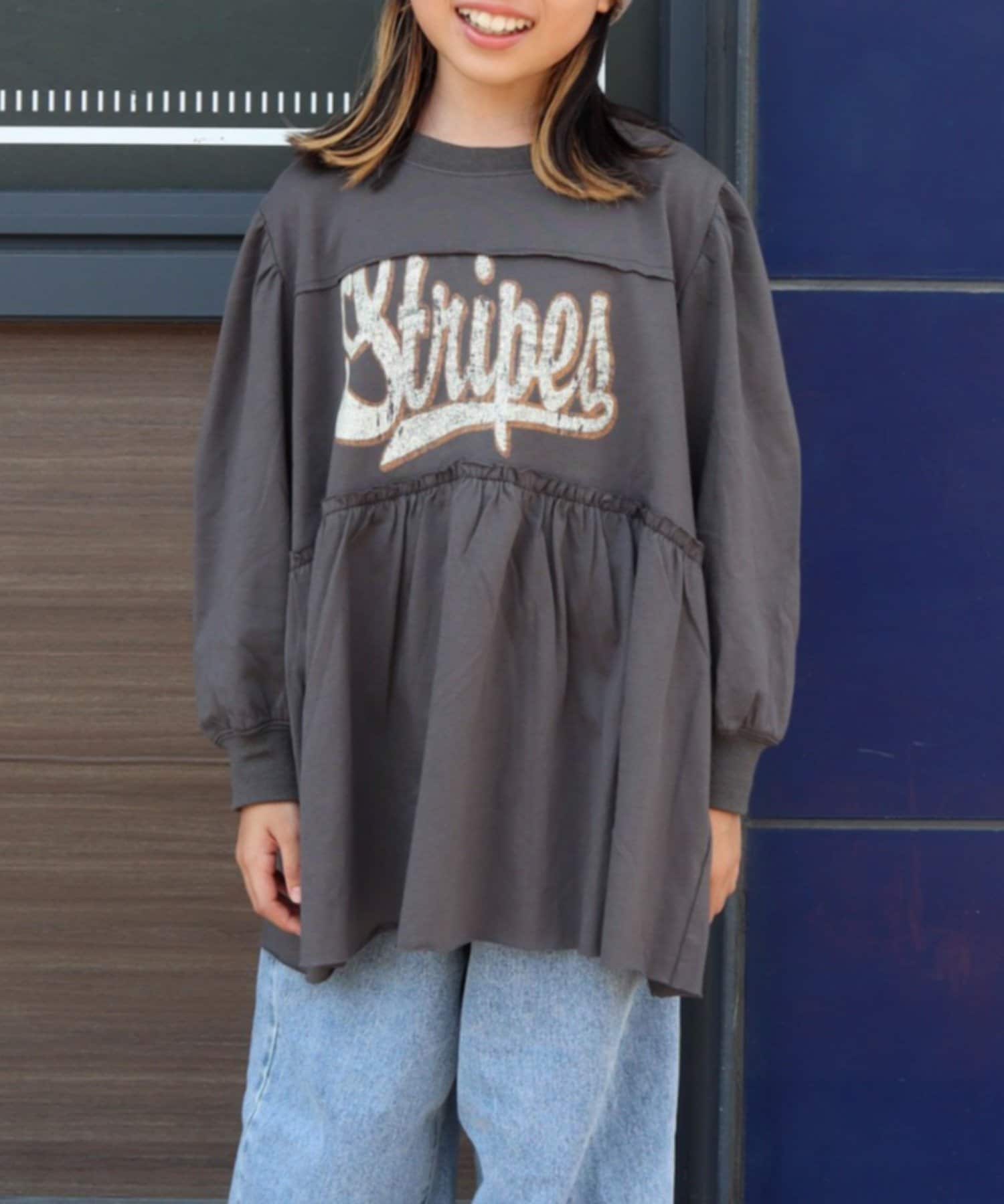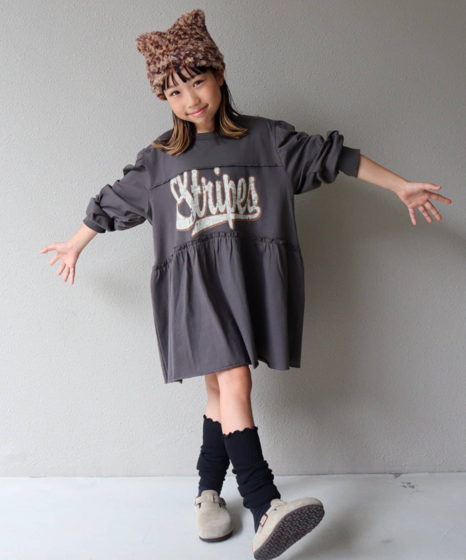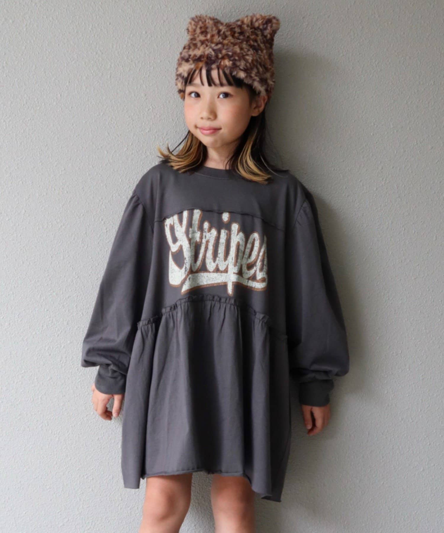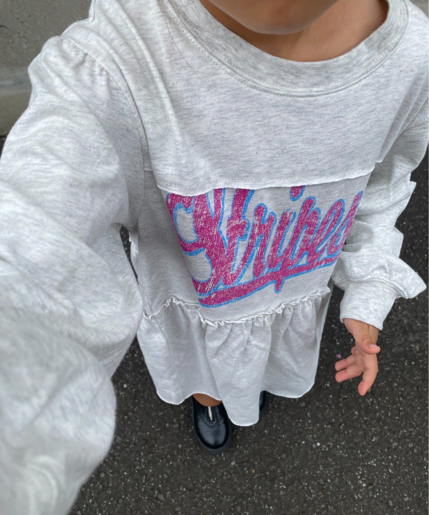 【KIDS】かすれロゴ長袖チュニックミニワンピ