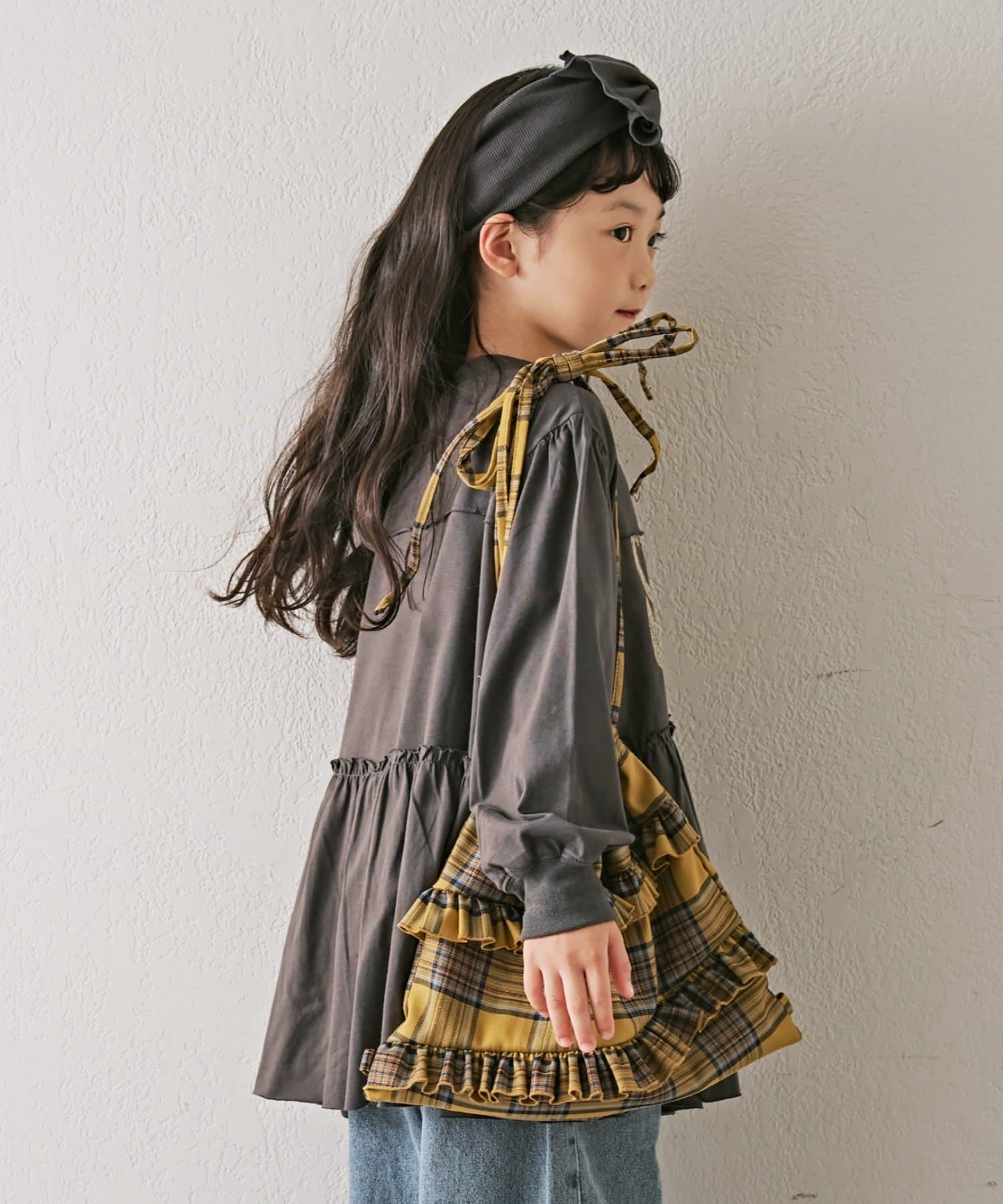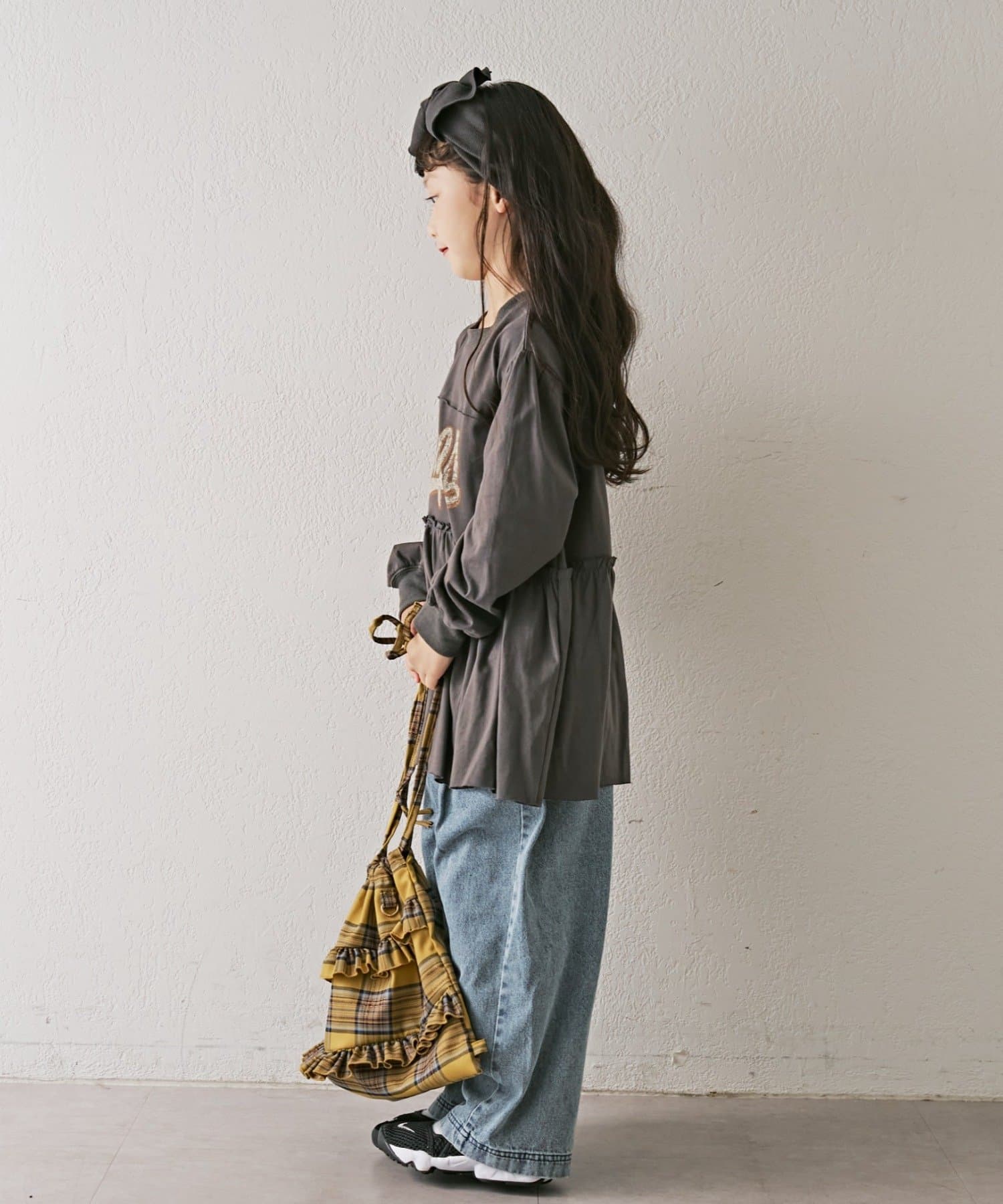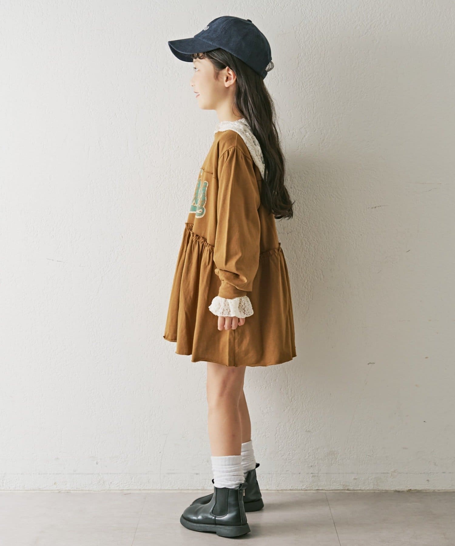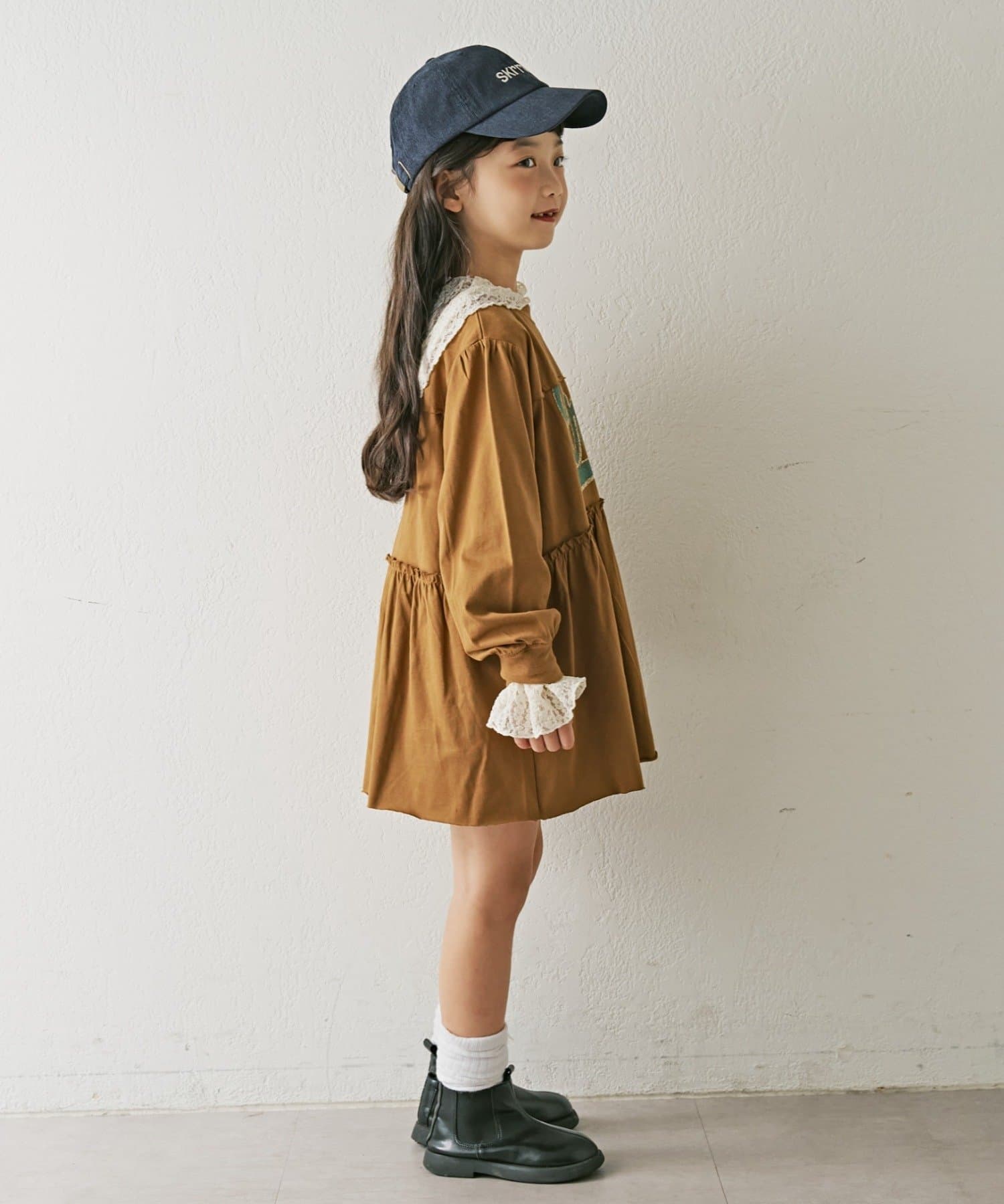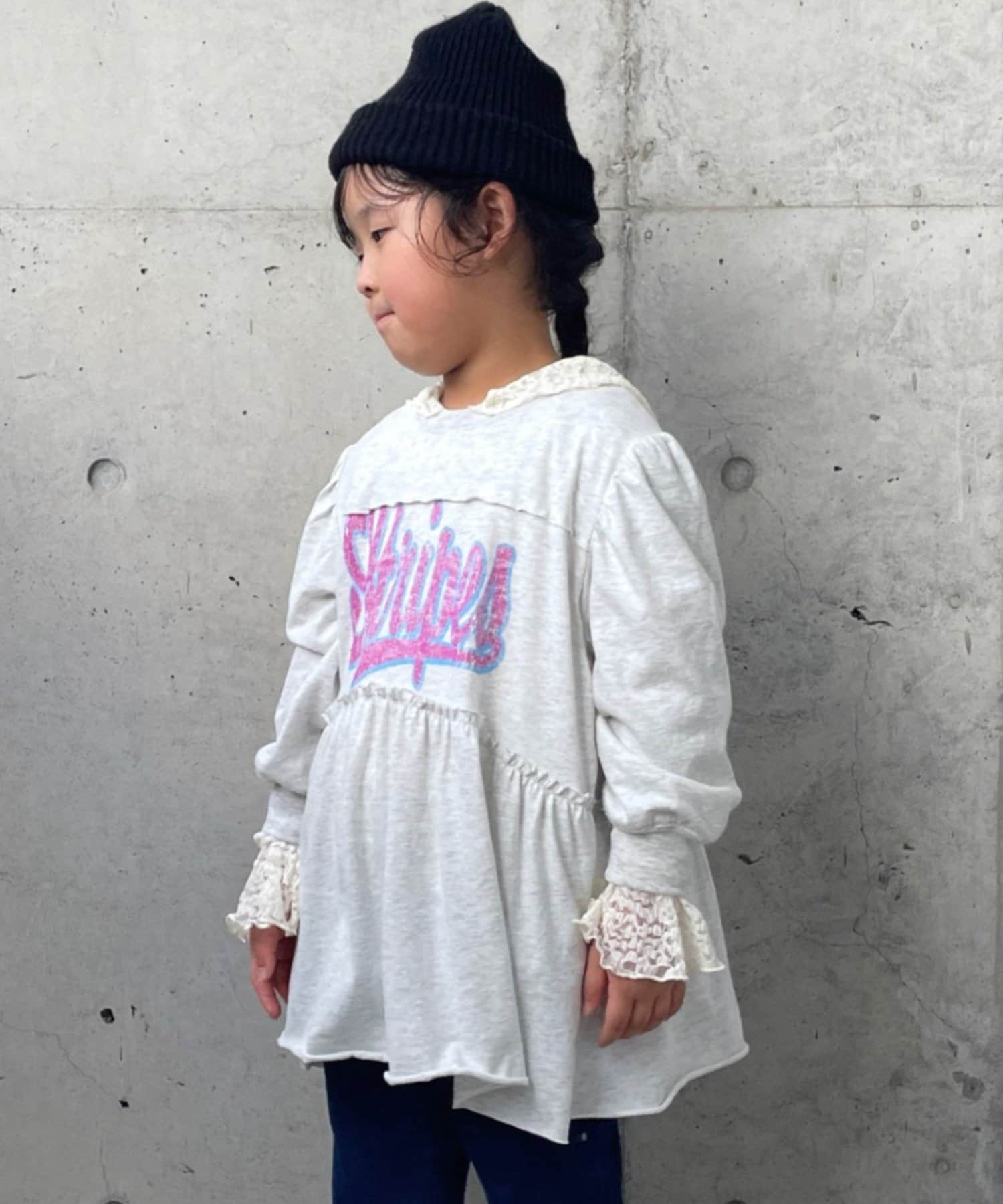 【KIDS】かすれロゴ長袖チュニックミニワンピ