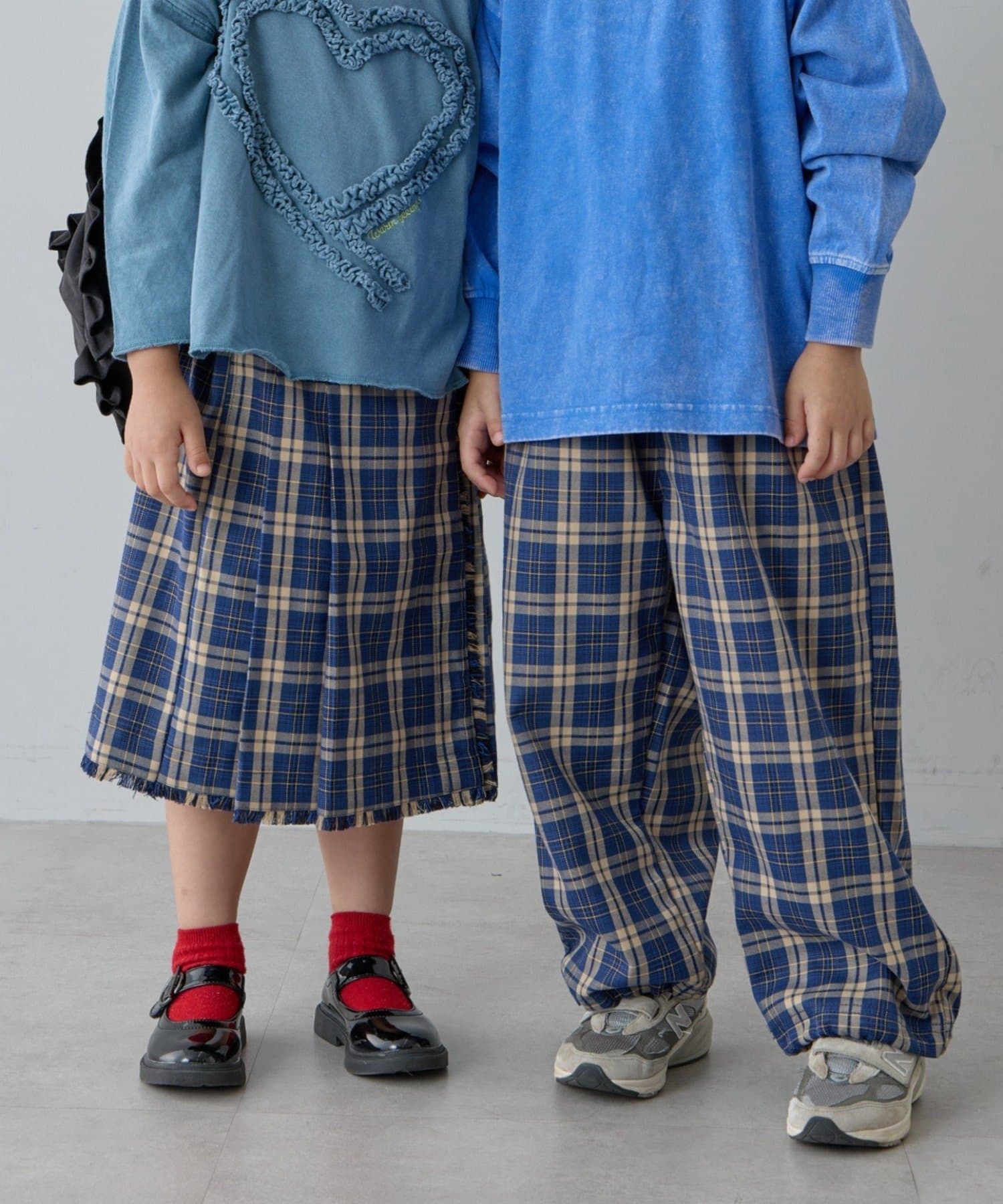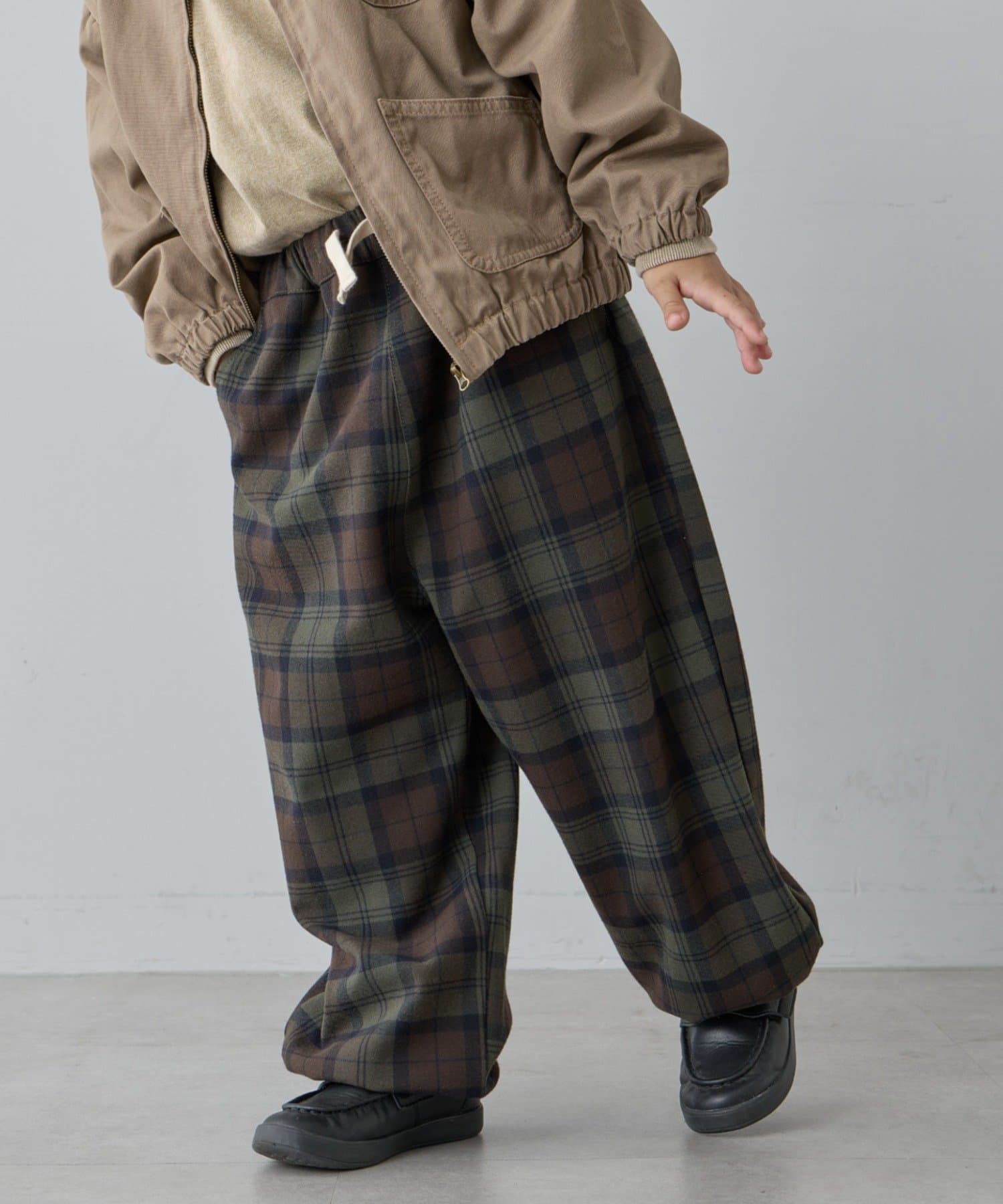 【KIDS】《ジュニアサイズあり》裾ドロストチェックイージーパンツ(ユニセック)