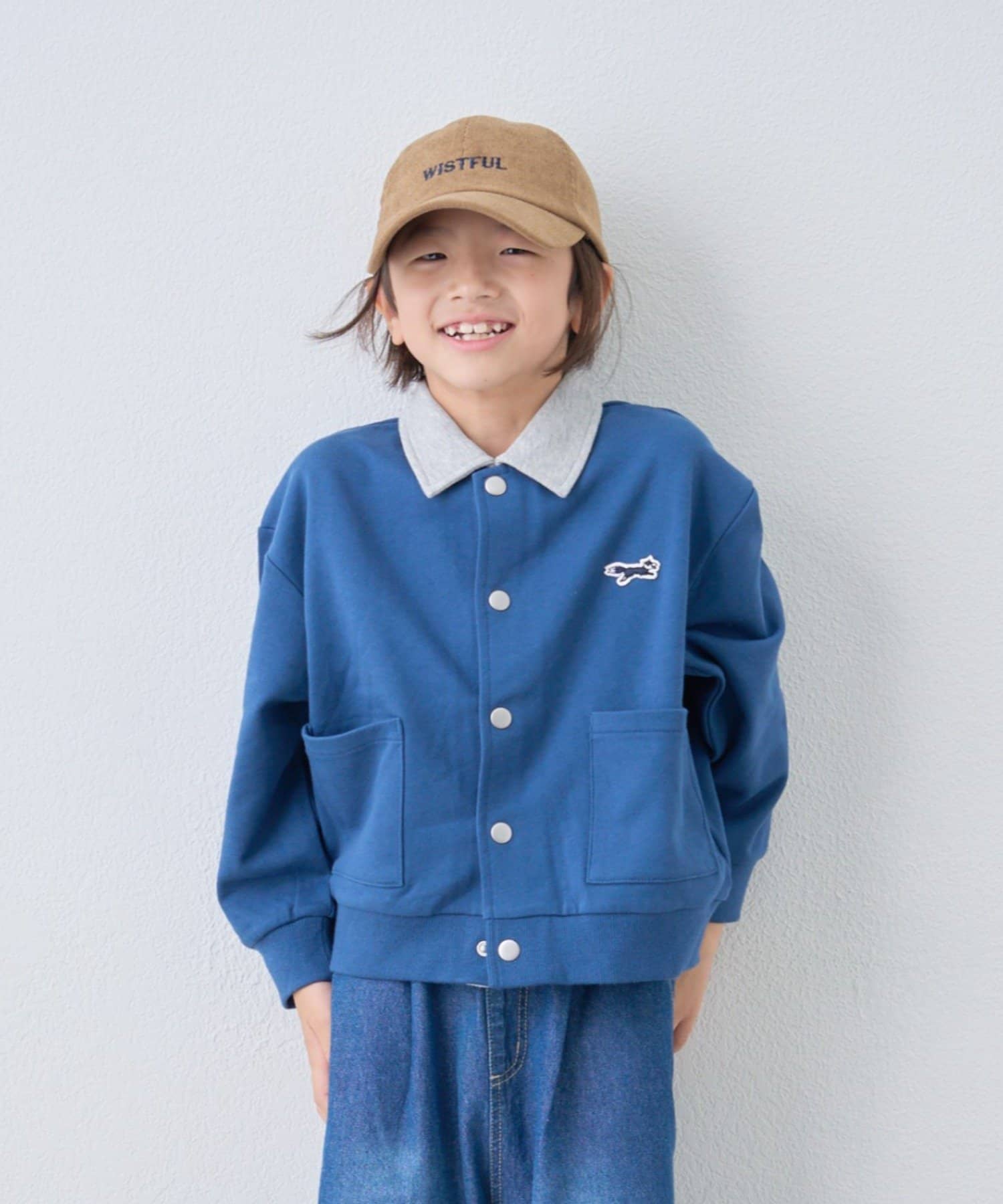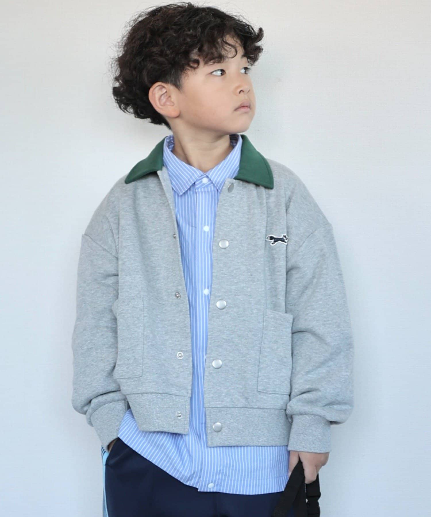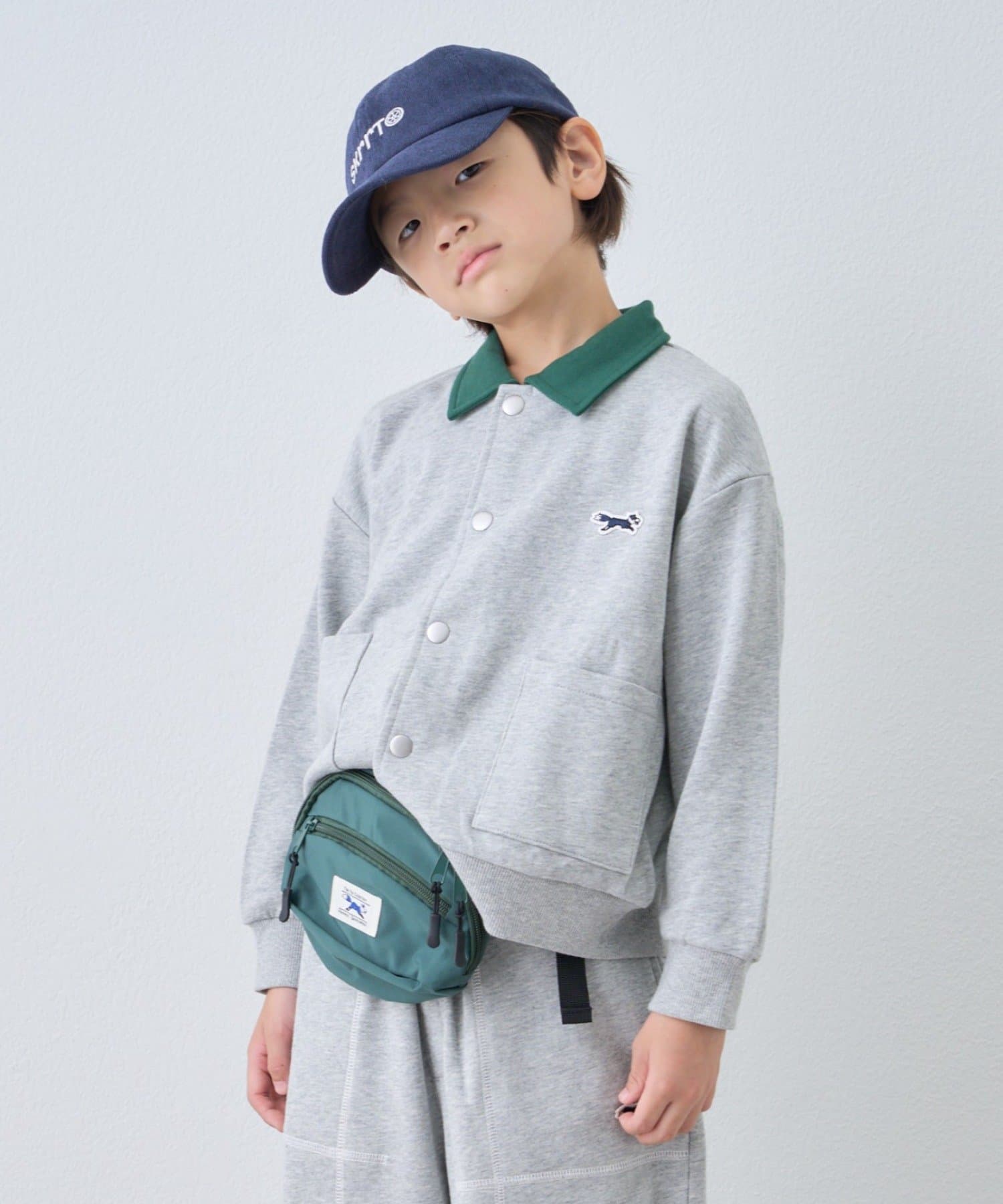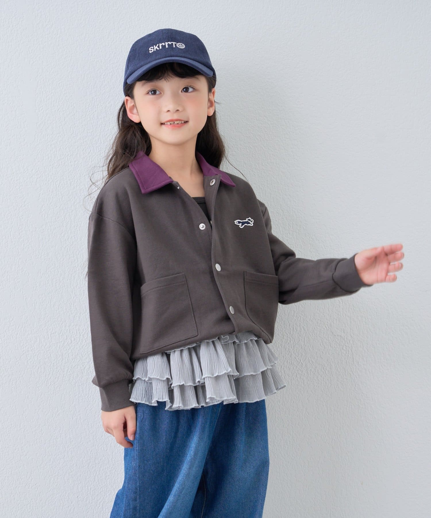 【KIDS】【FOX×TYPY】配色襟付きワンポイント裏毛スナップカーディガン