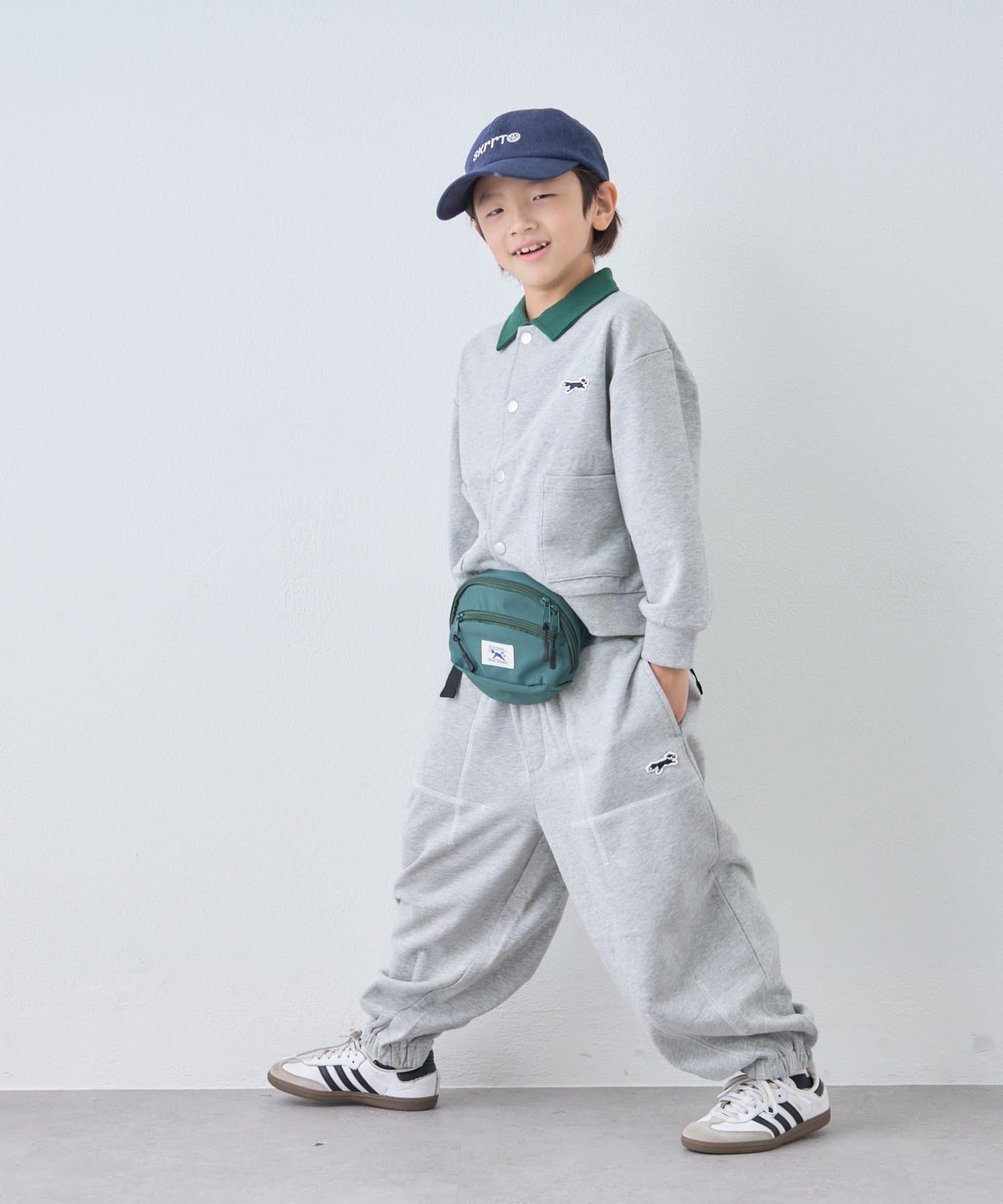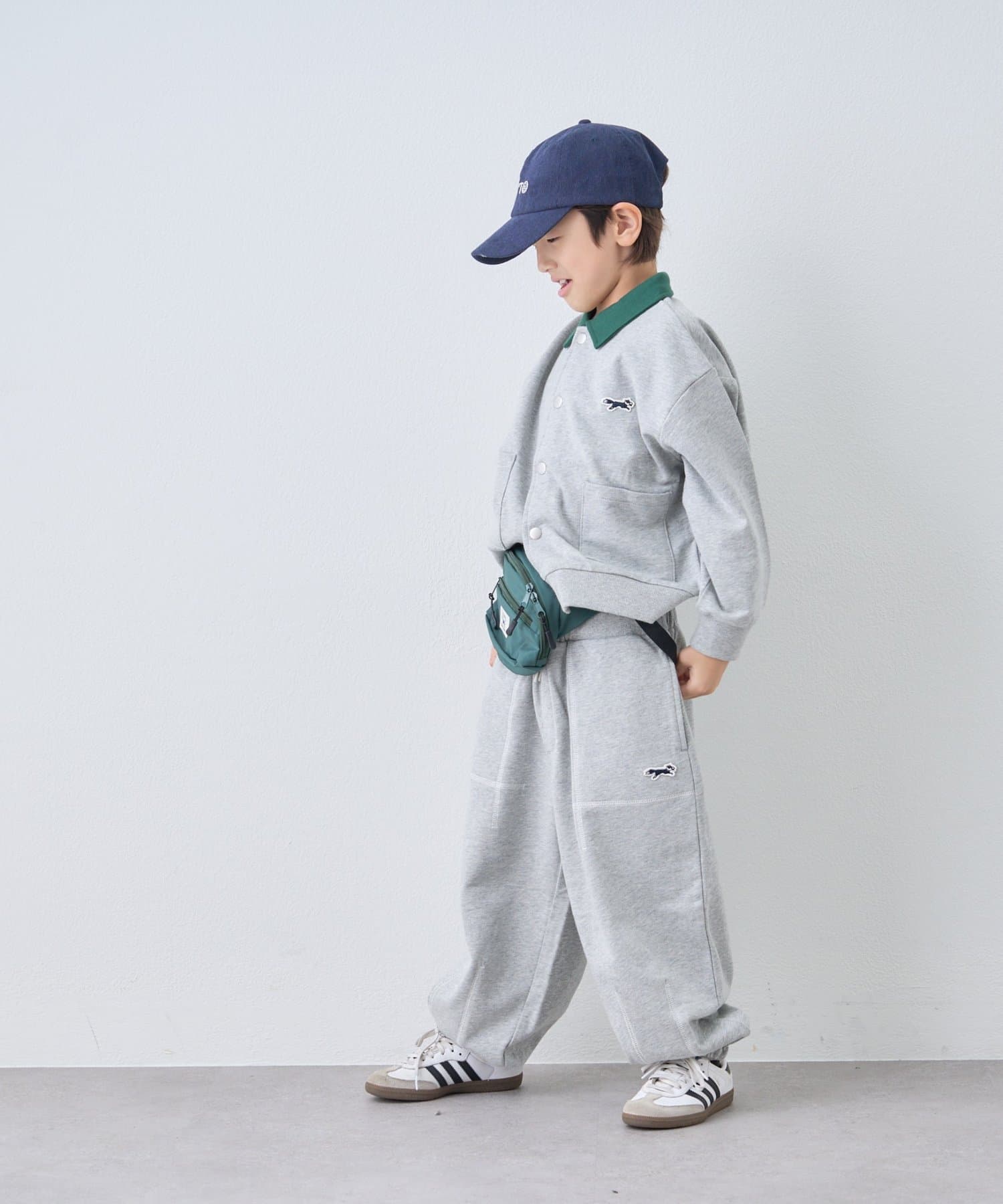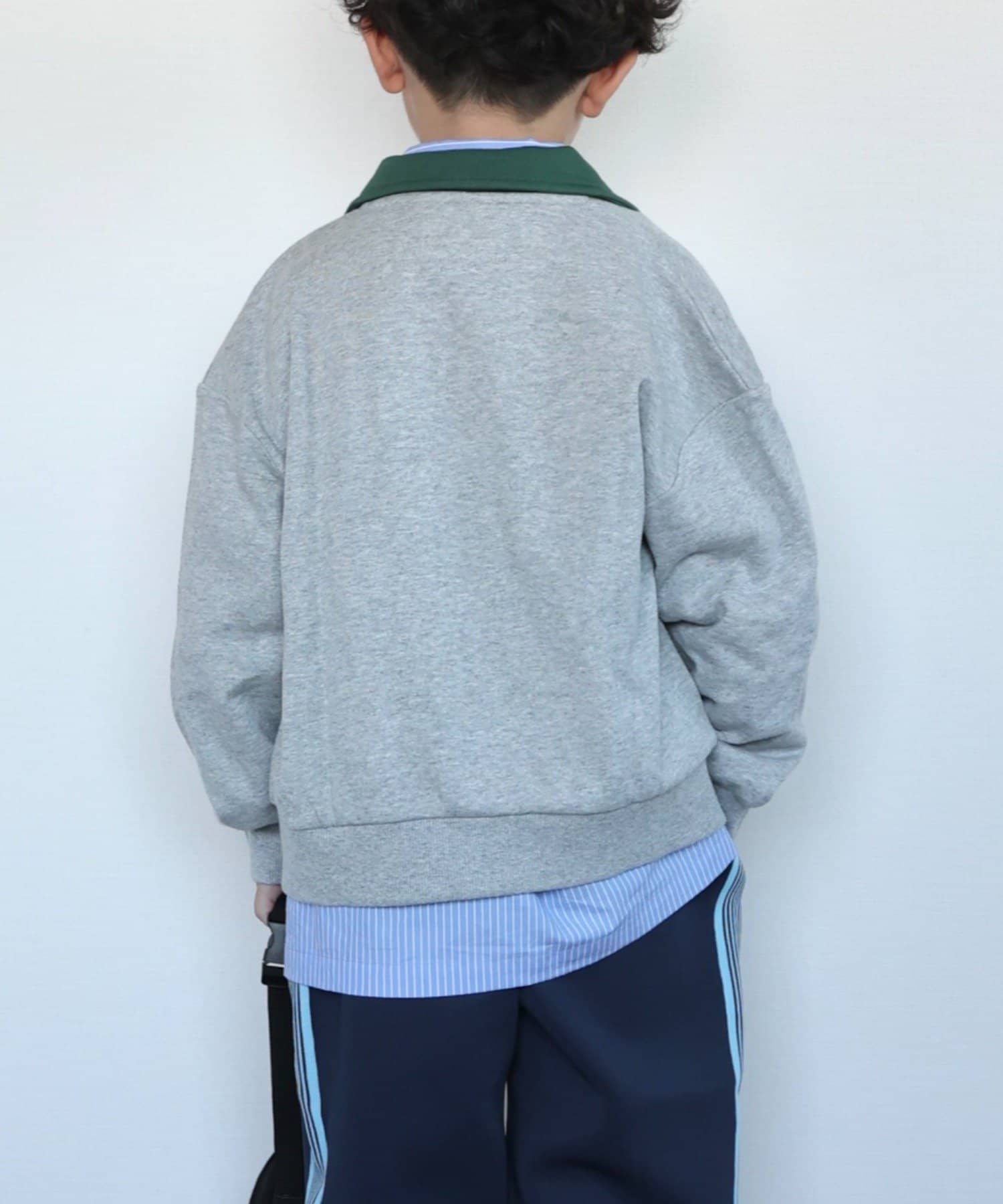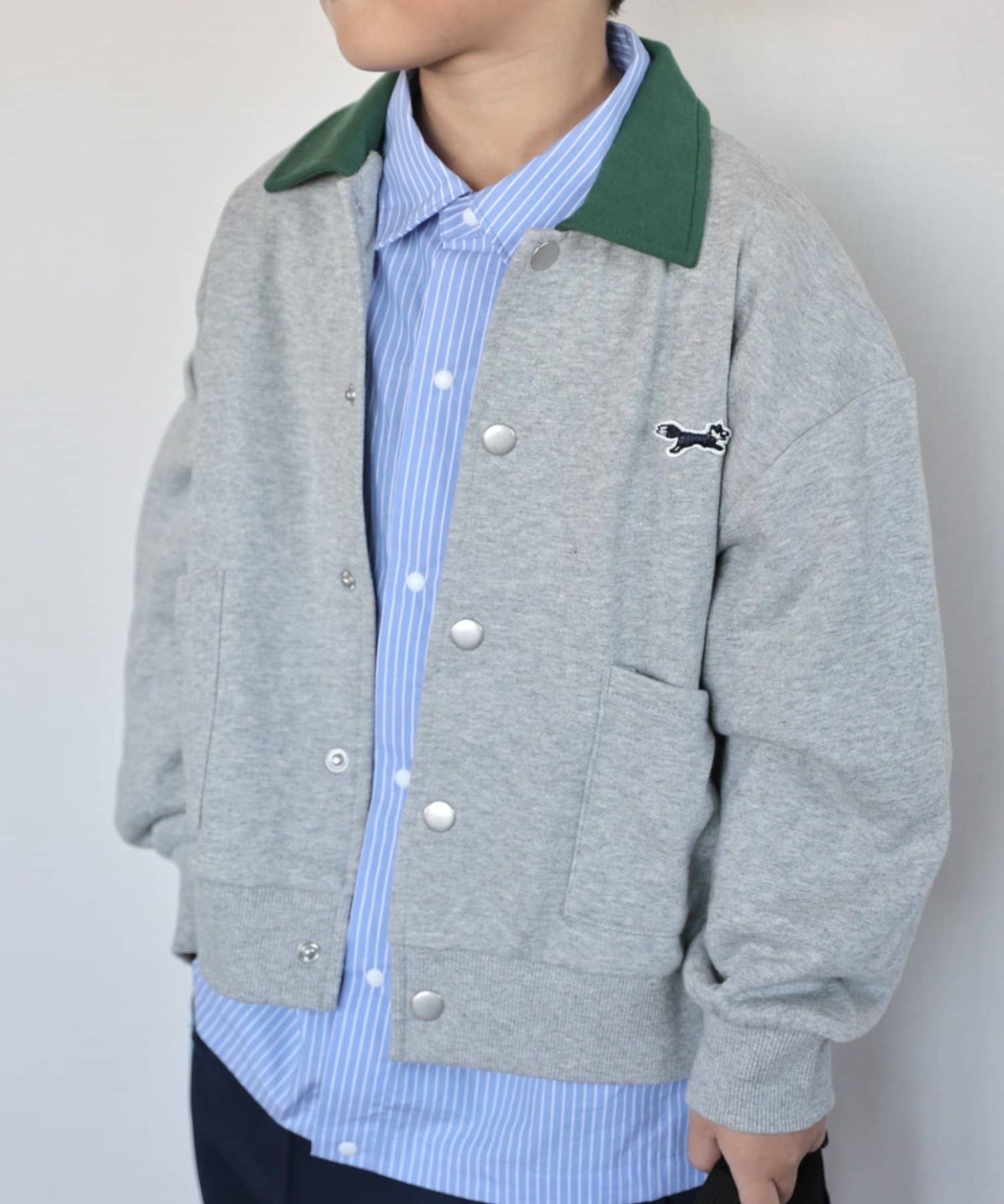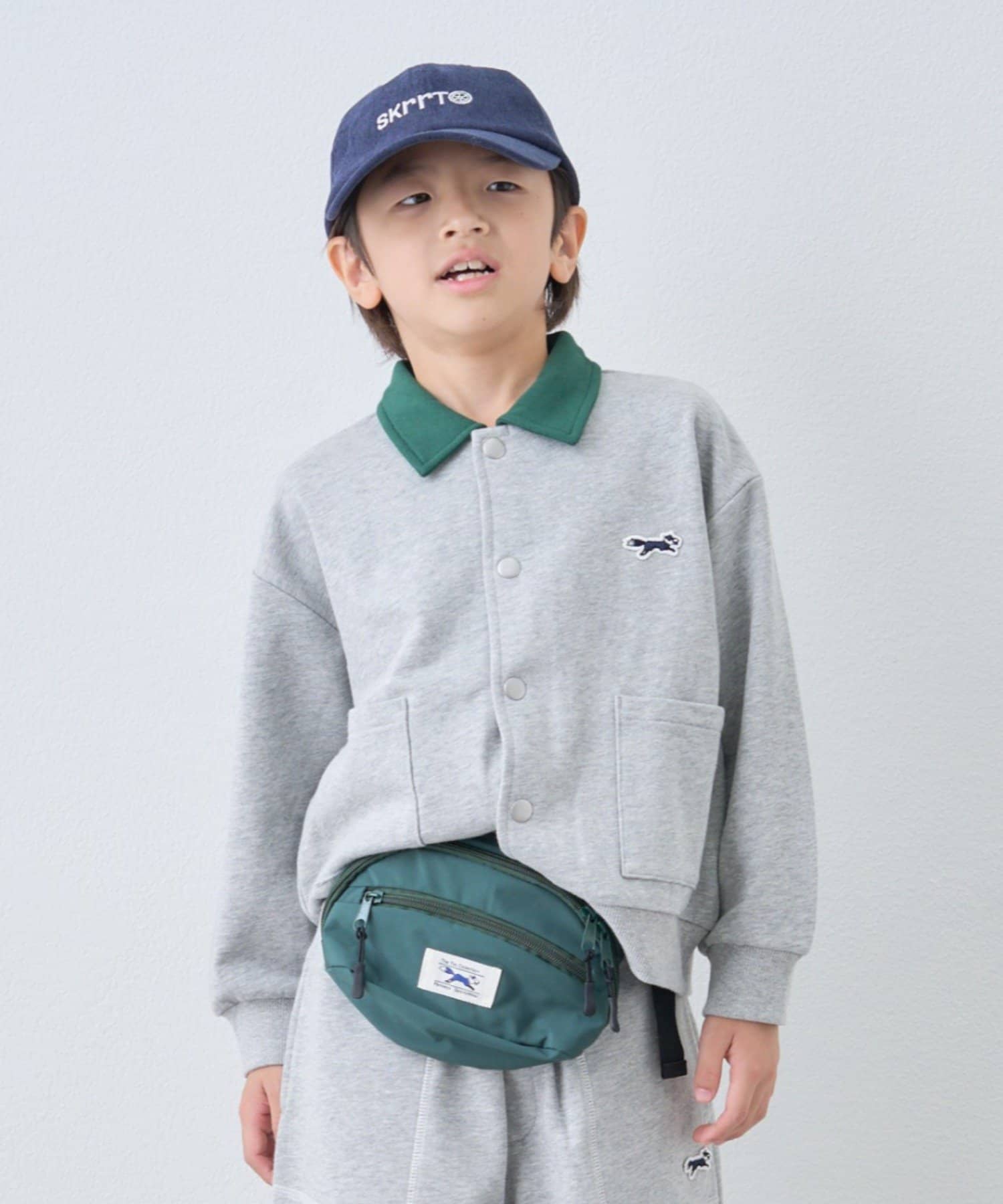 【KIDS】【FOX×TYPY】配色襟付きワンポイント裏毛スナップカーディガン