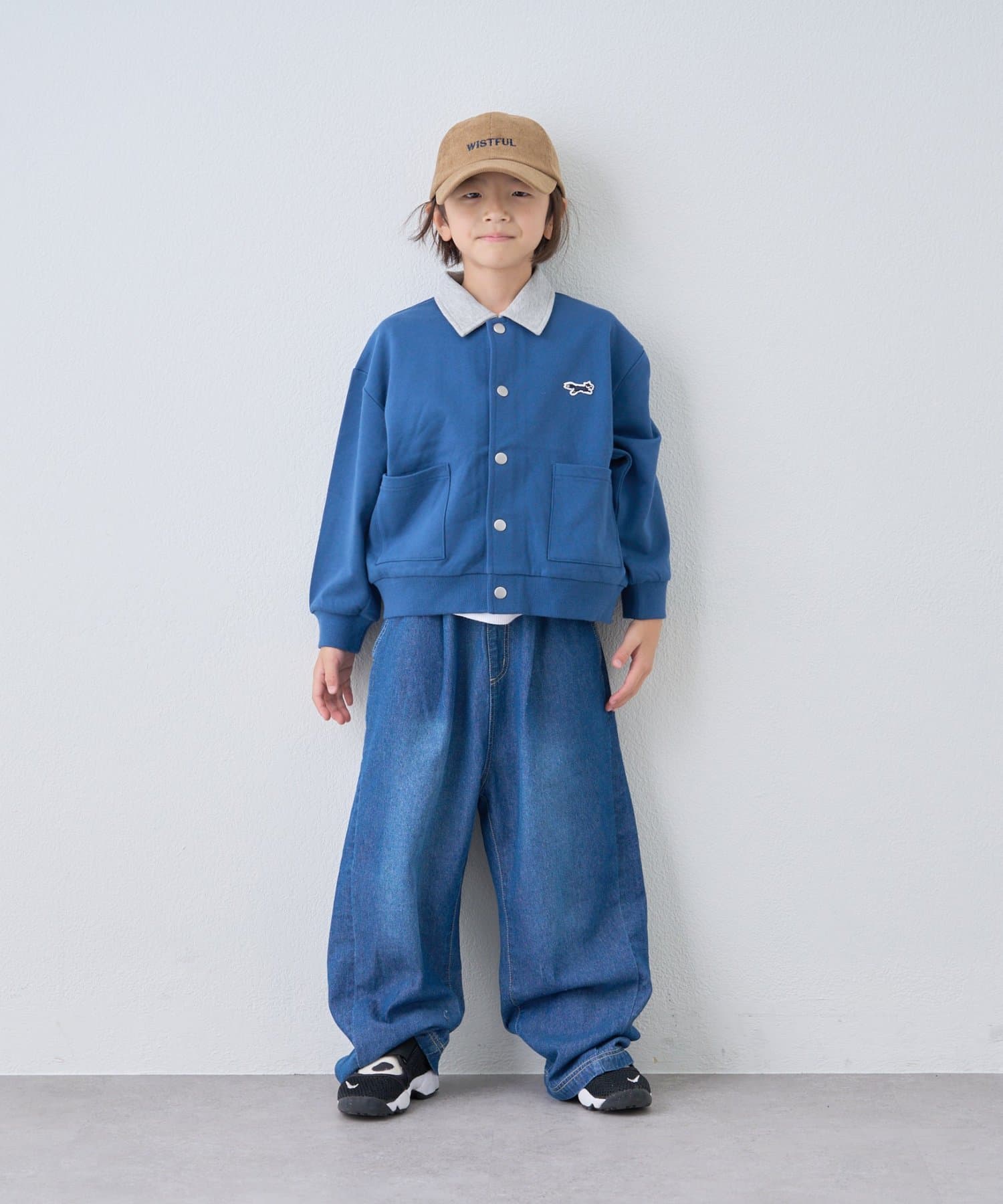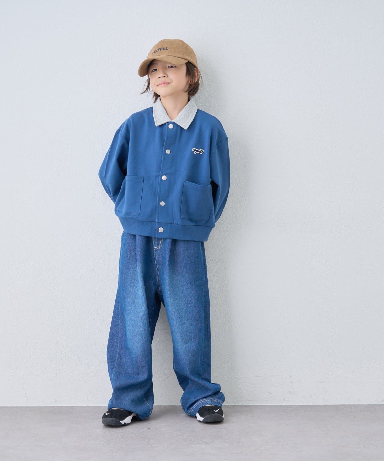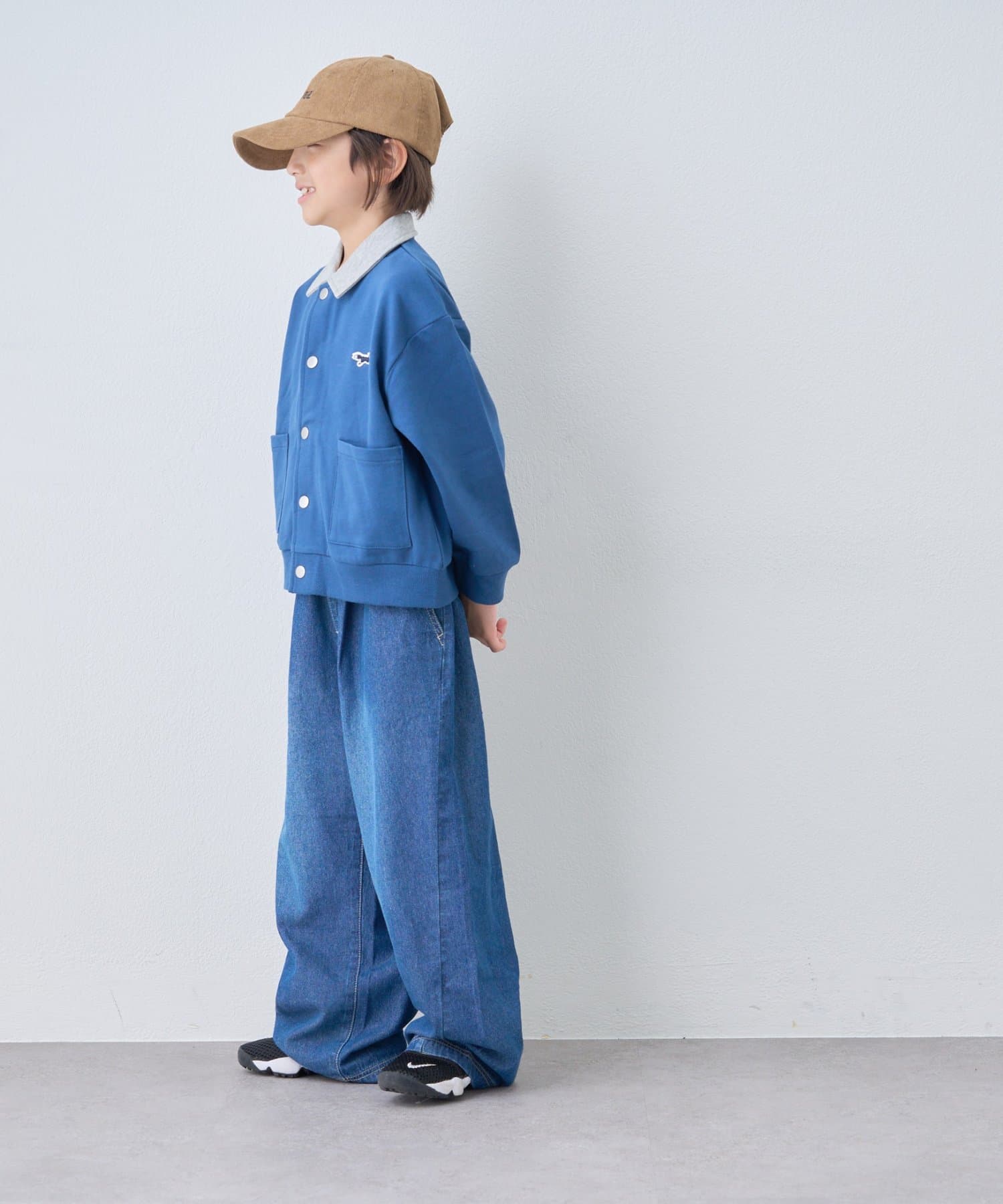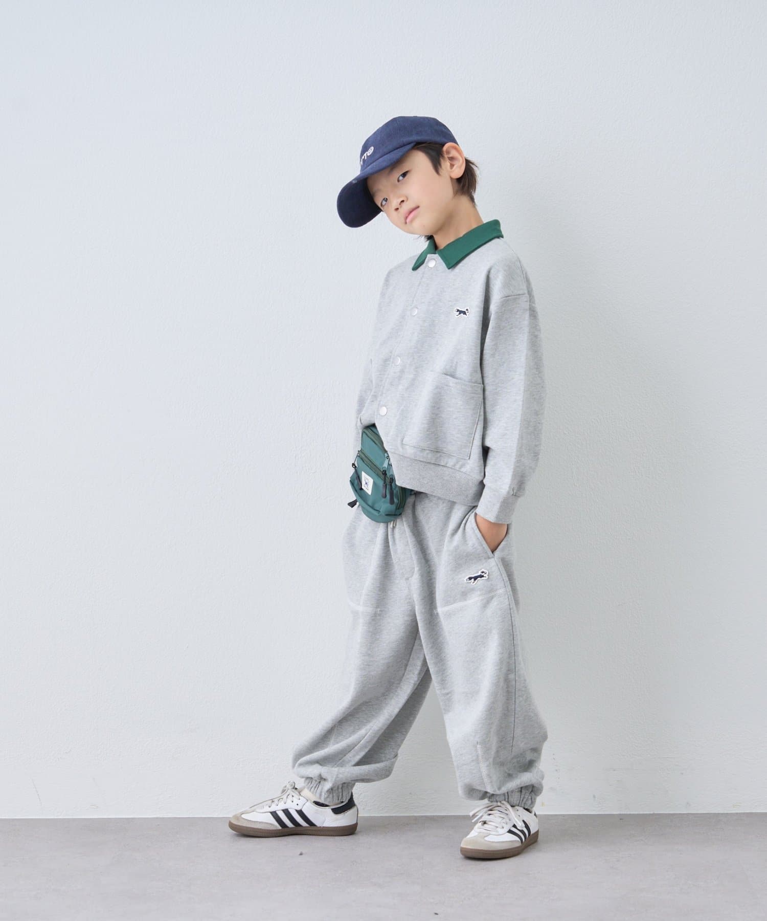 【KIDS】【FOX×TYPY】配色襟付きワンポイント裏毛スナップカーディガン
