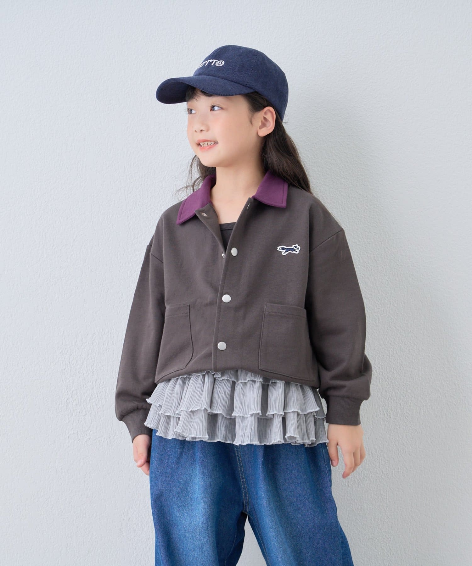 TOP > CIAOPANIC TYPY > キッズ > トップス > カーディガン/ボレロ > 【KIDS】【FOX×TYPY】配色襟付きワンポイント裏毛スナップカーディガン