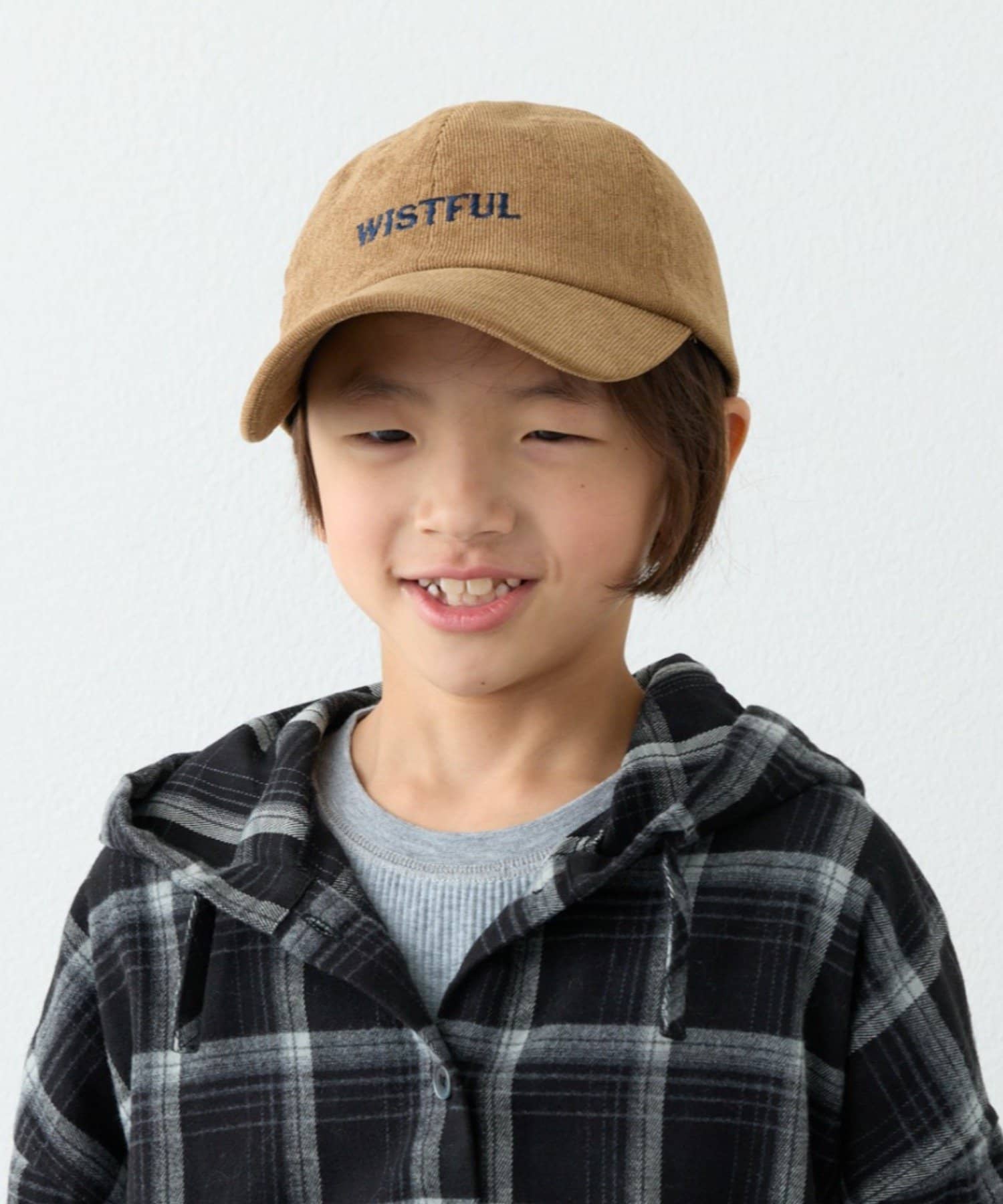 綿100%のコーデュロイ素材を使用した、あたたかみのあるキッズキャップです。