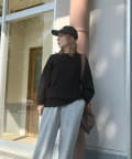 ゆったりとルーズなサイジングで、シンプルながらもトレンド感のある印象です。