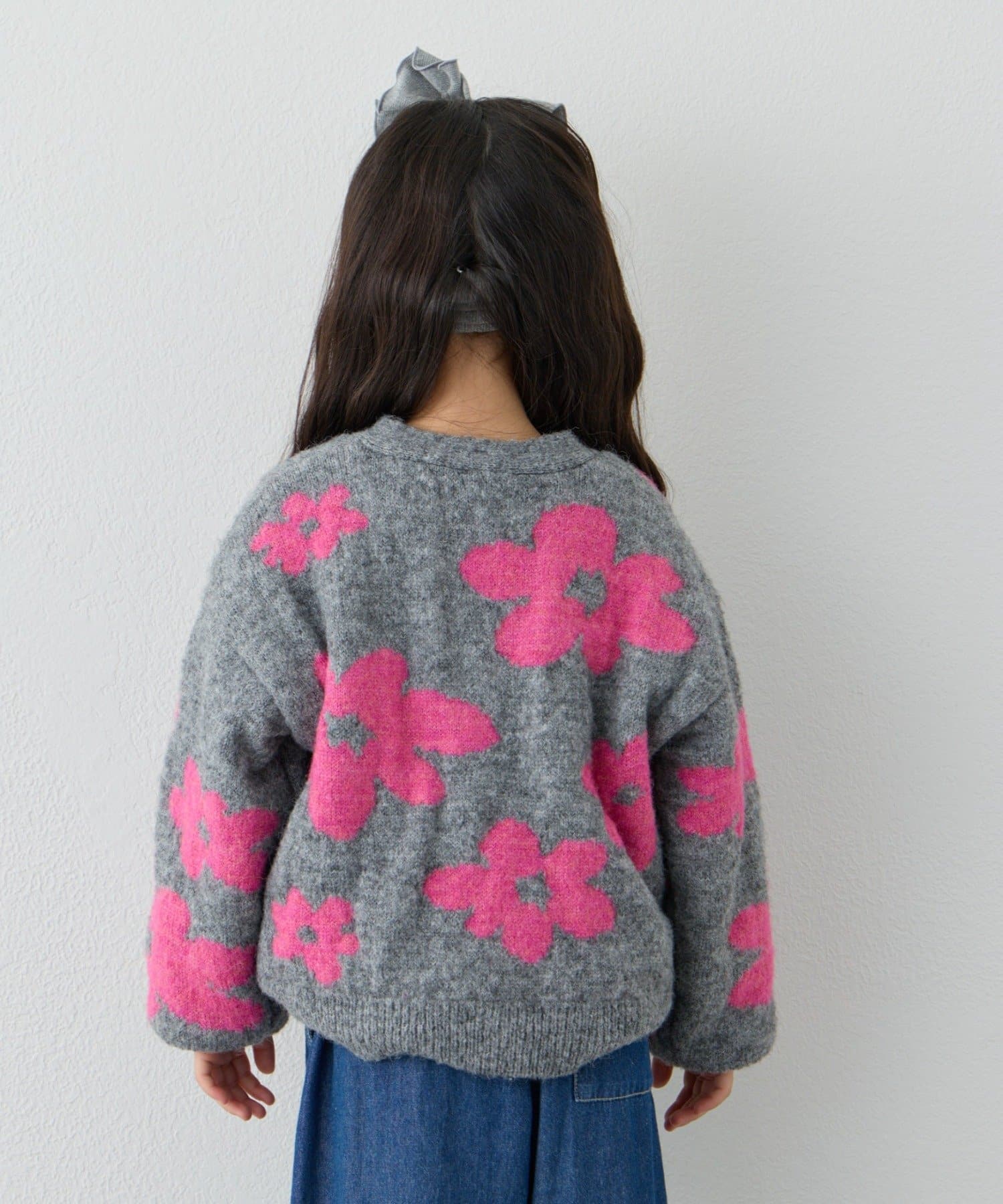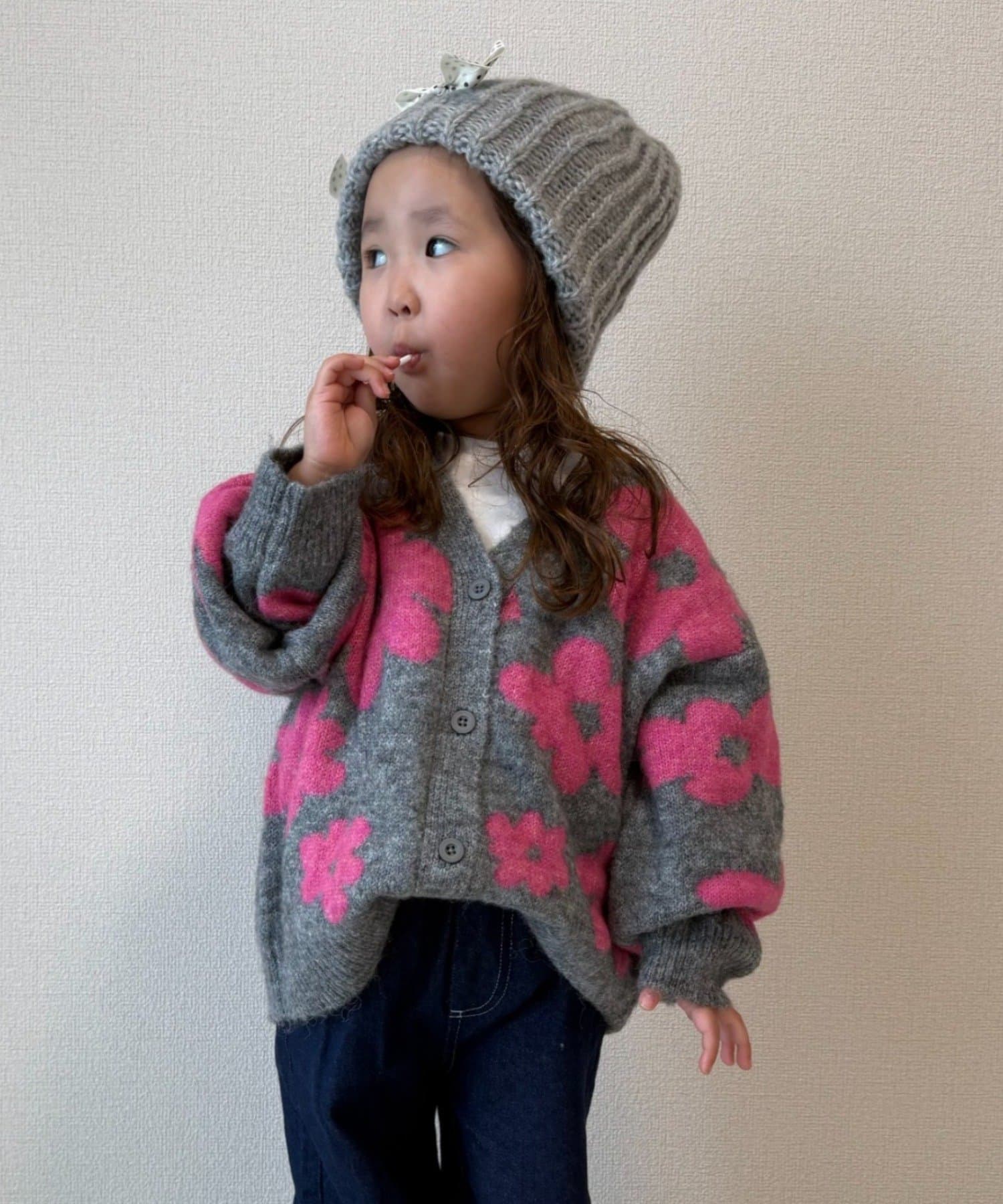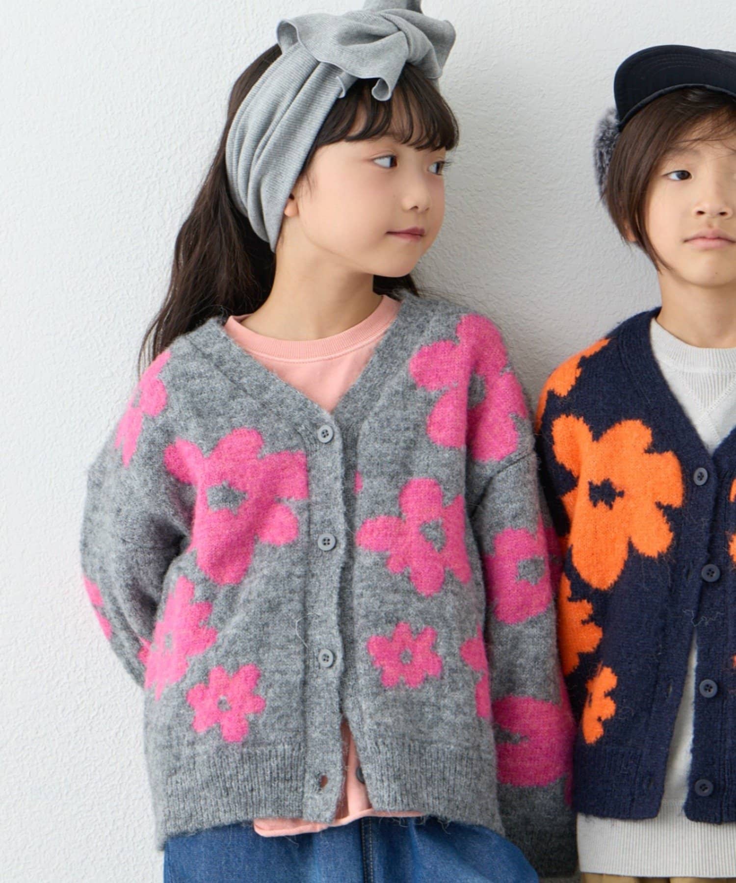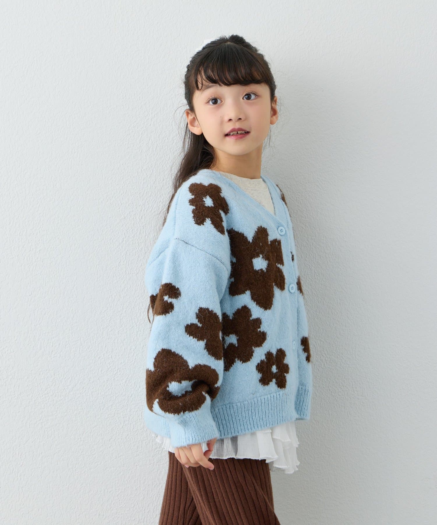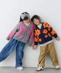 【KIDS】【ジュニアサイズあり】総柄フラワーニットカーデ《ユニセックス》