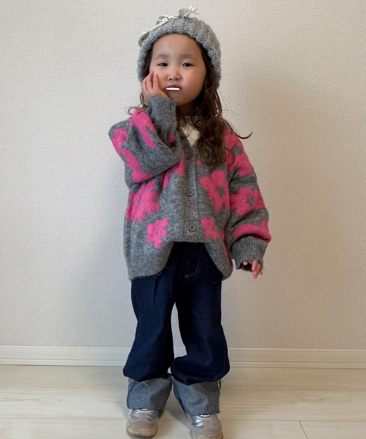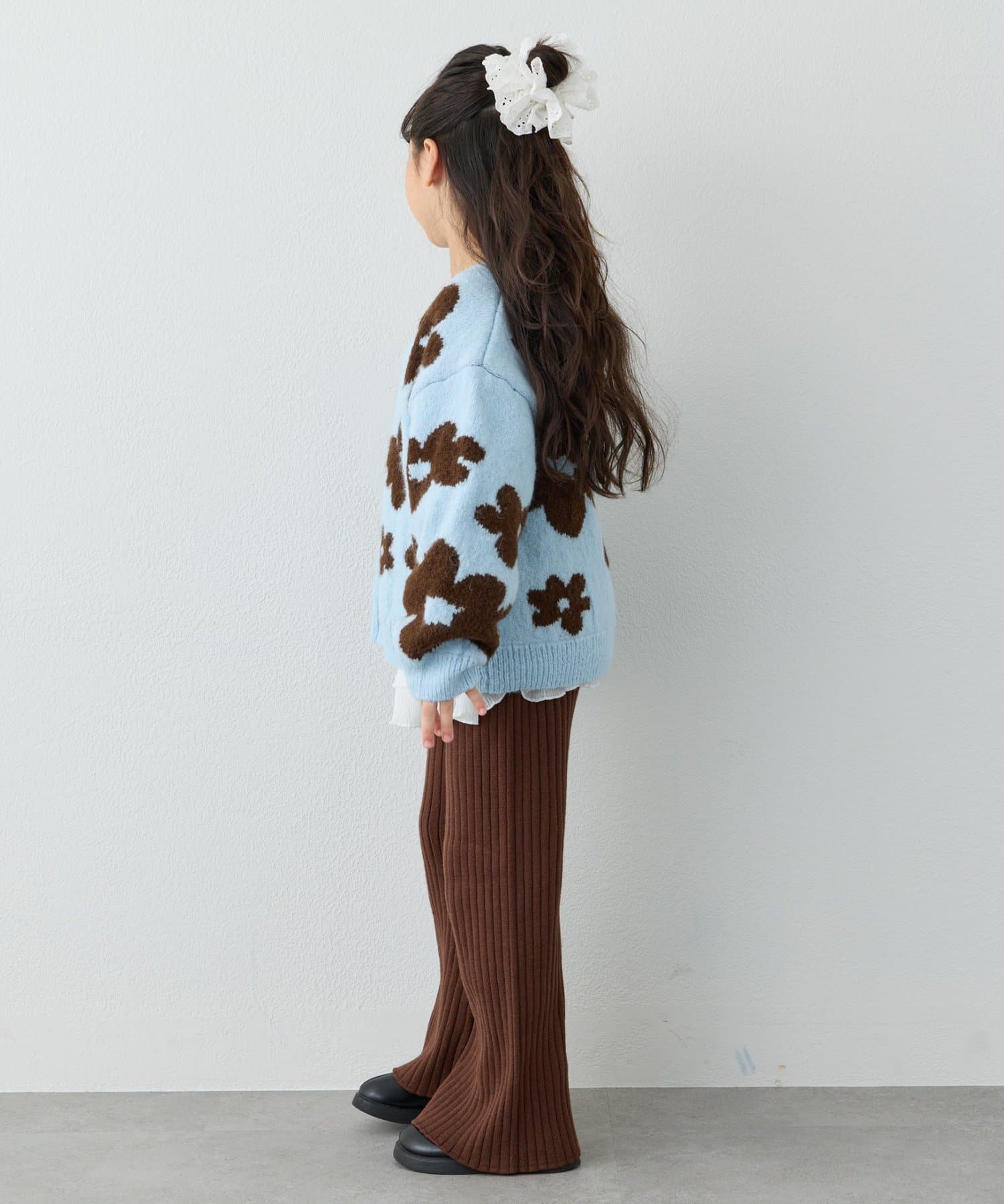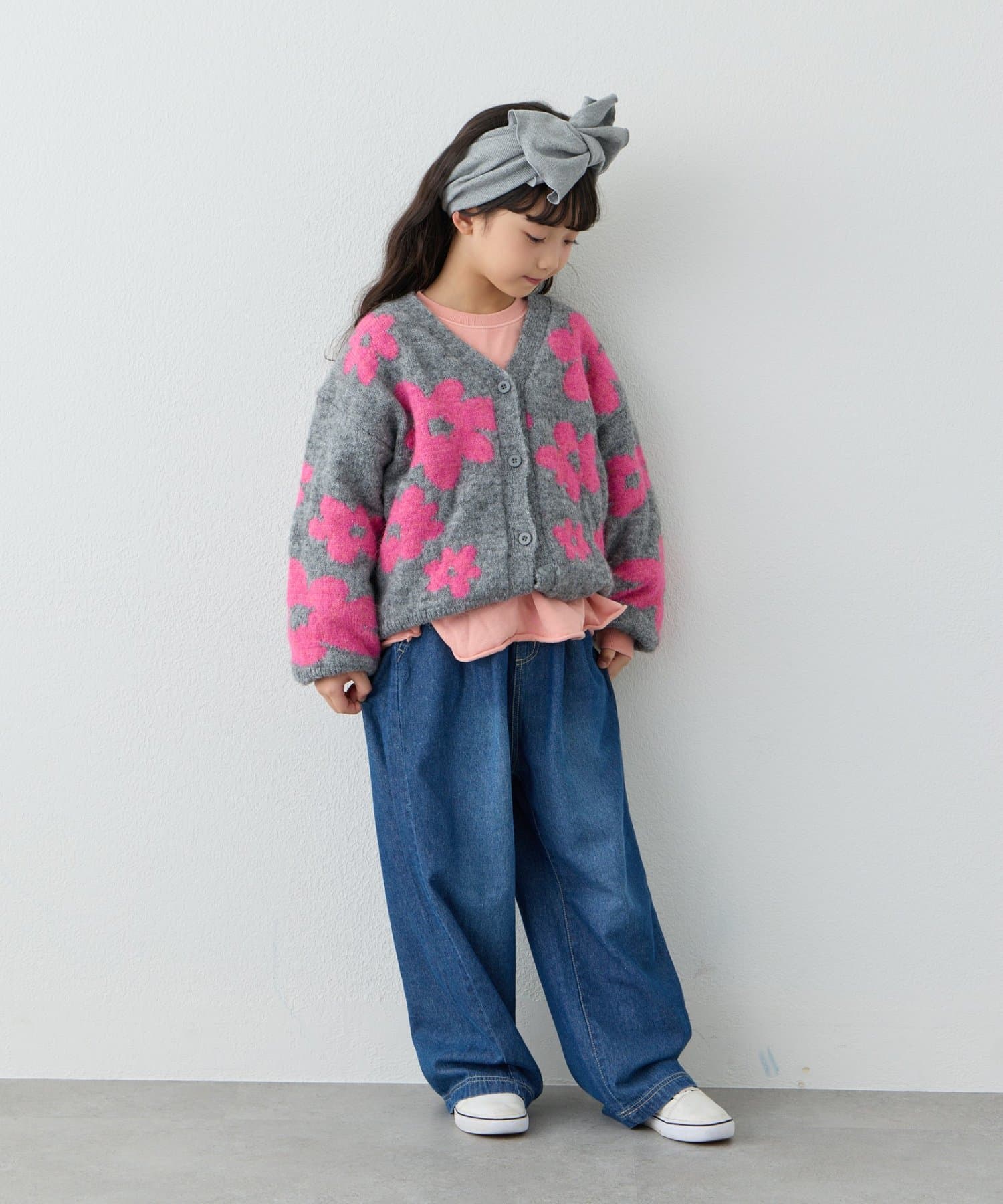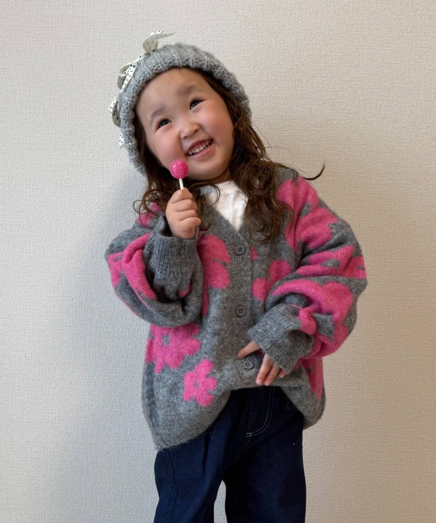 【KIDS】【ジュニアサイズあり】総柄フラワーニットカーデ《ユニセックス》