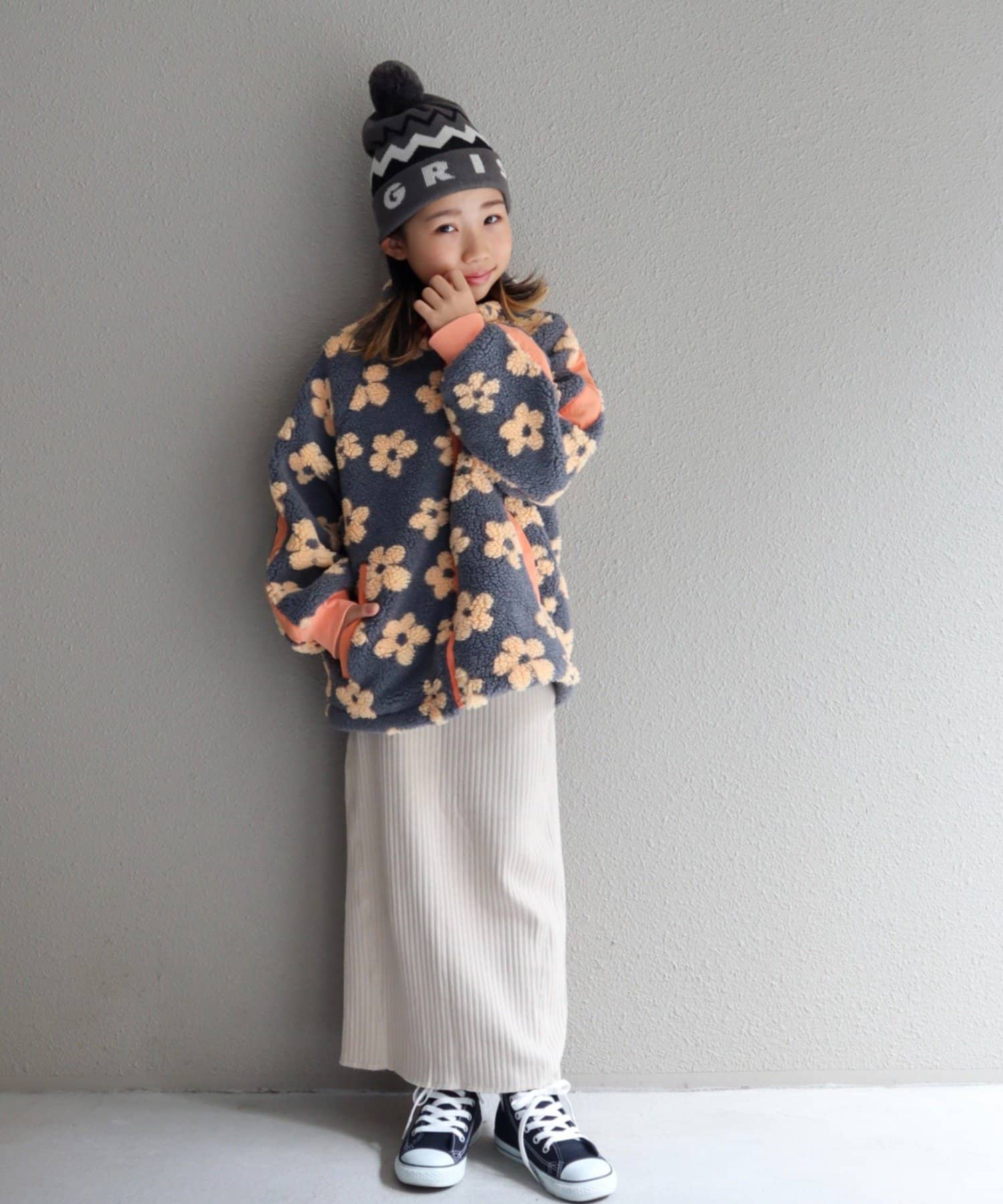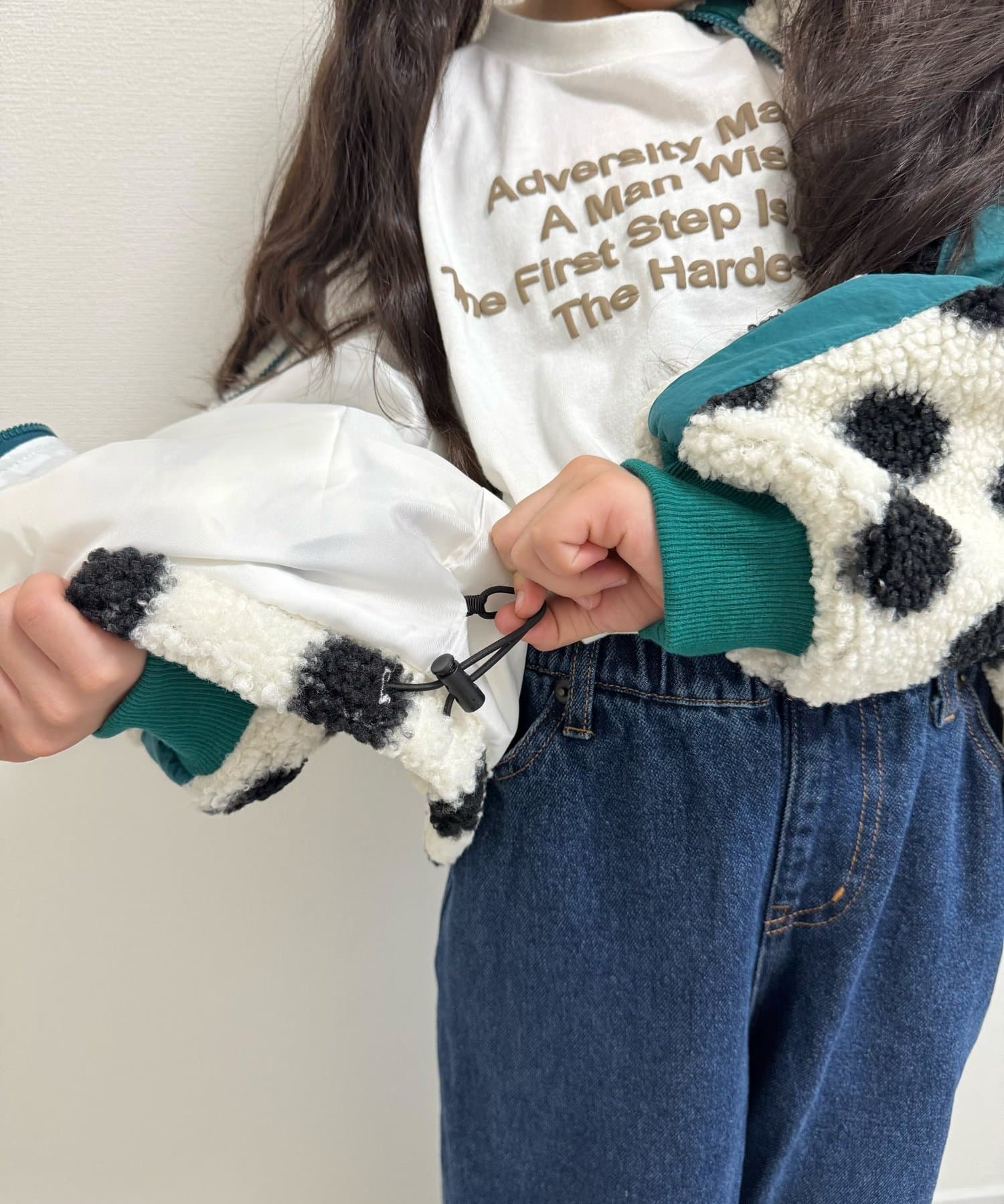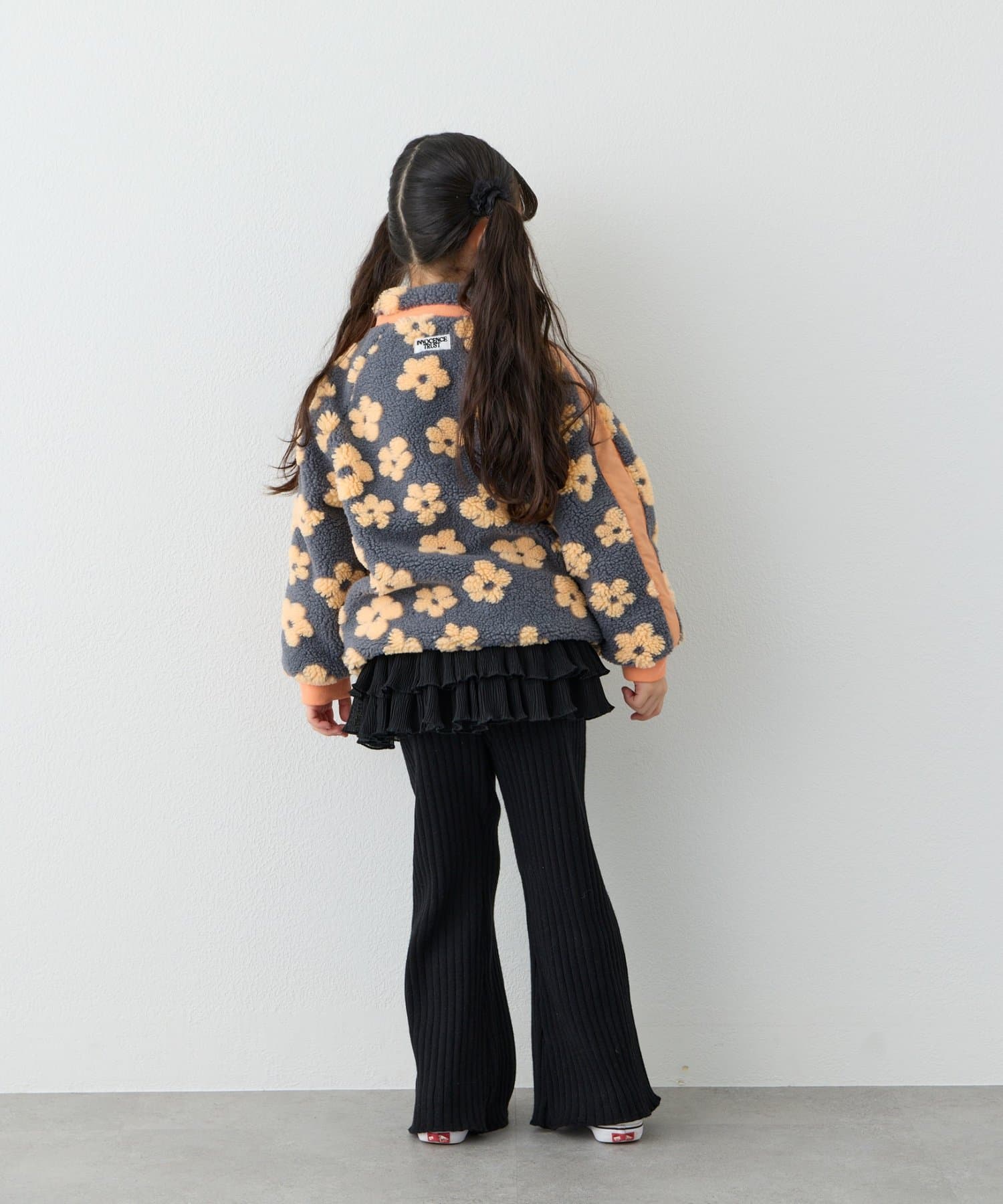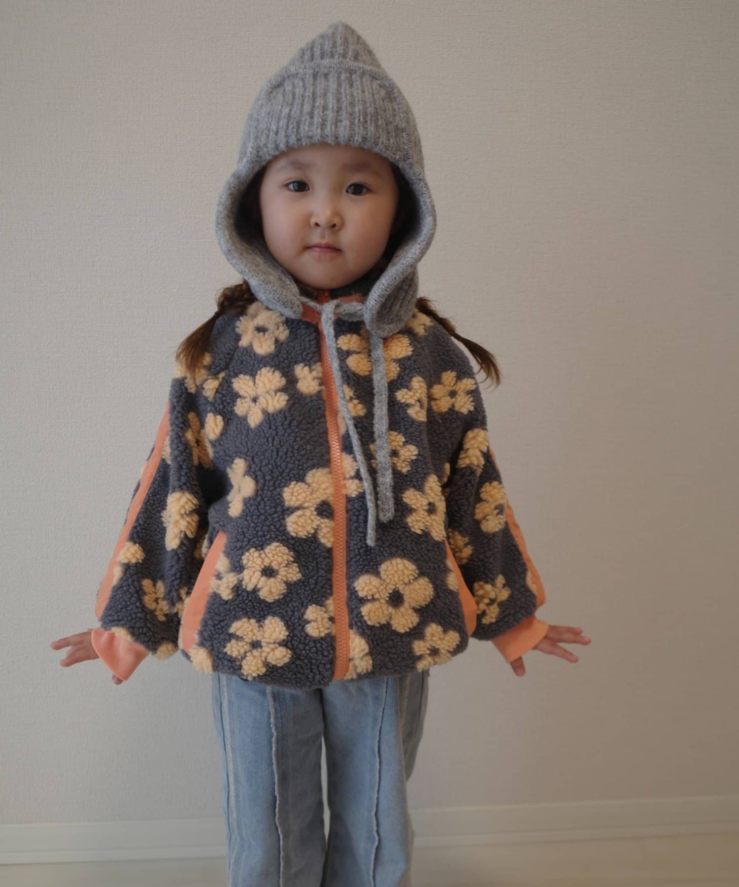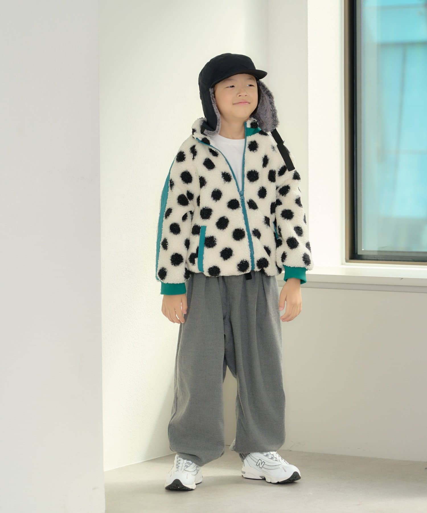 もこもこのボア素材に散りばめられたアソート柄が、元気いっぱいのキッズにぴったり!