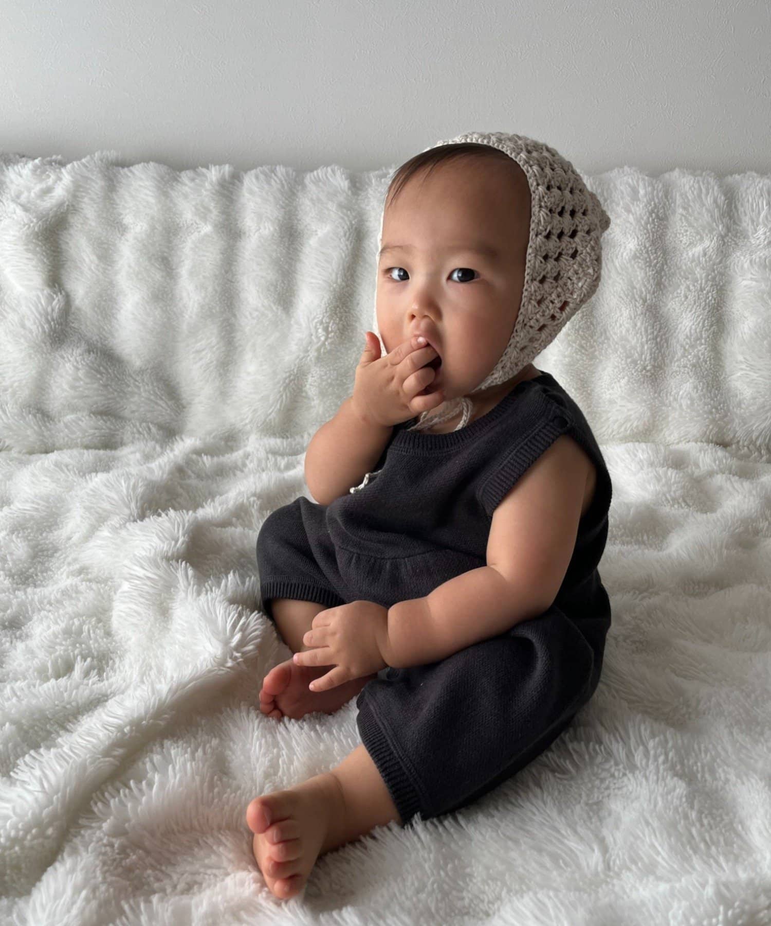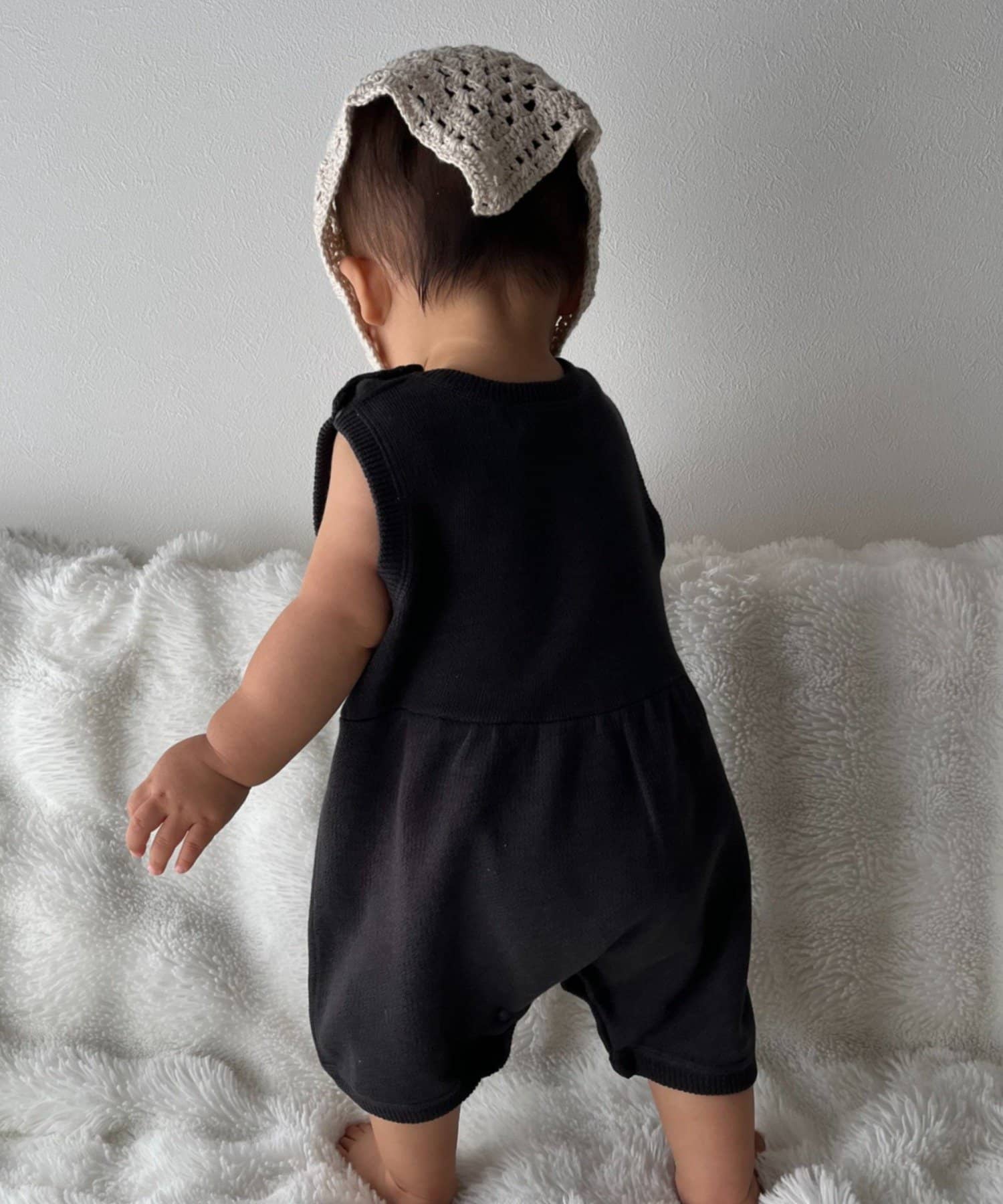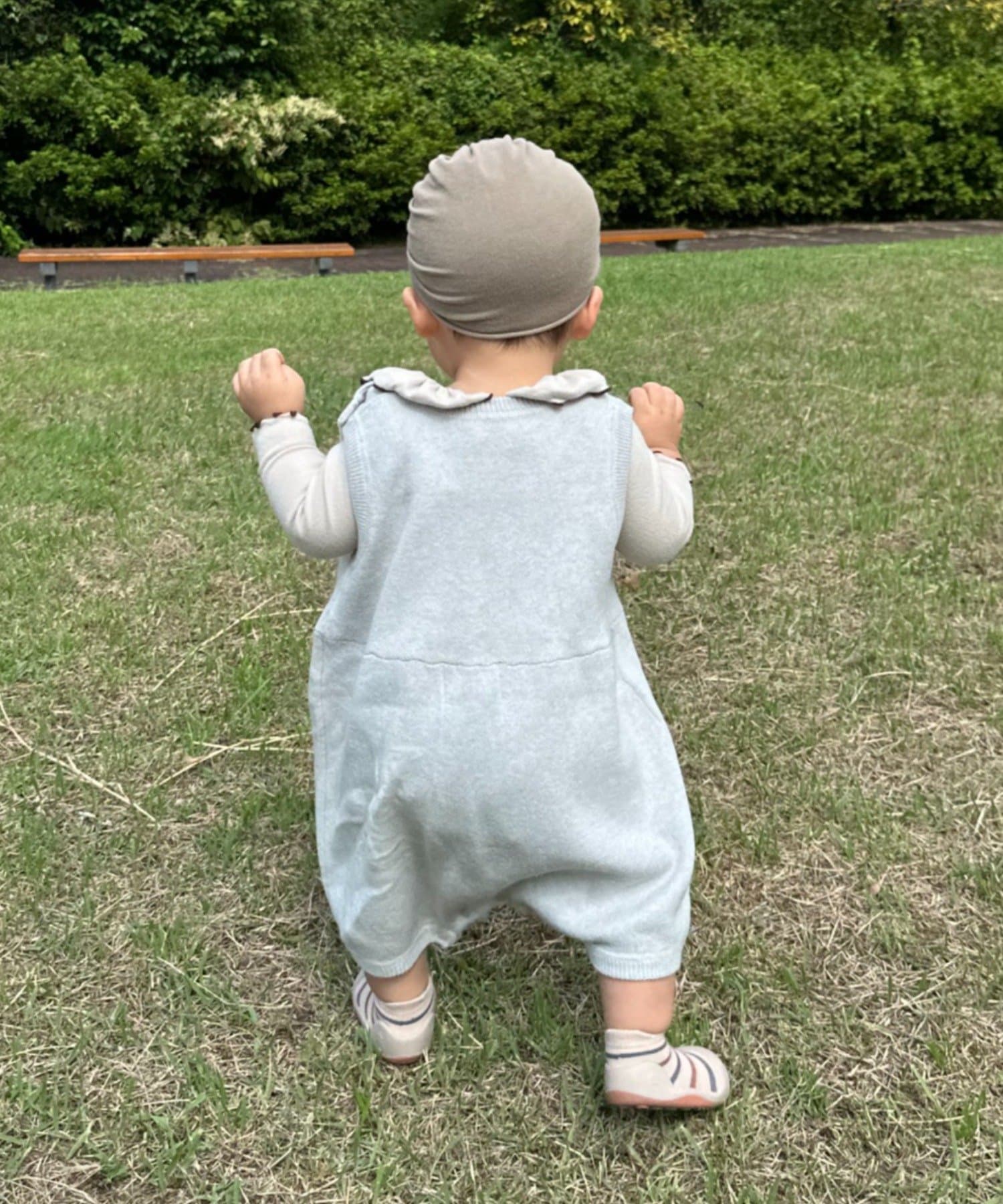 【綿100%で洗える】【BABY】スウェットライクニットロンパース
