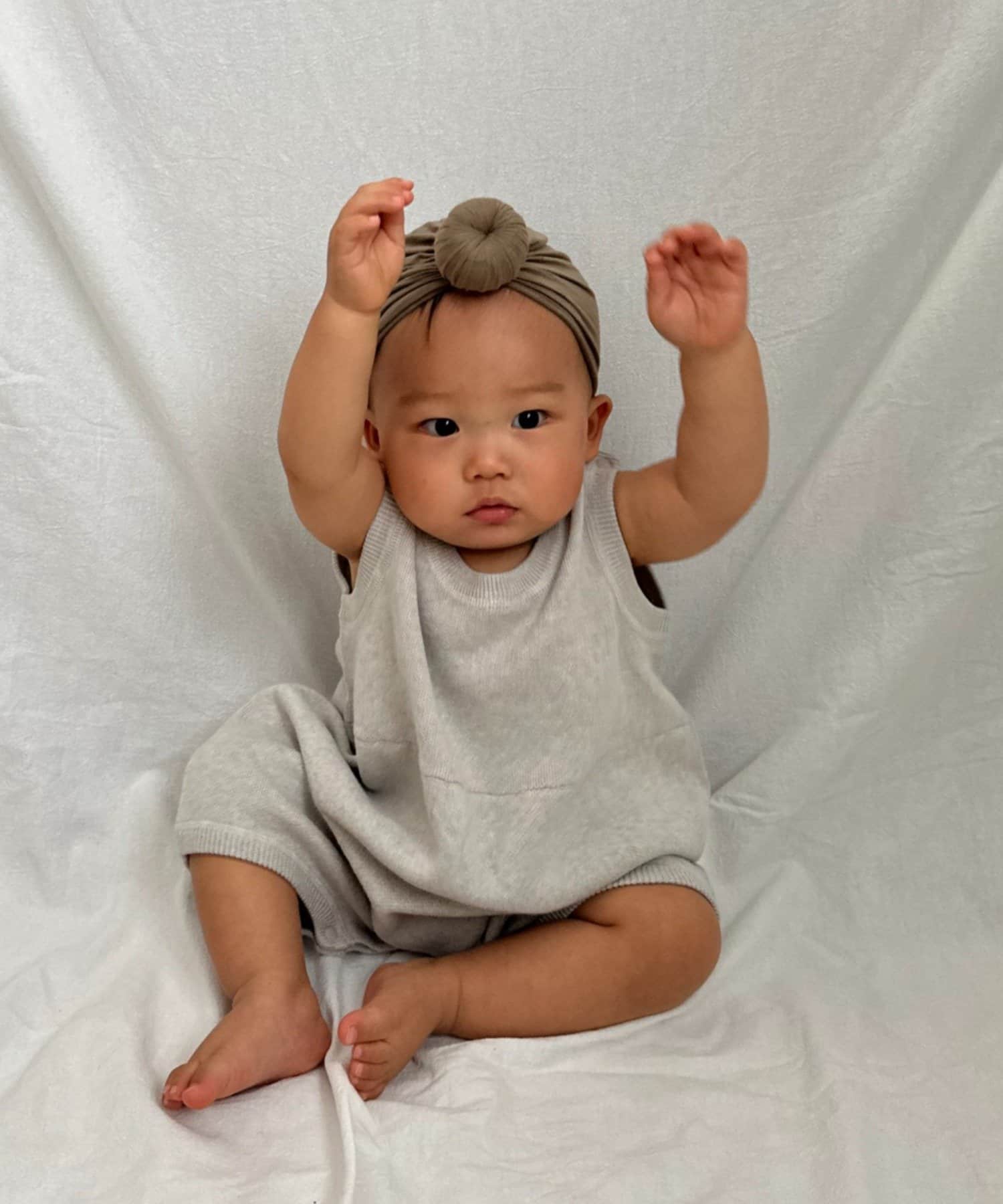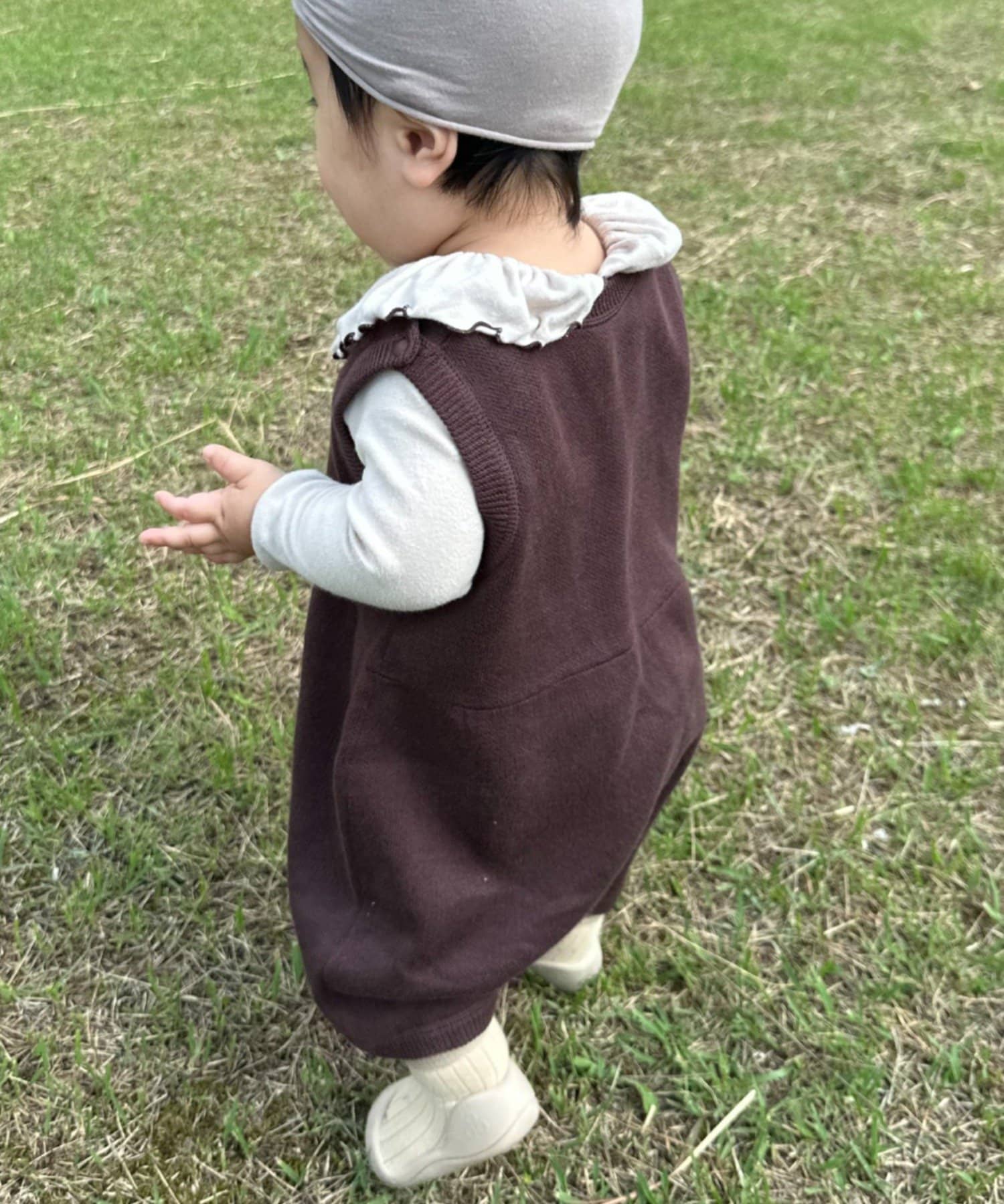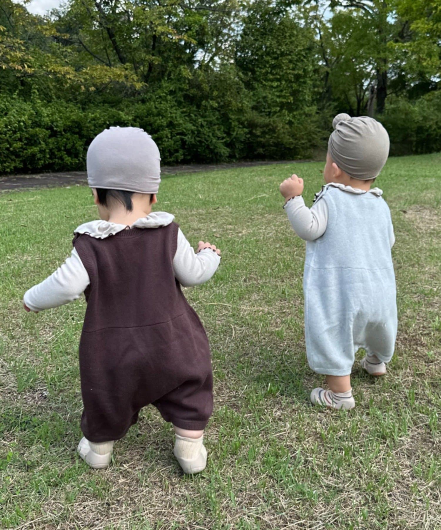 【綿100%で洗える】【BABY】スウェットライクニットロンパース