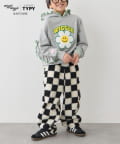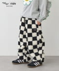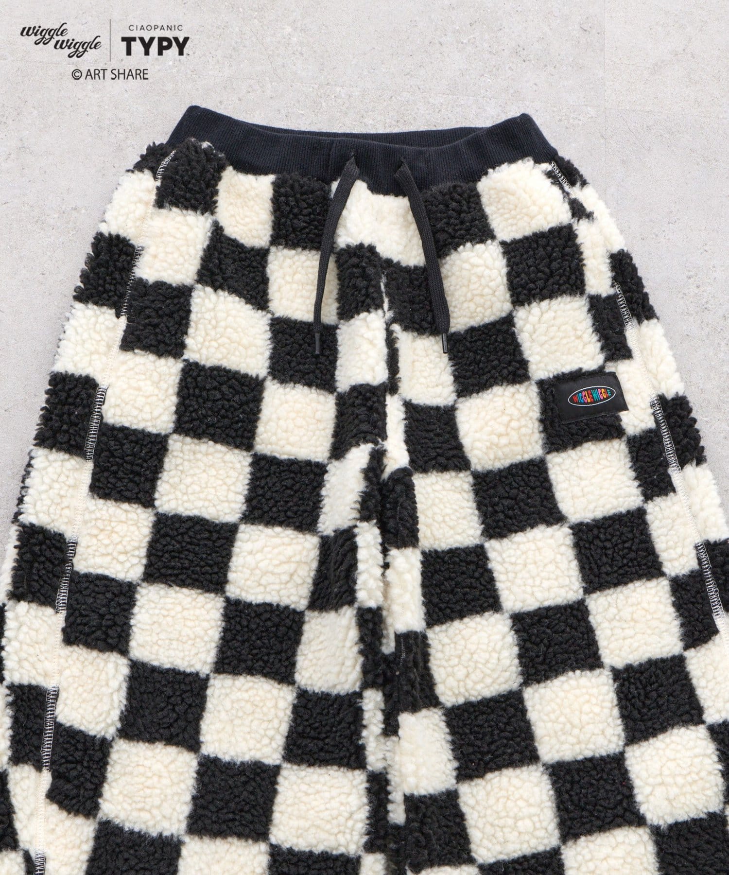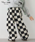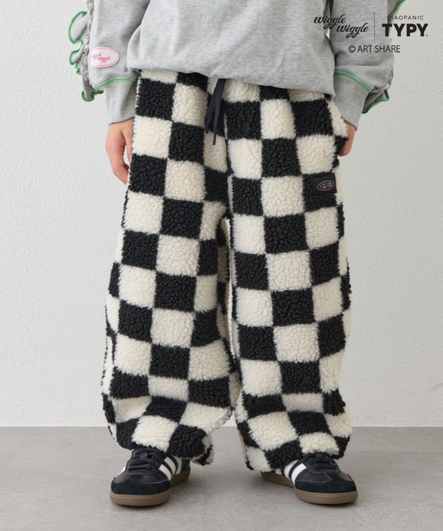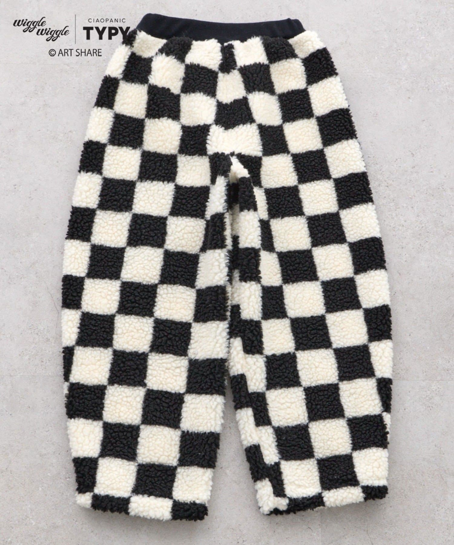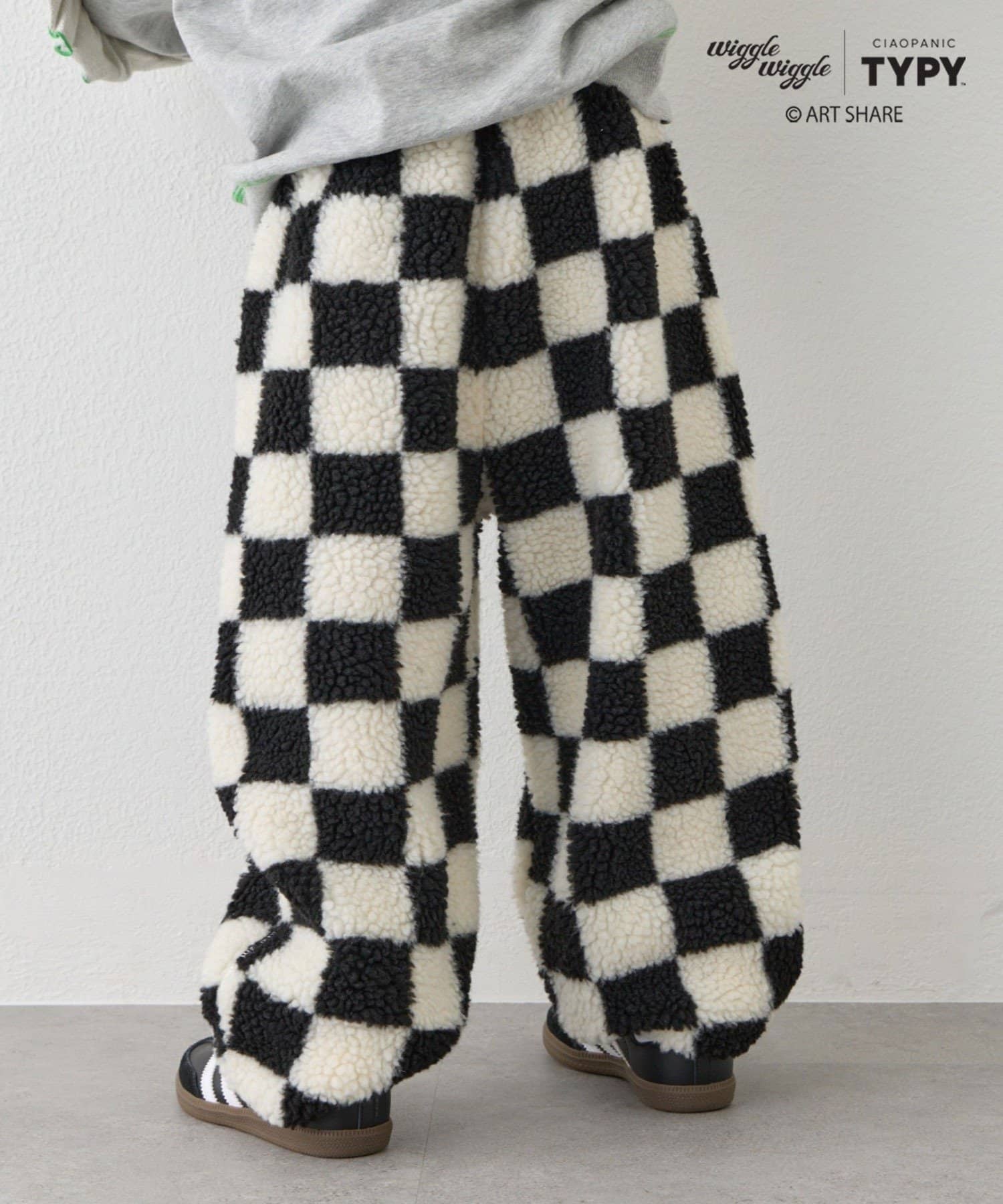 モノトーンの市松模様が目を引く、ふわふわのキッズパンツ。