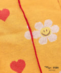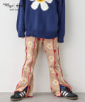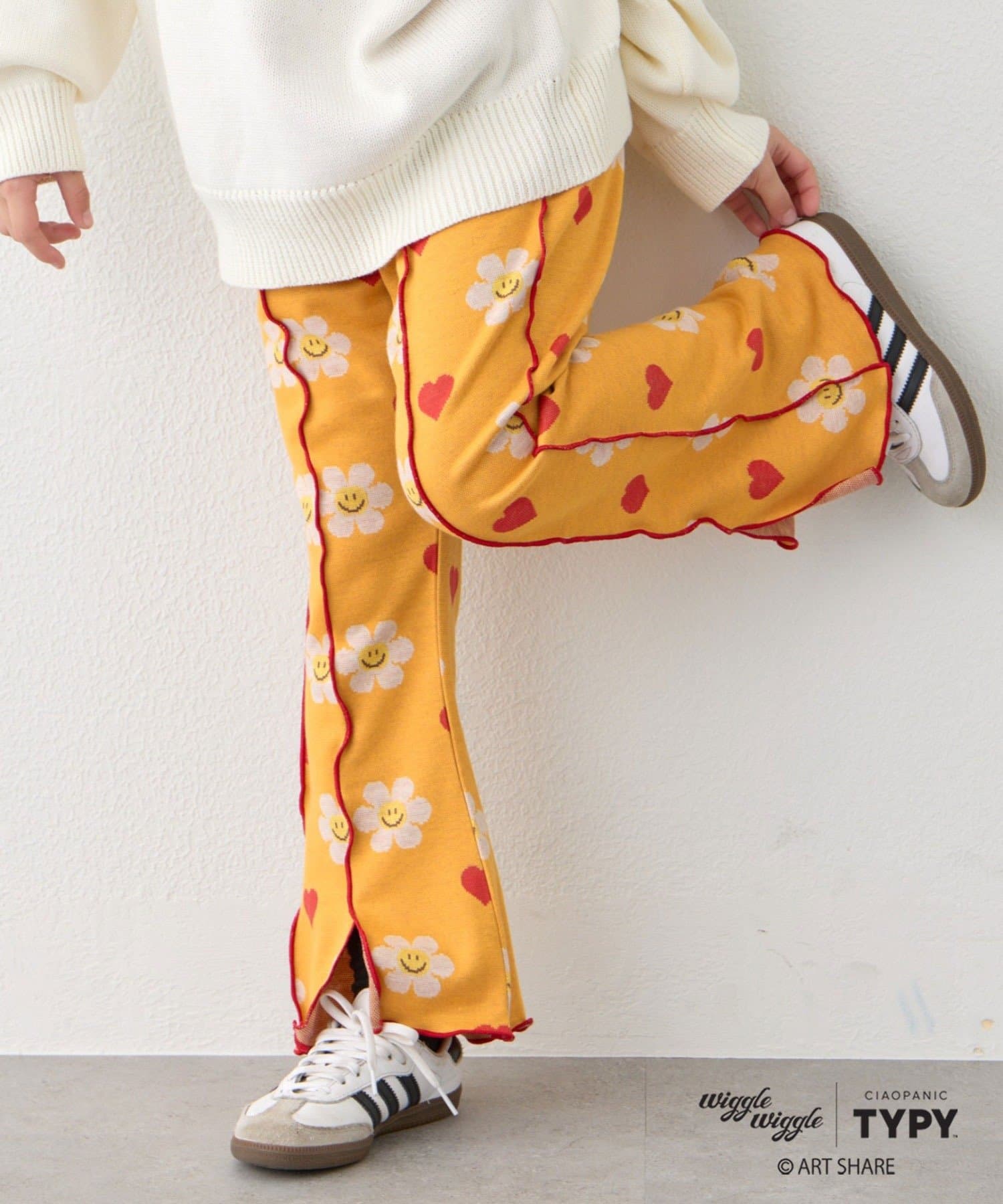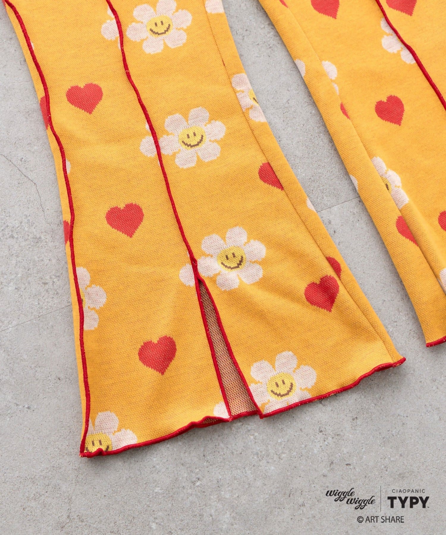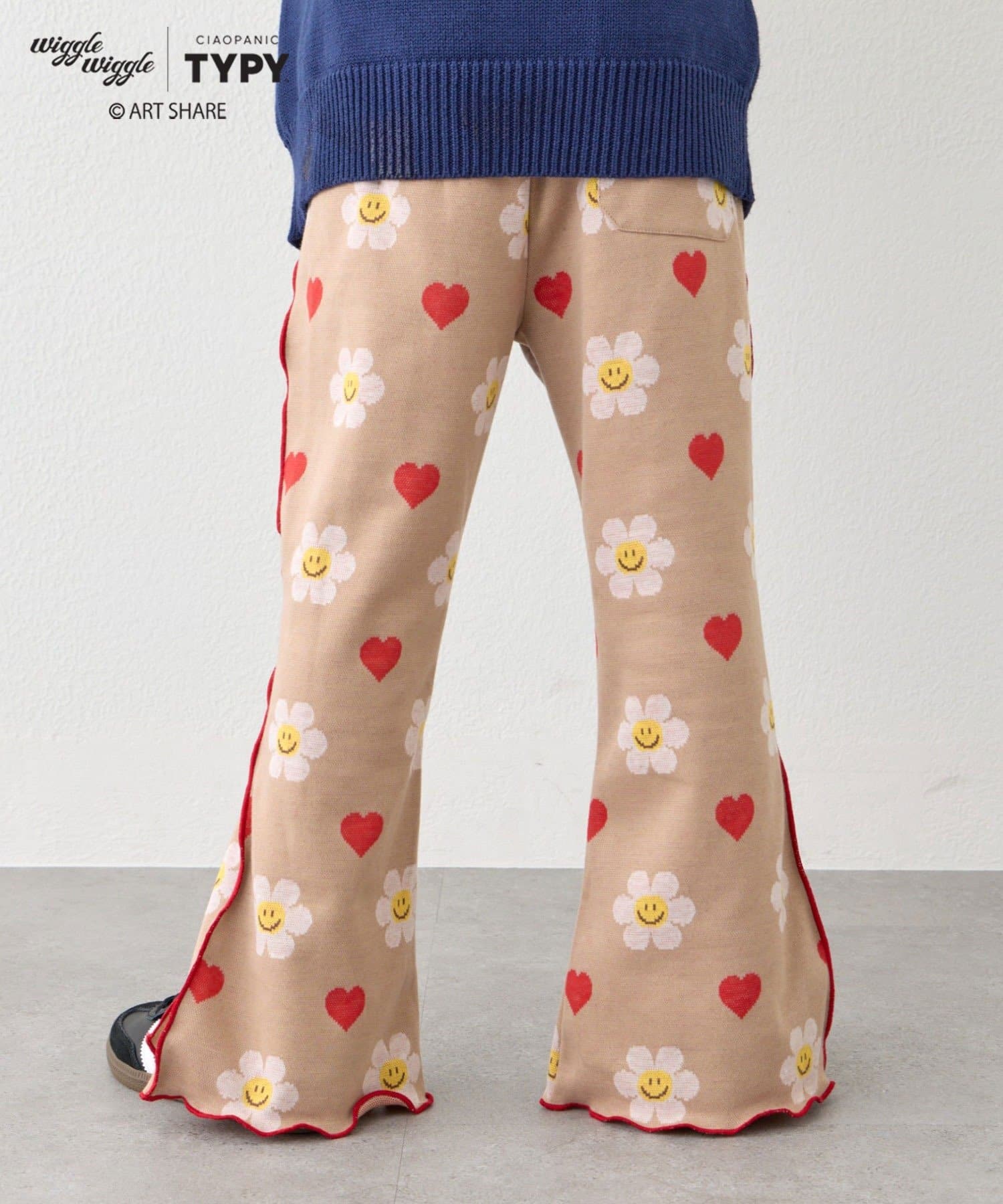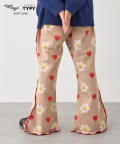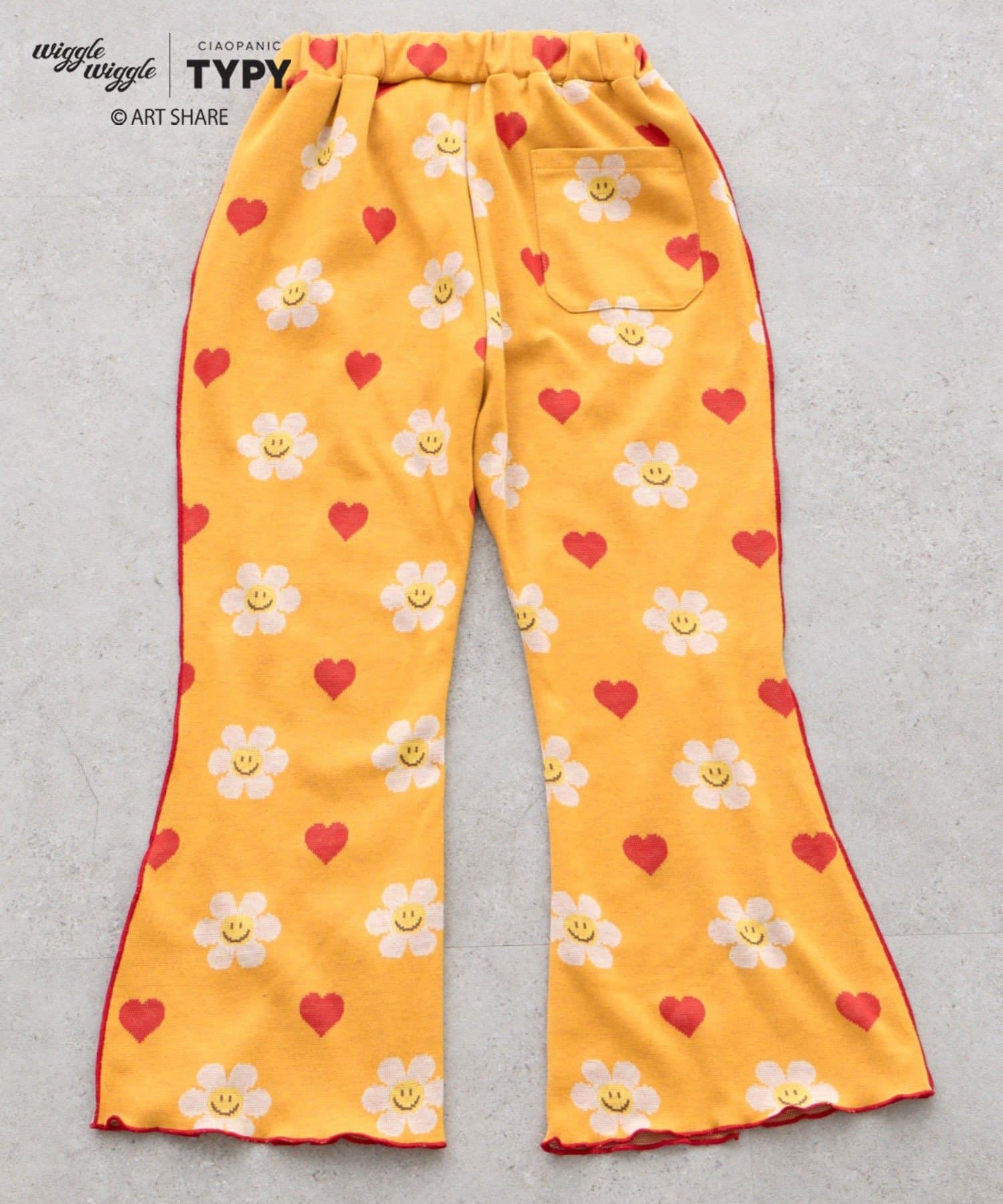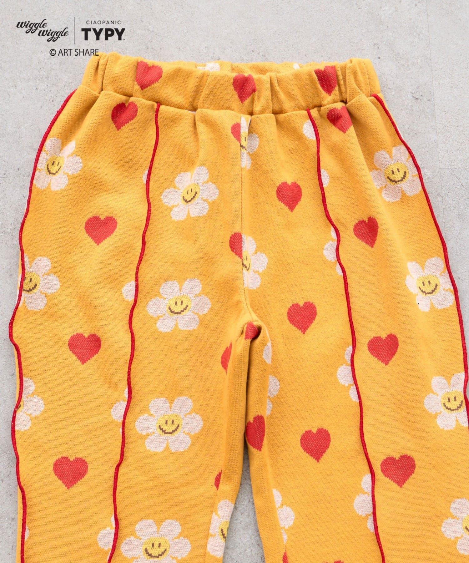 レトロ可愛い花柄とハート柄が散りばめられた、とびきりキュートなキッズパンツ。