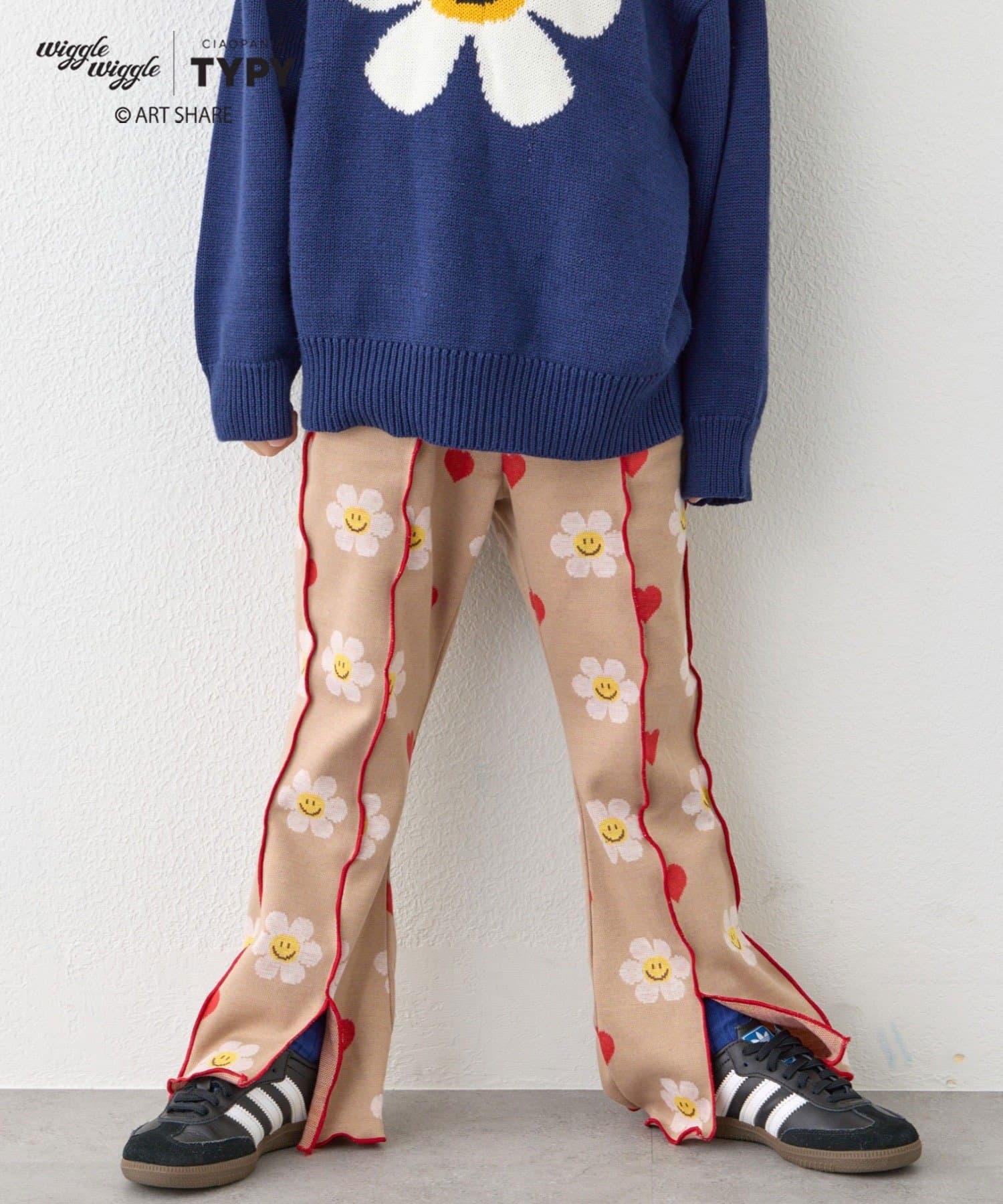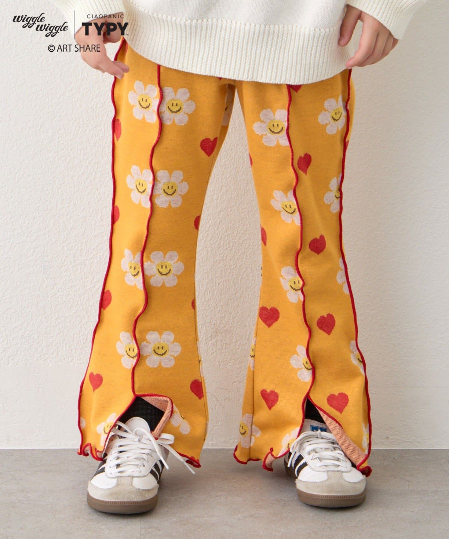 【KIDS】【wigglewiggle】ユニセックス配色メロウジャガード微フレアパンツ
