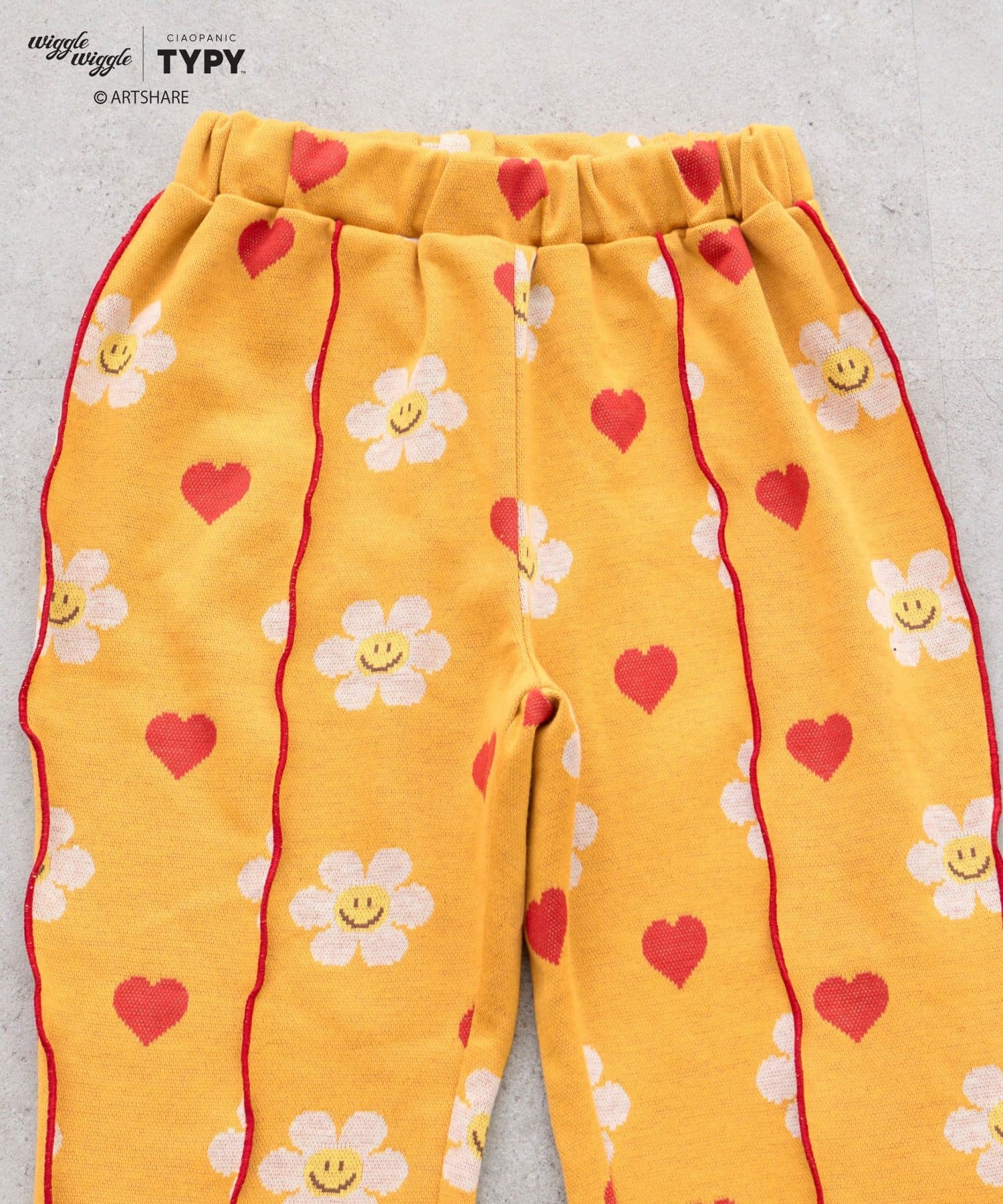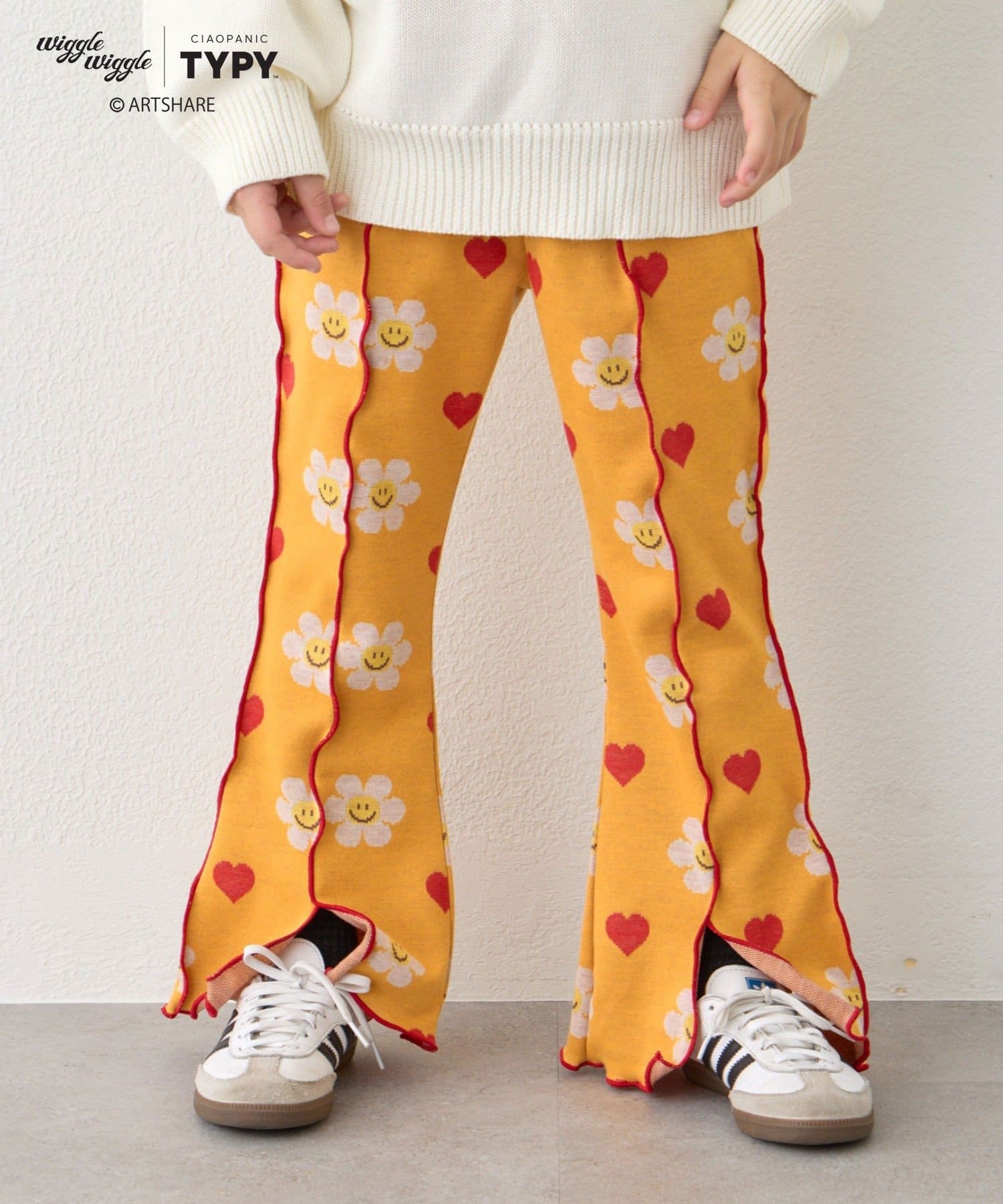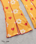 レトロ可愛い花柄とハート柄が散りばめられた、とびきりキュートなキッズパンツ。