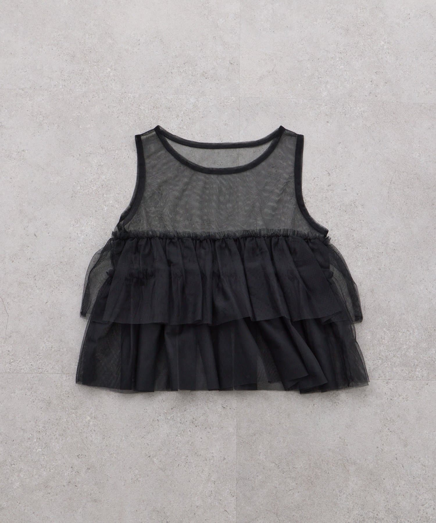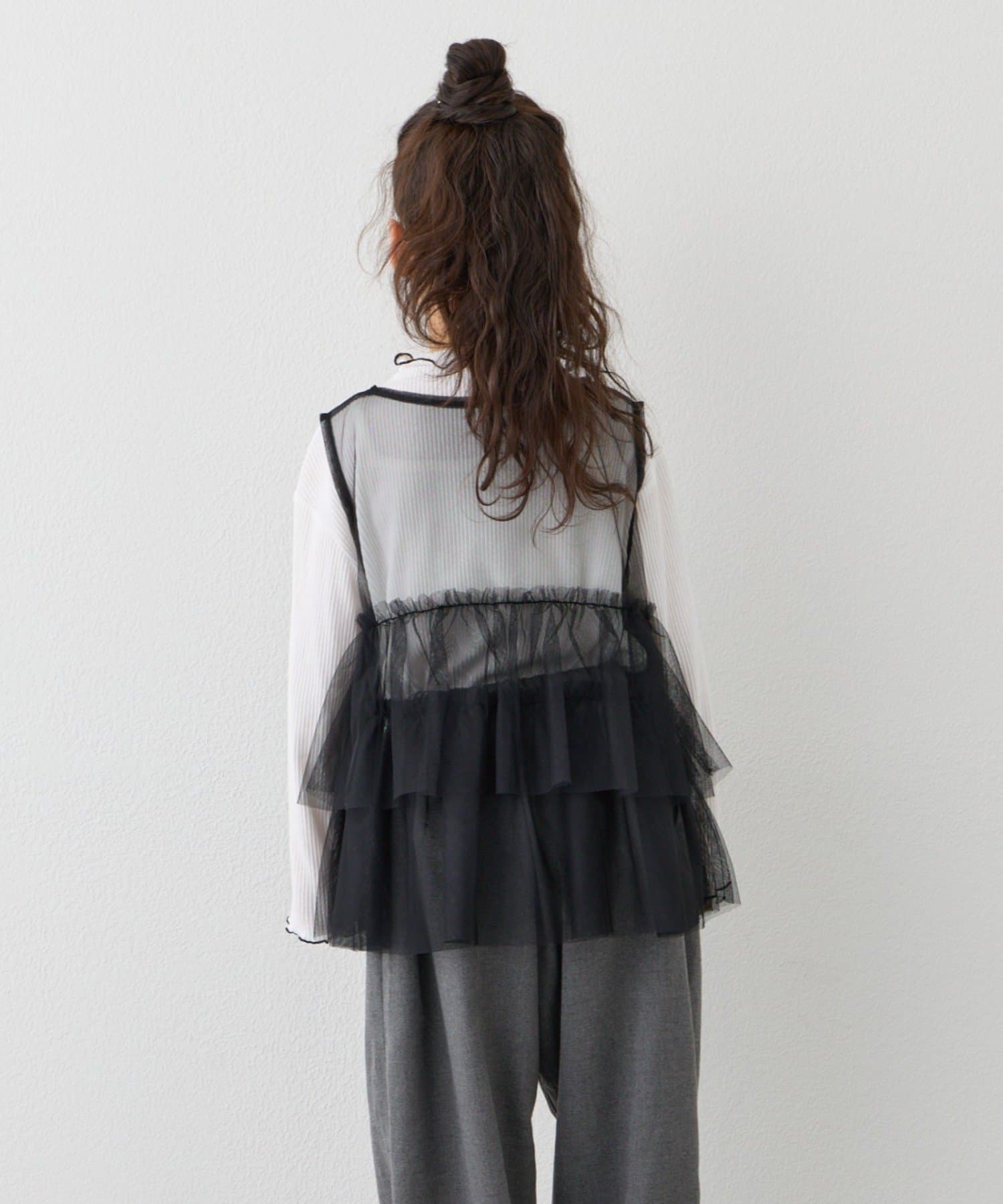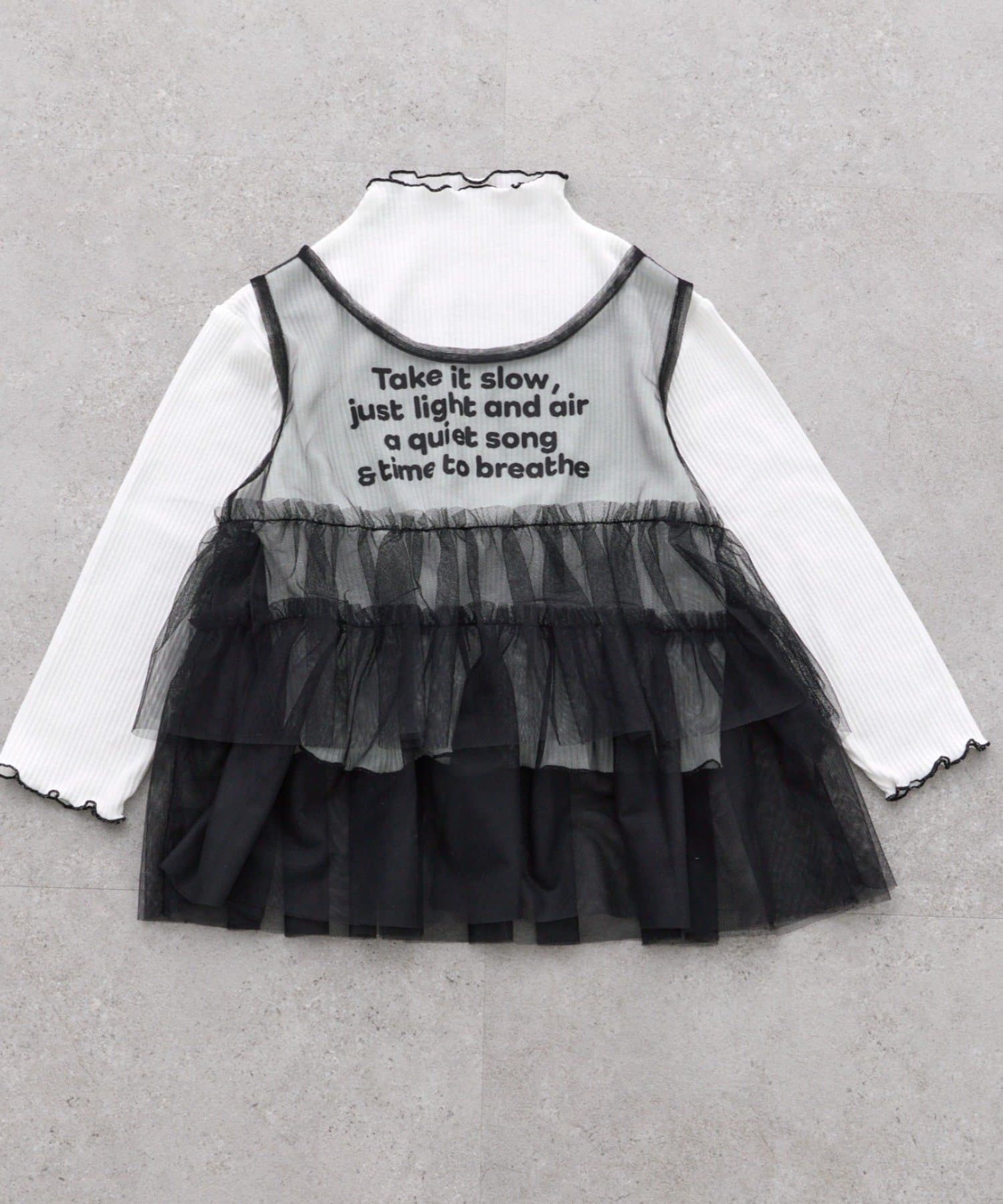 【KIDS】ティアードチュール付きリブトップス≪ジュニアサイズあり≫