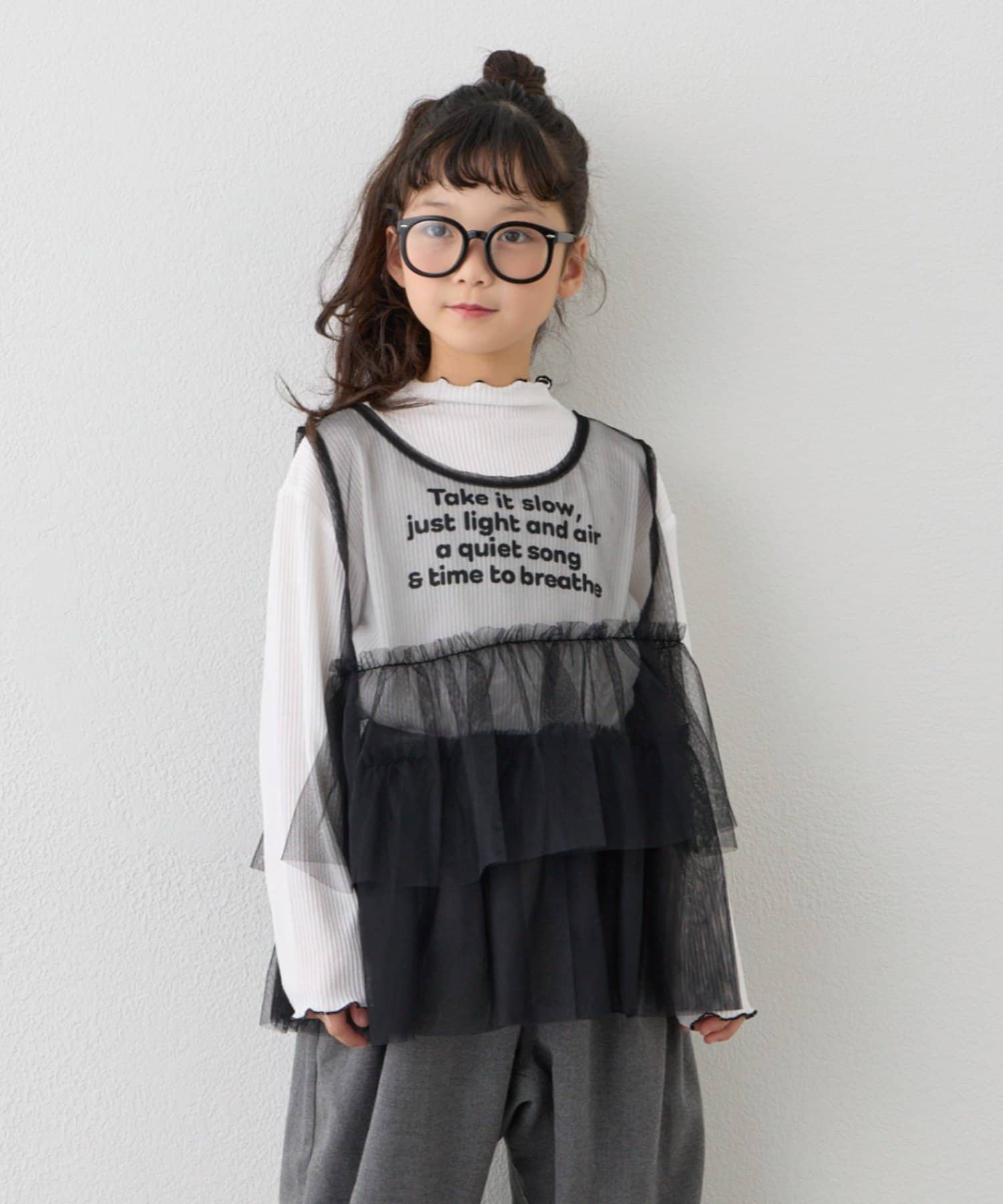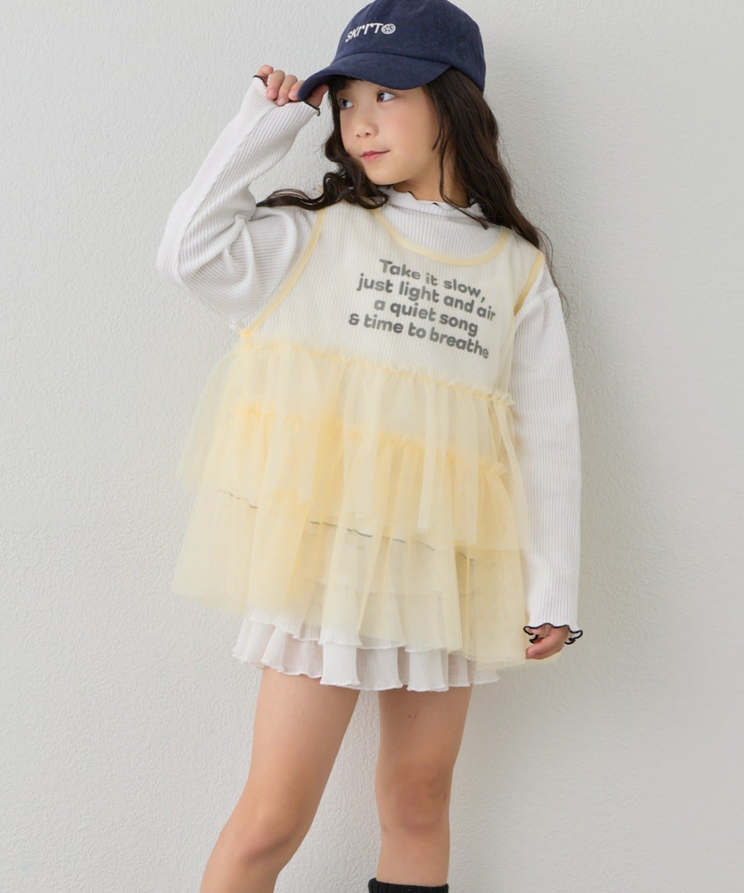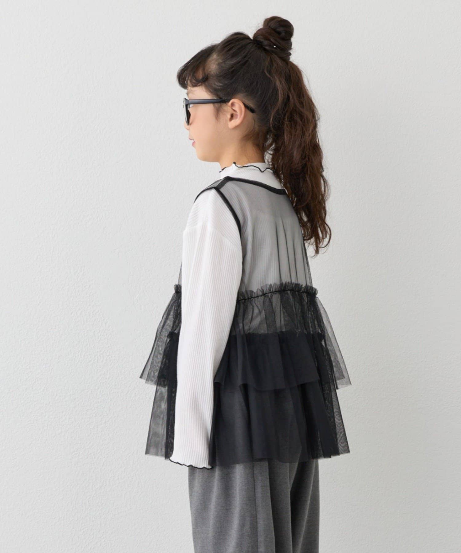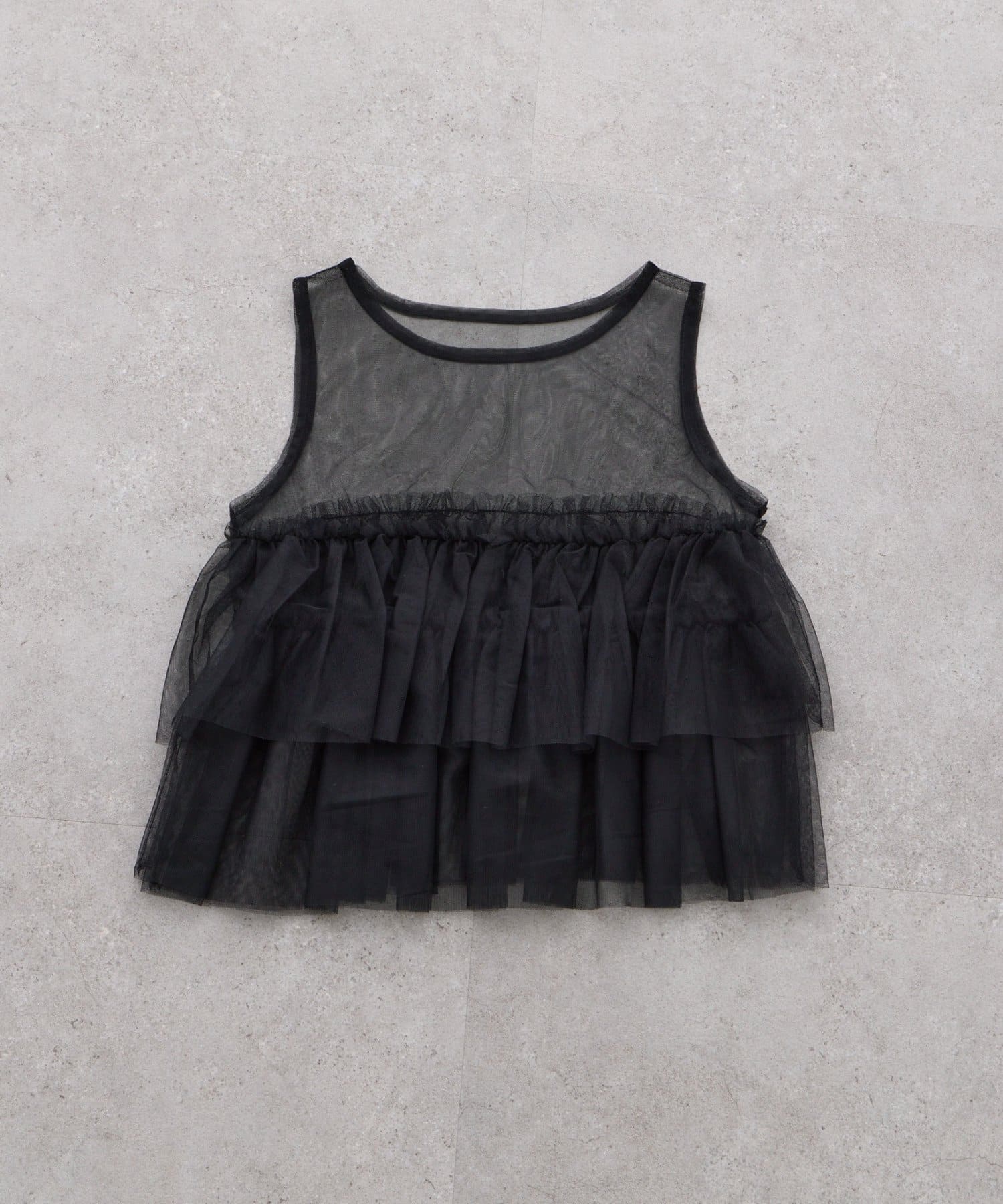 【KIDS】ティアードチュール付きリブトップス≪ジュニアサイズあり≫