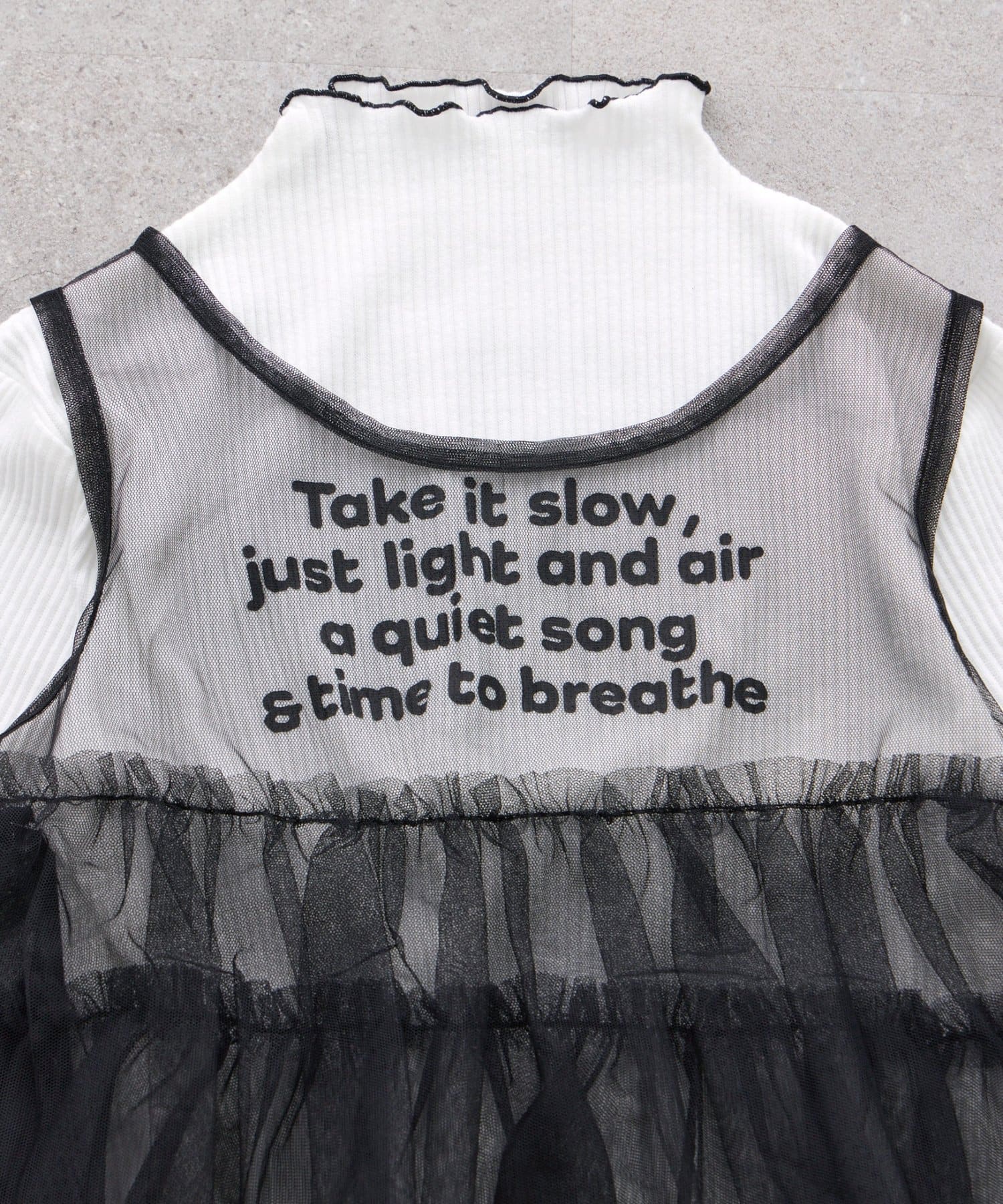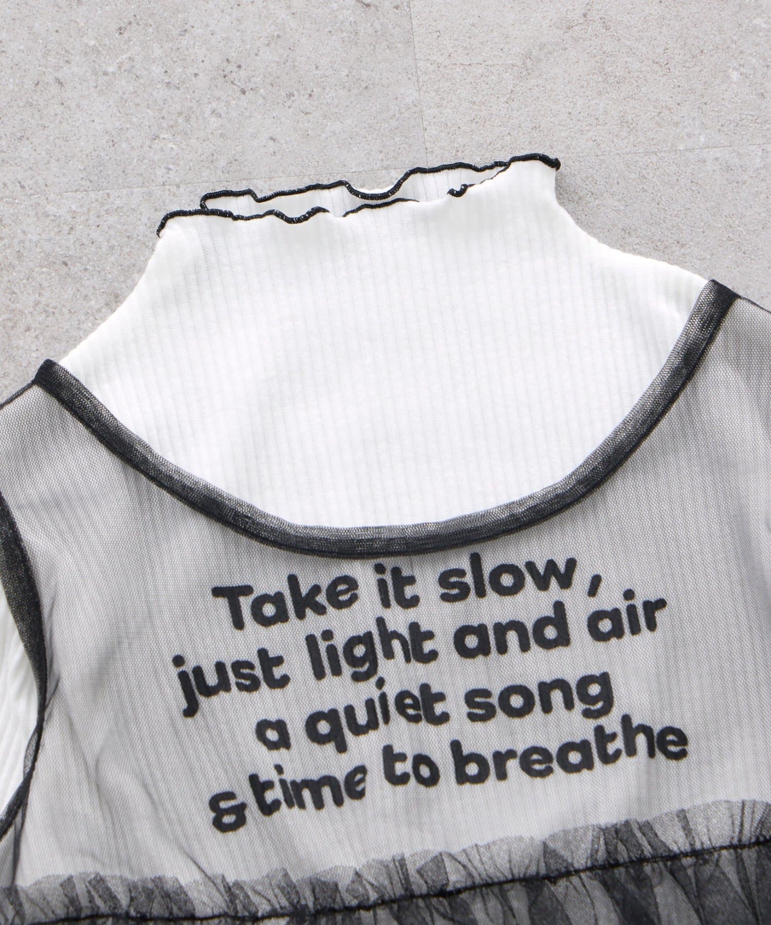 チュール部分には、さりげないメッセージロゴがプリントされており、おしゃれなアクセントに。