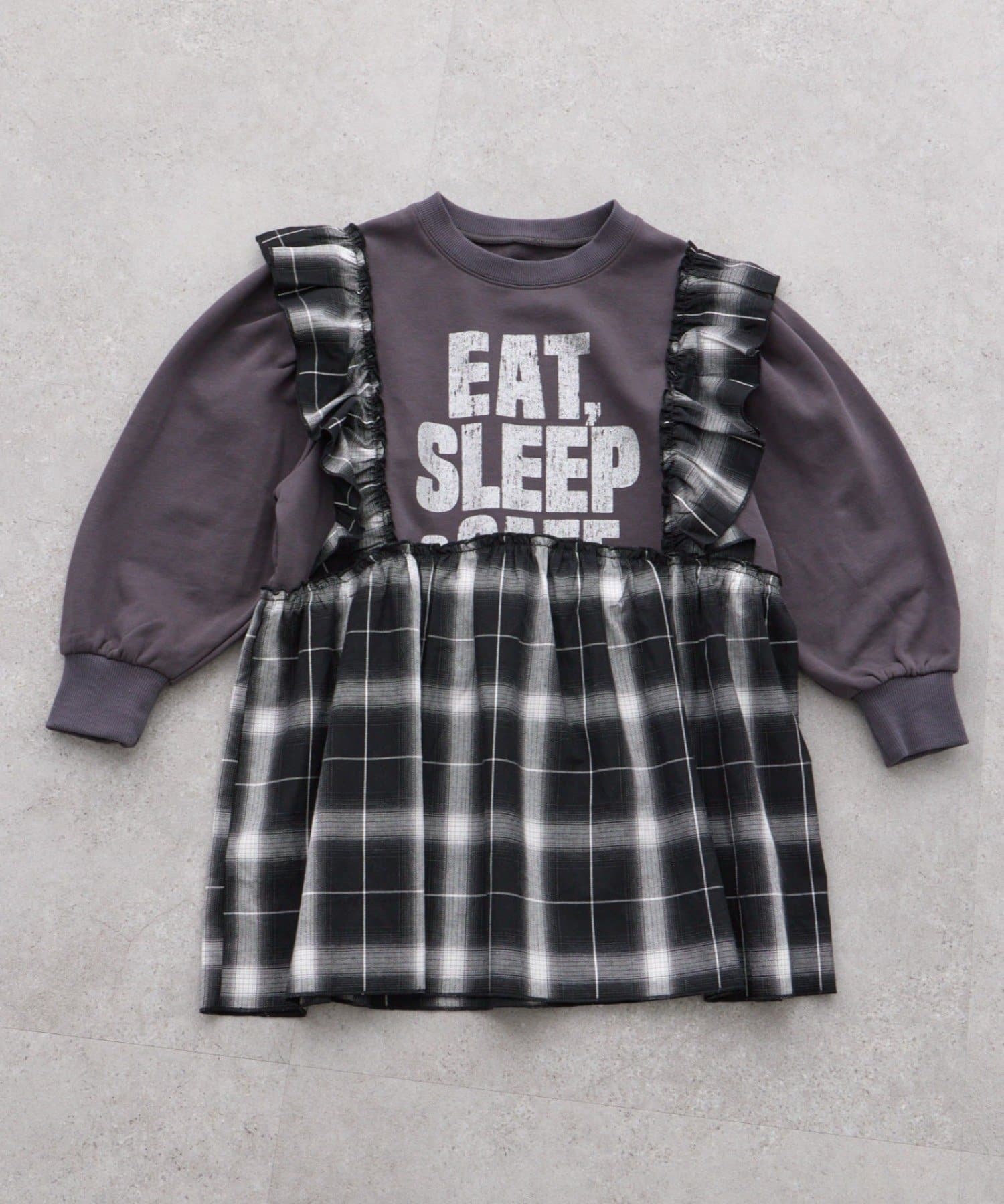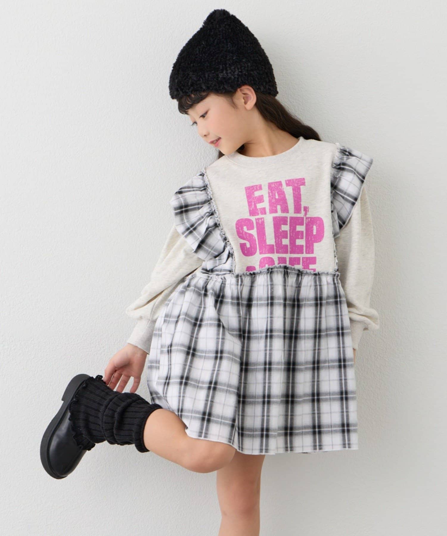 【KIDS】【WEB限定】裏毛切替ミニチュニックワンピ≪ジュニアサイズあり≫