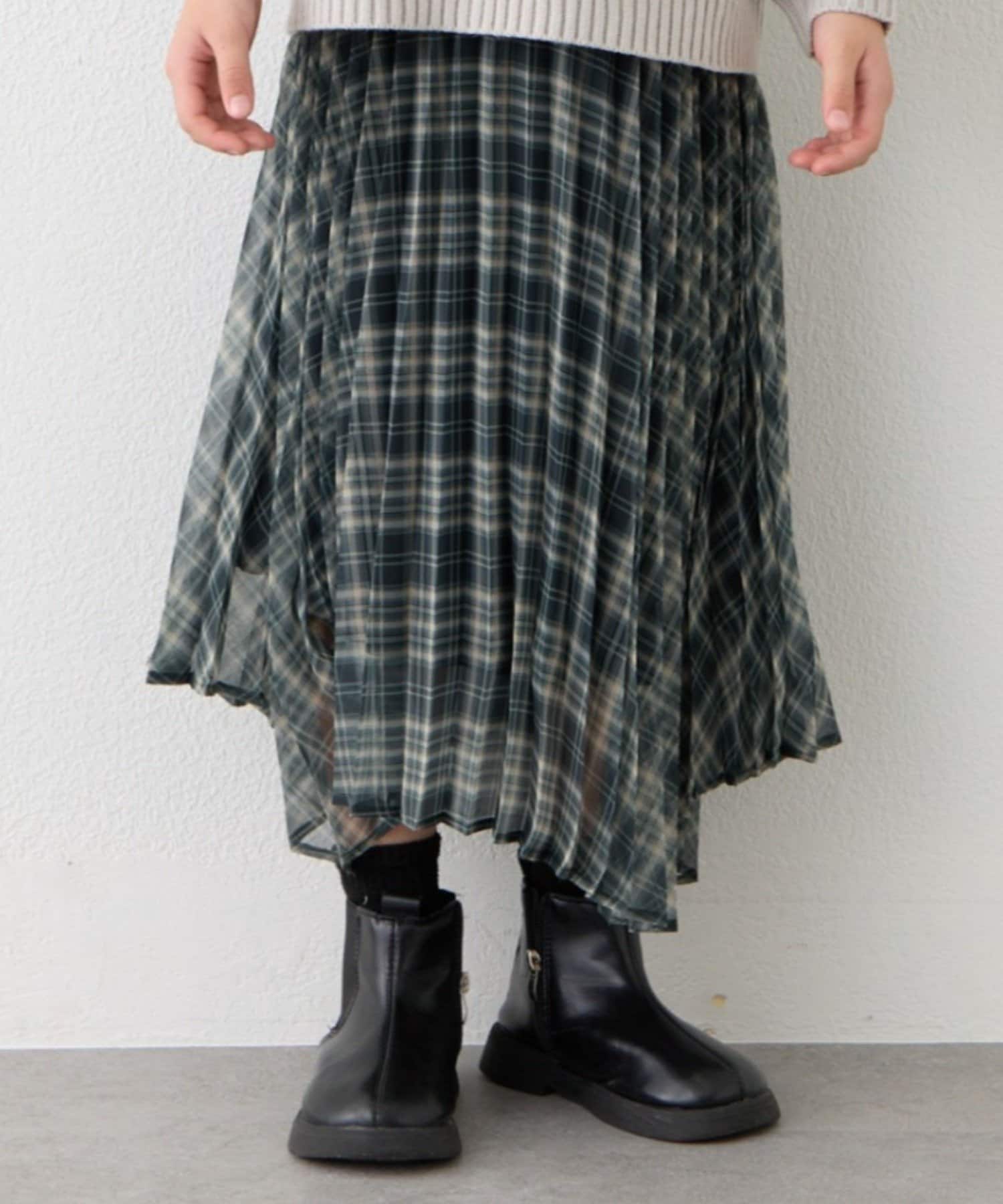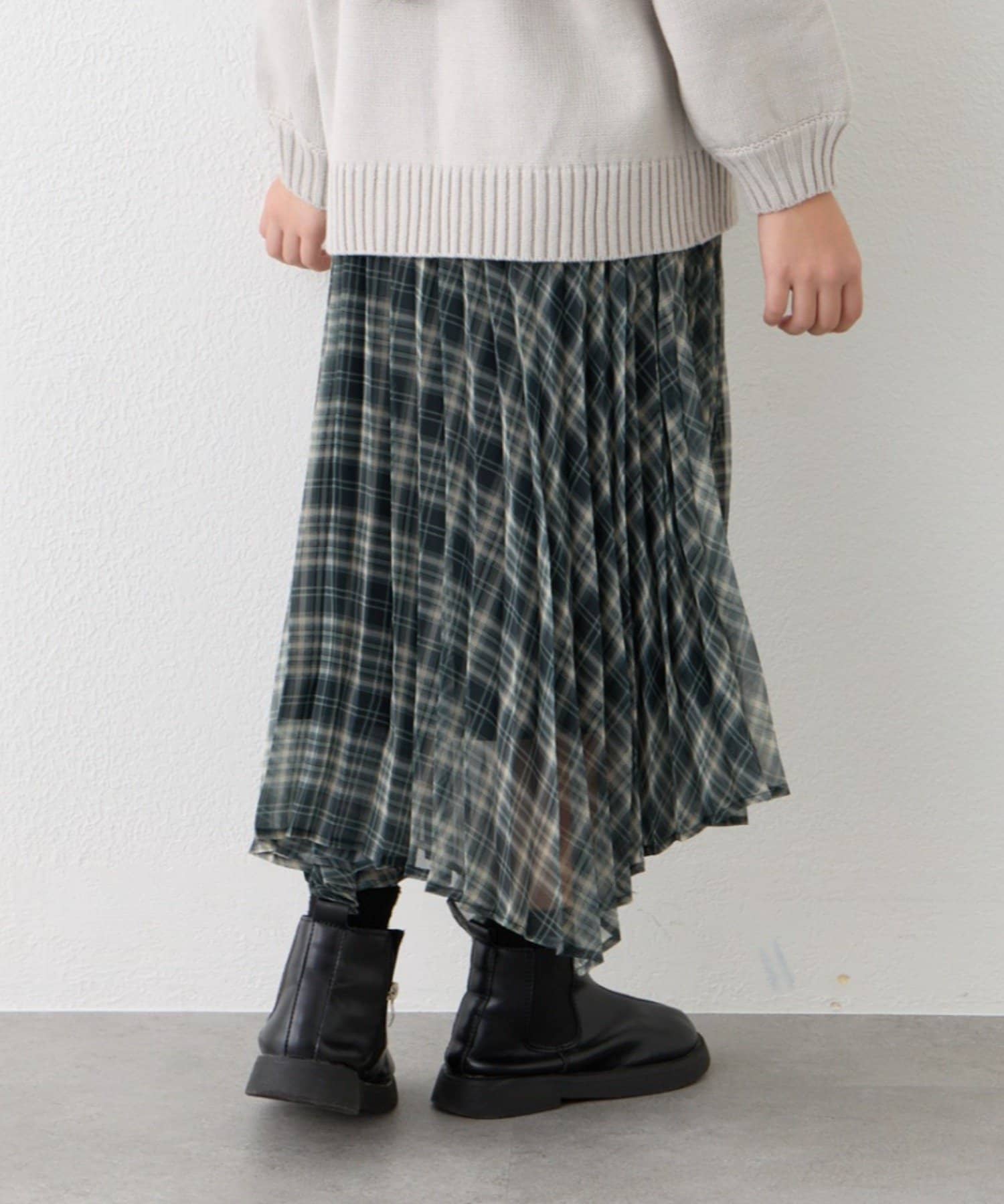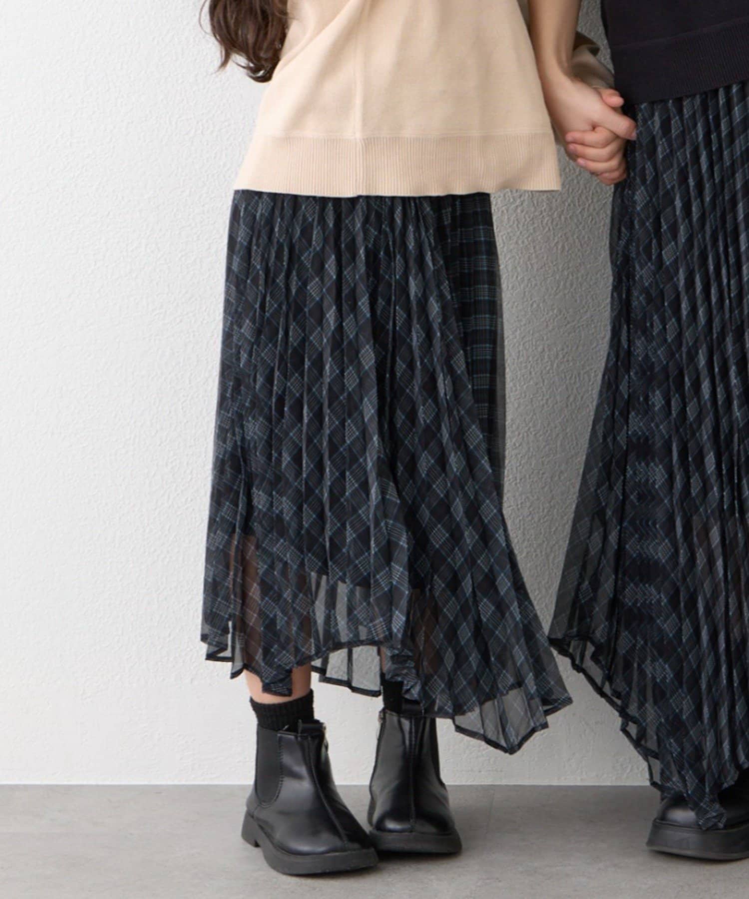 【チュニックとしても◎】2WAイレギュラーヘムプリーツチェックスカート