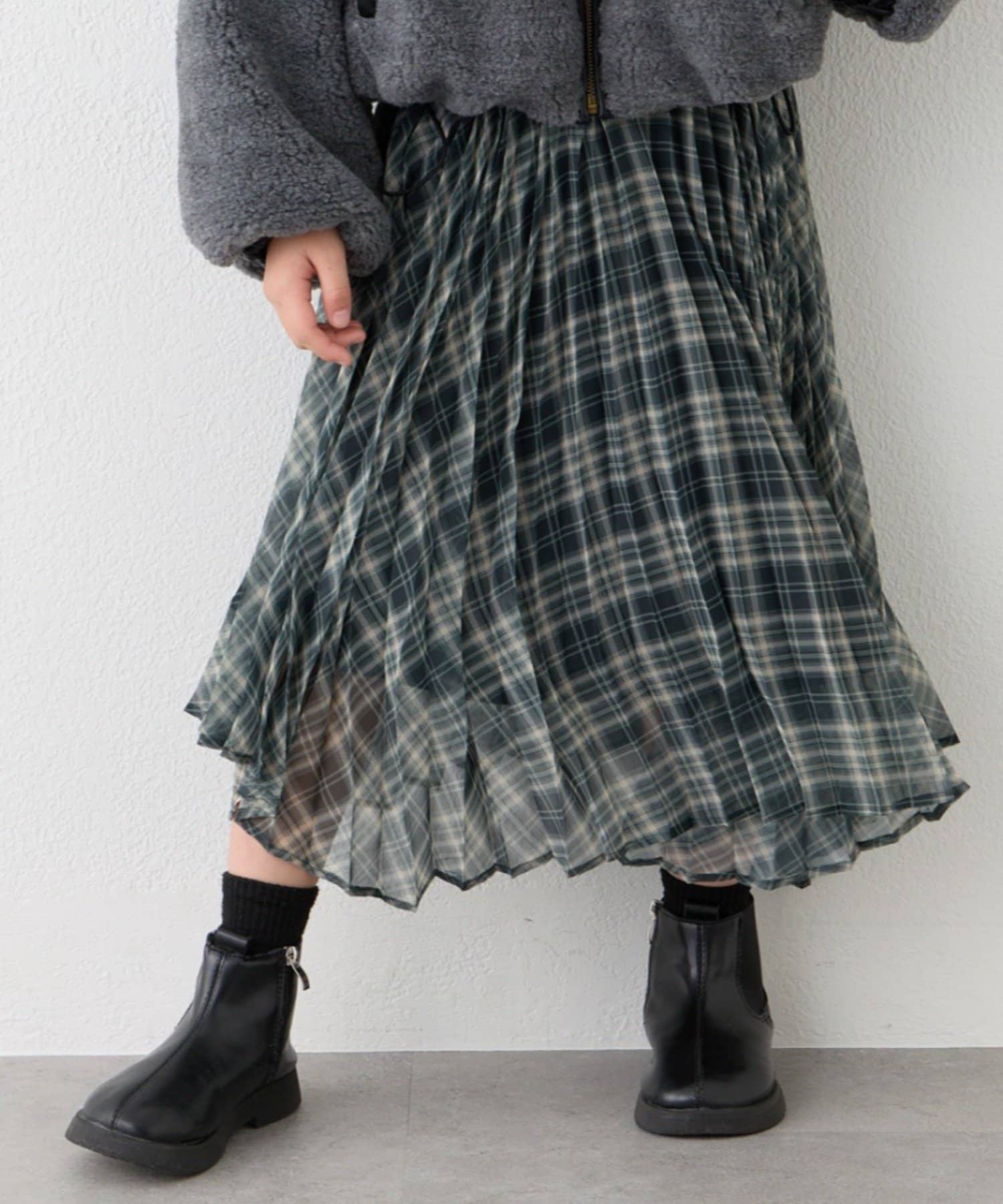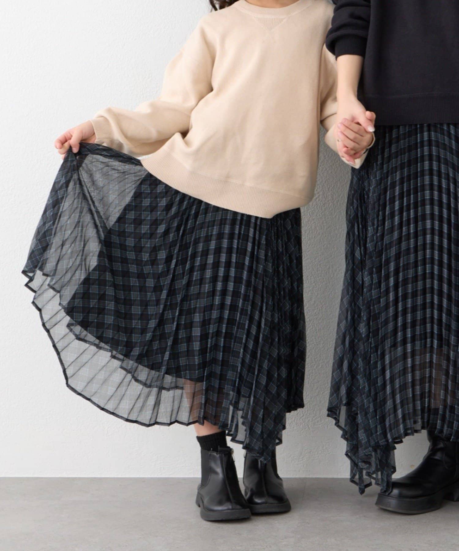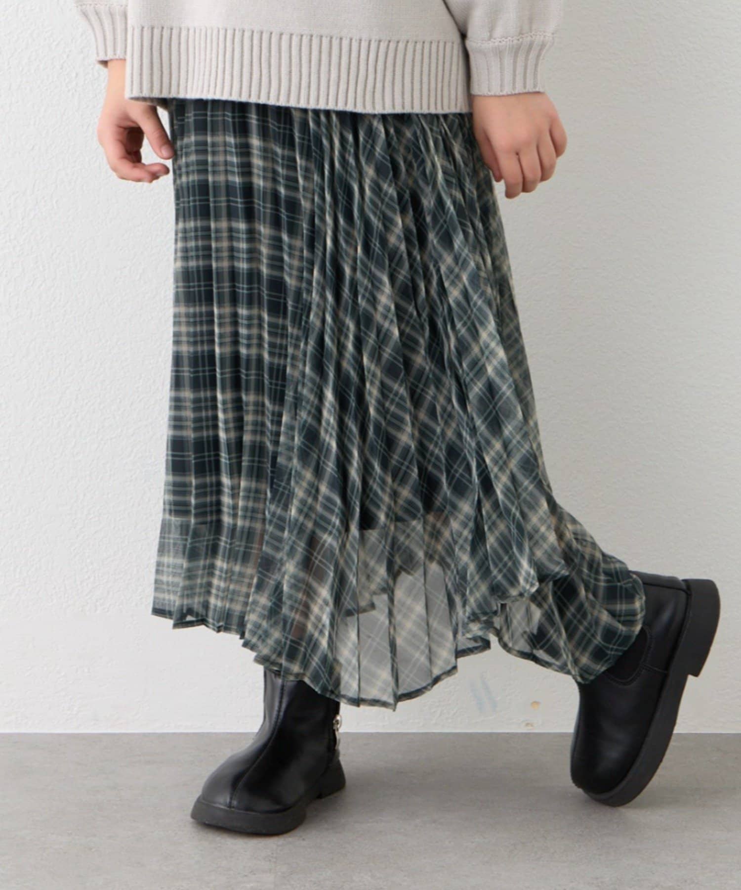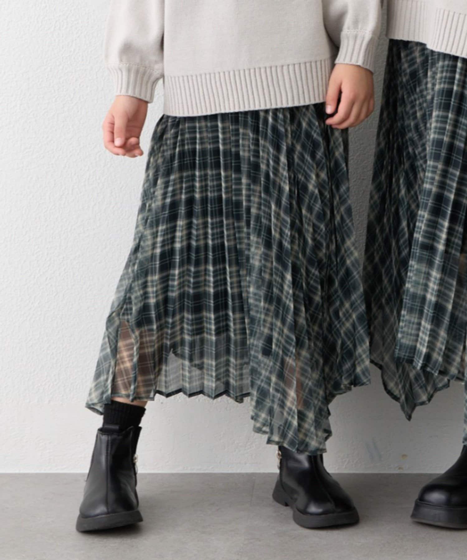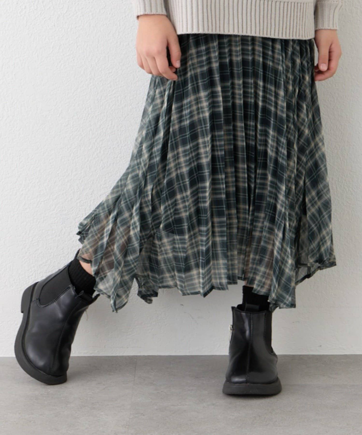 【KIDS】《ジュニアサイズあり》2WAYプリーツチェックヘムスカート(OSORO)