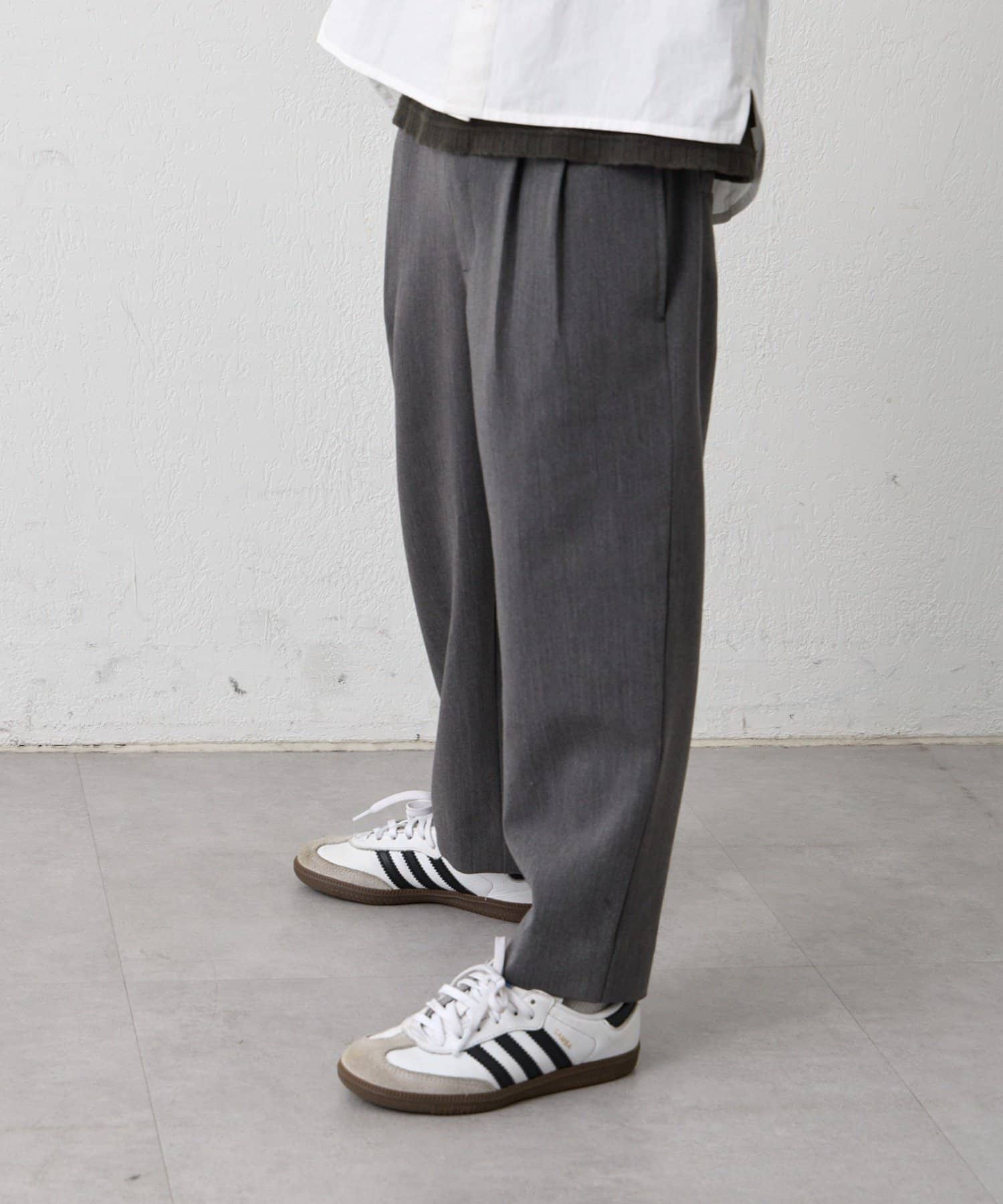 ジャケットと相性の良い、すっきりとしたシルエットのパンツ。