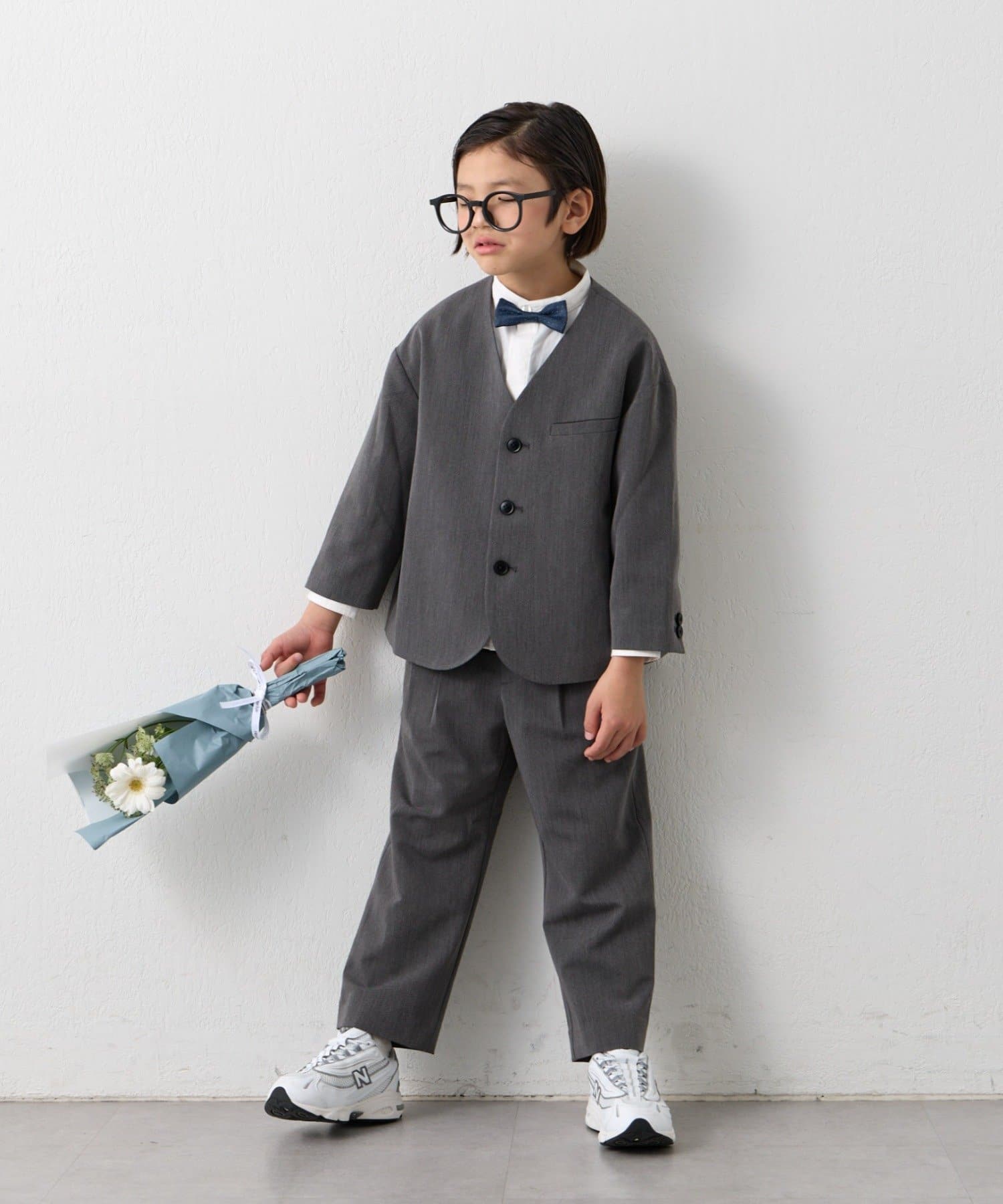 すっきりとしたVネックが、お子様の顔まわりをシャープに見せ、洗練された印象を与えます。
