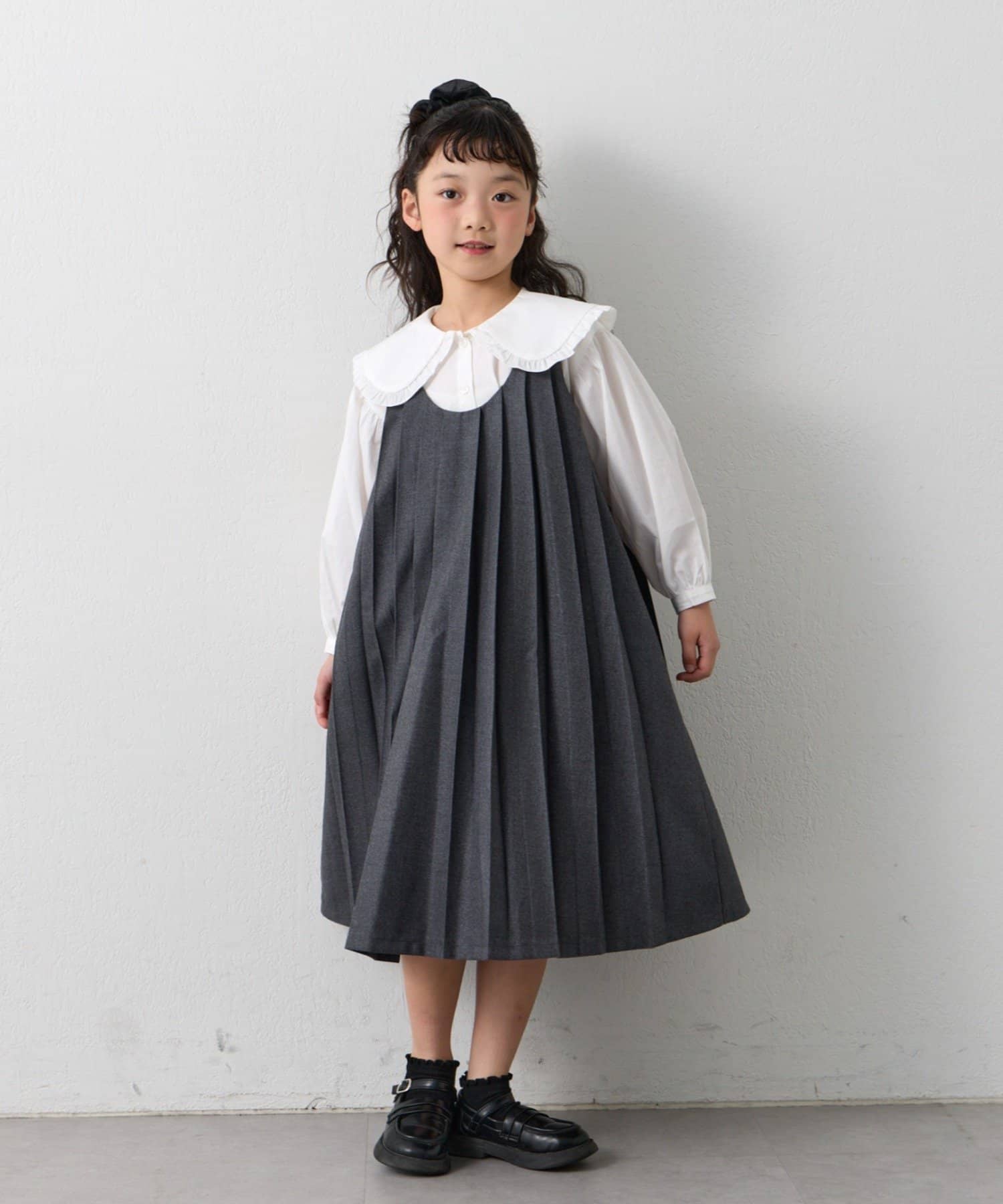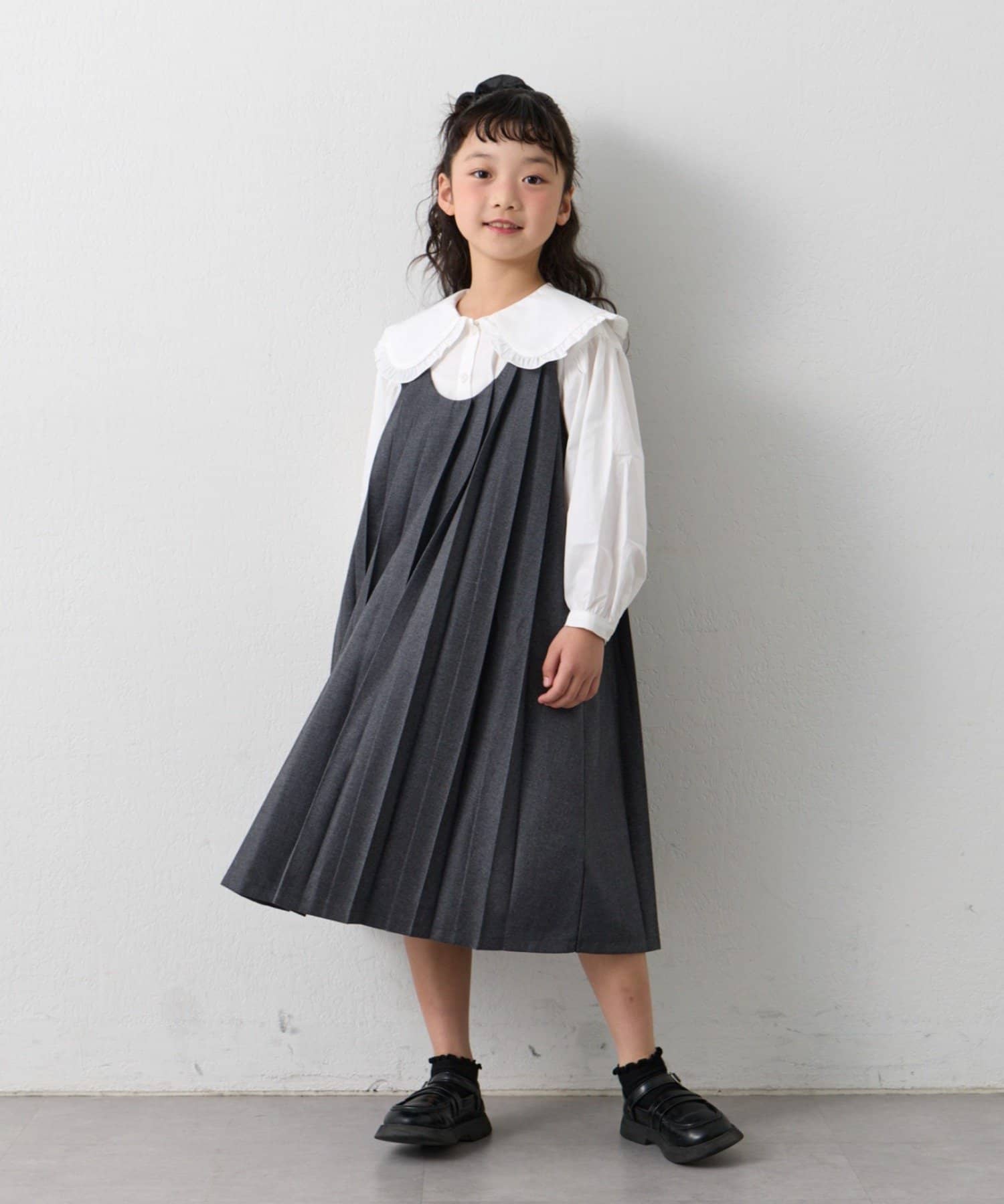 【KIDS】【フォーマル・セレモニー】洗えるBIGカラー襟プリーツワンピースセット