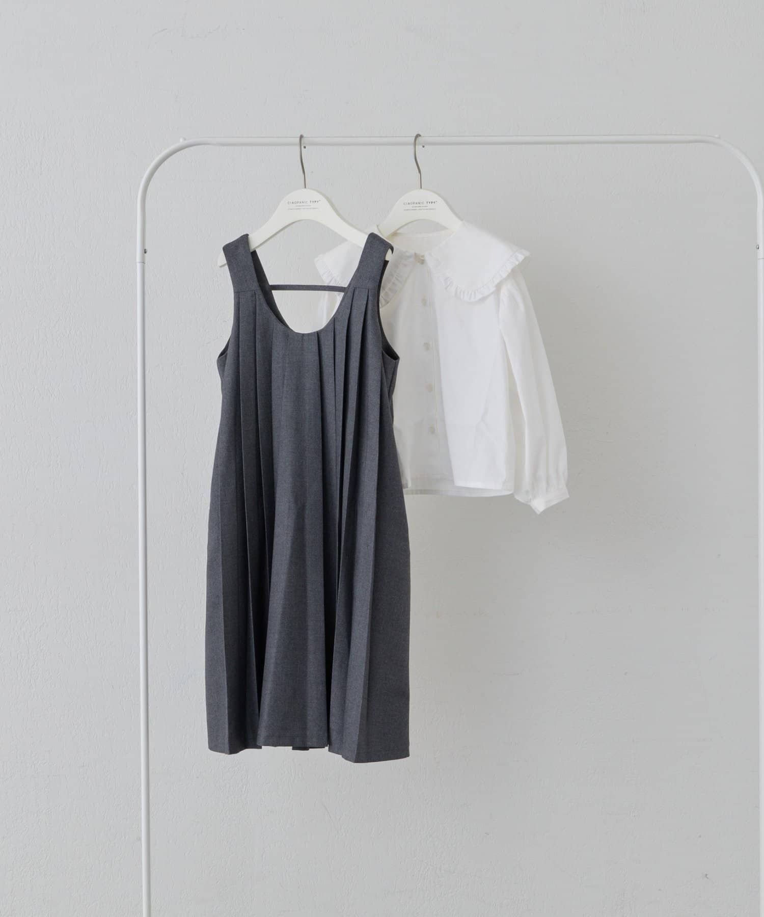 大きめの丸襟が特徴で、可愛らしさをプラス。