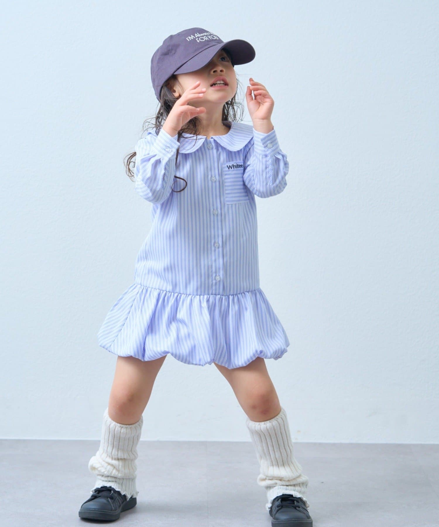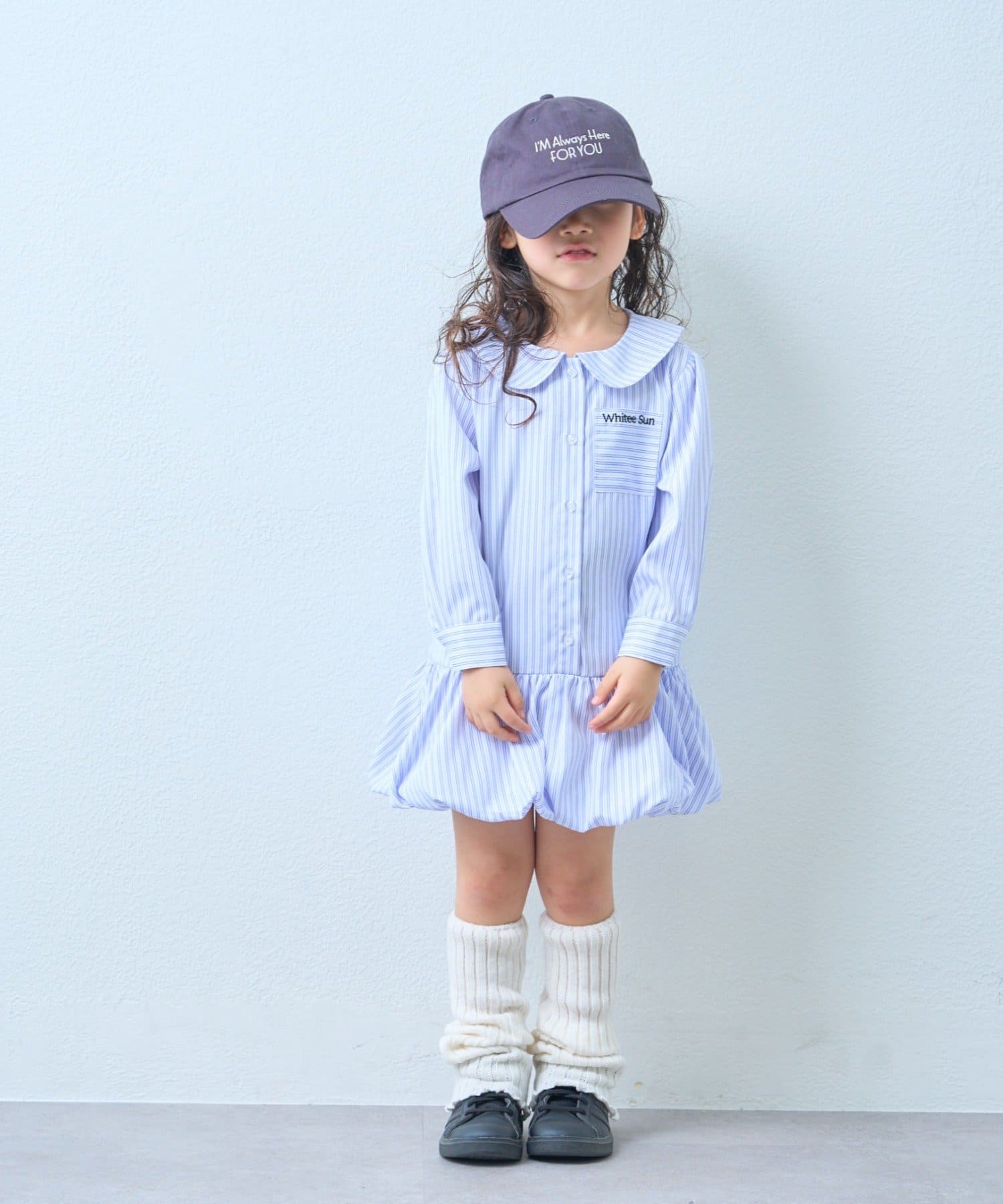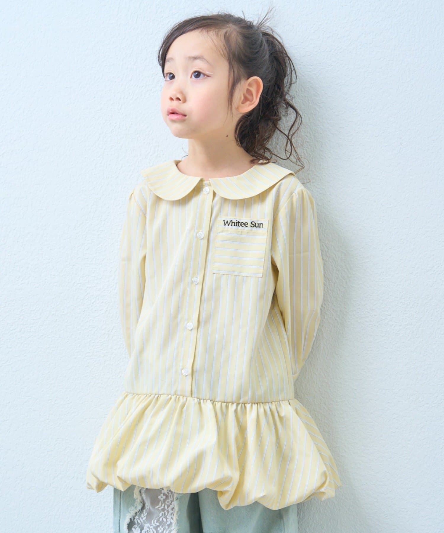 【KIDS】ストライプ裾バルーンシャツワンピース【WEB限定】