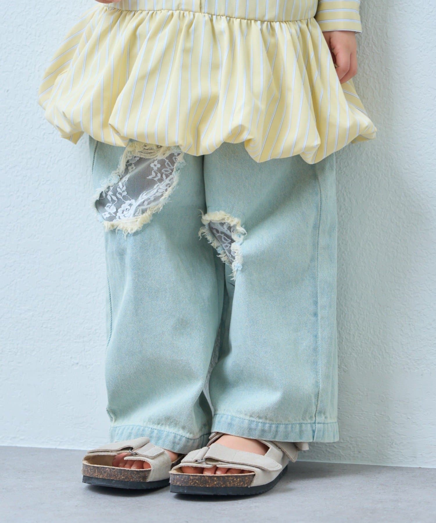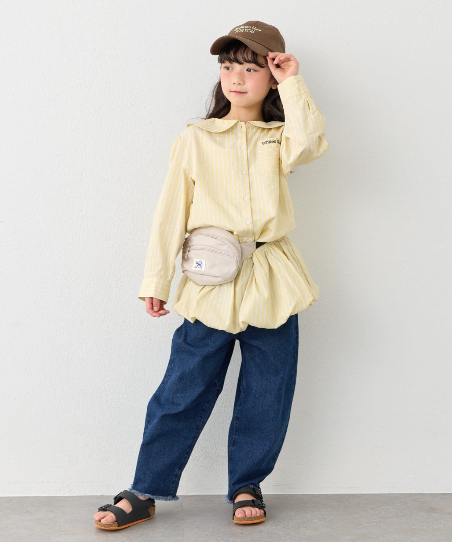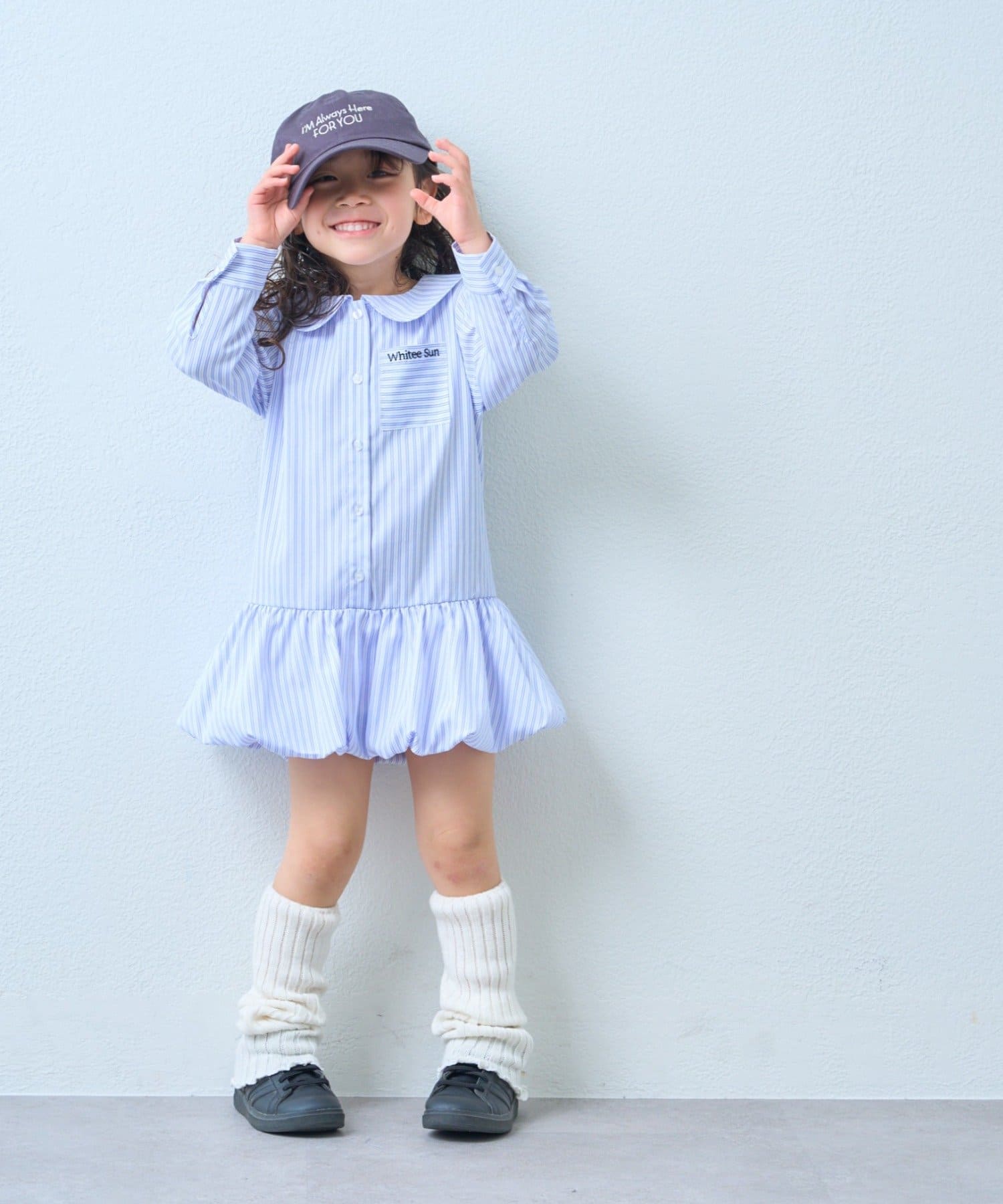 【KIDS】ストライプ裾バルーンシャツワンピース【WEB限定】