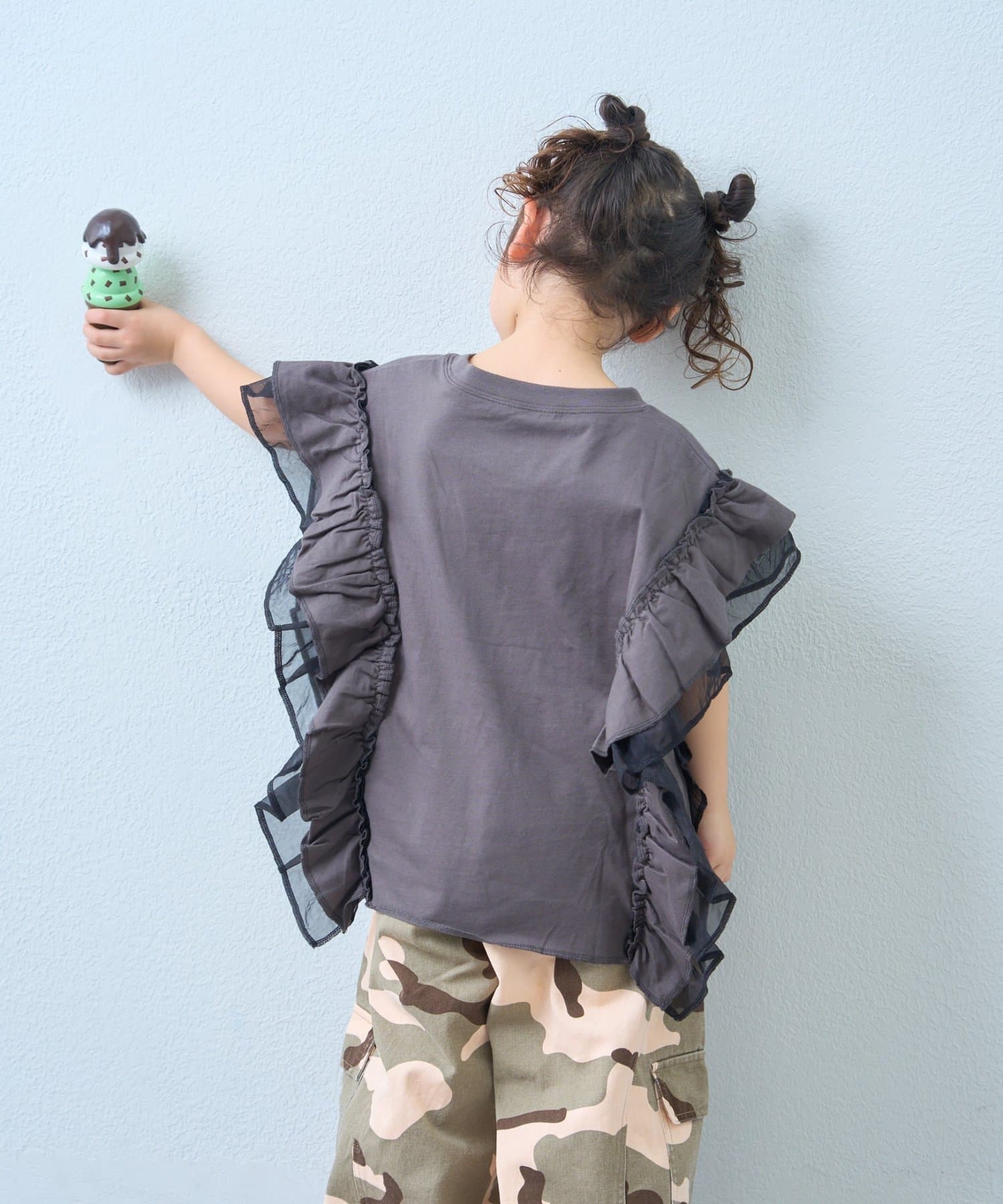 【KIDS】ドッキングチュールフリルメッセージロゴTEE