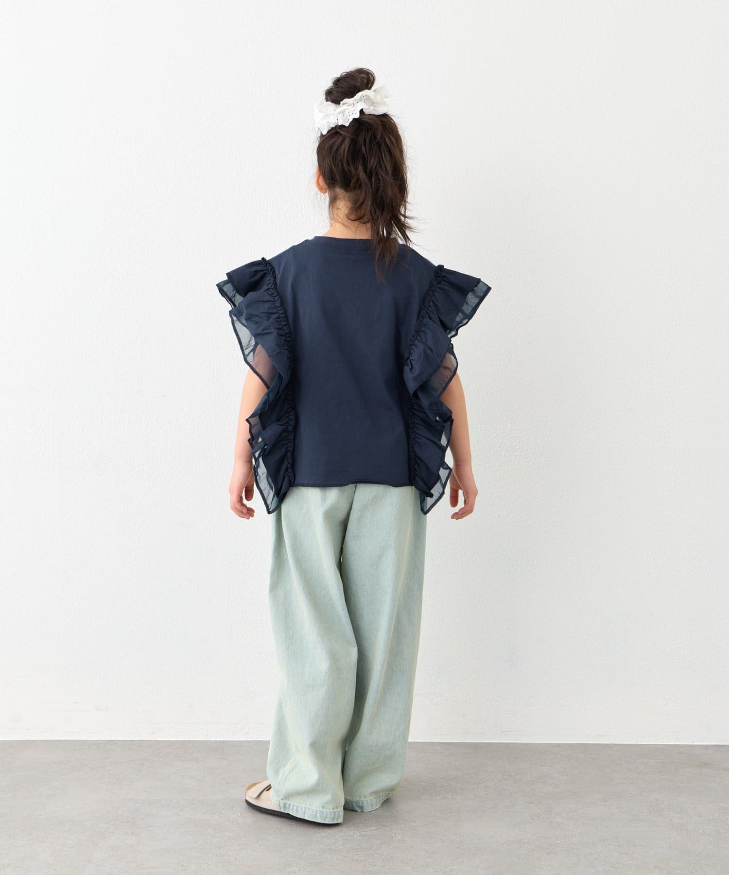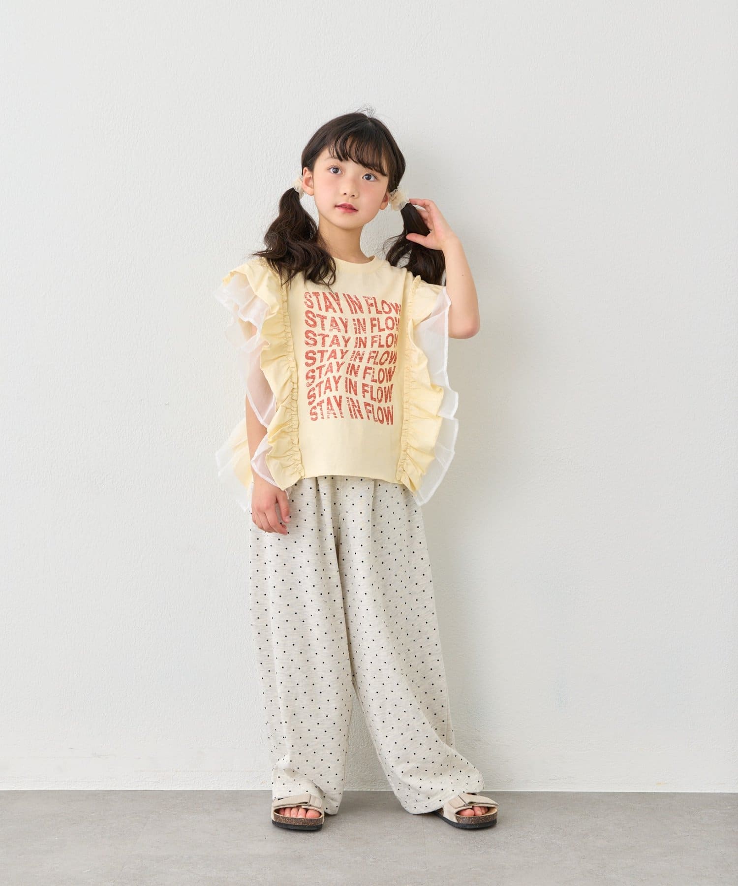 そこに軽やかなチュールフリルを重ねることで、カジュアルさの中に女の子らしいやわらかさをプラスしました。