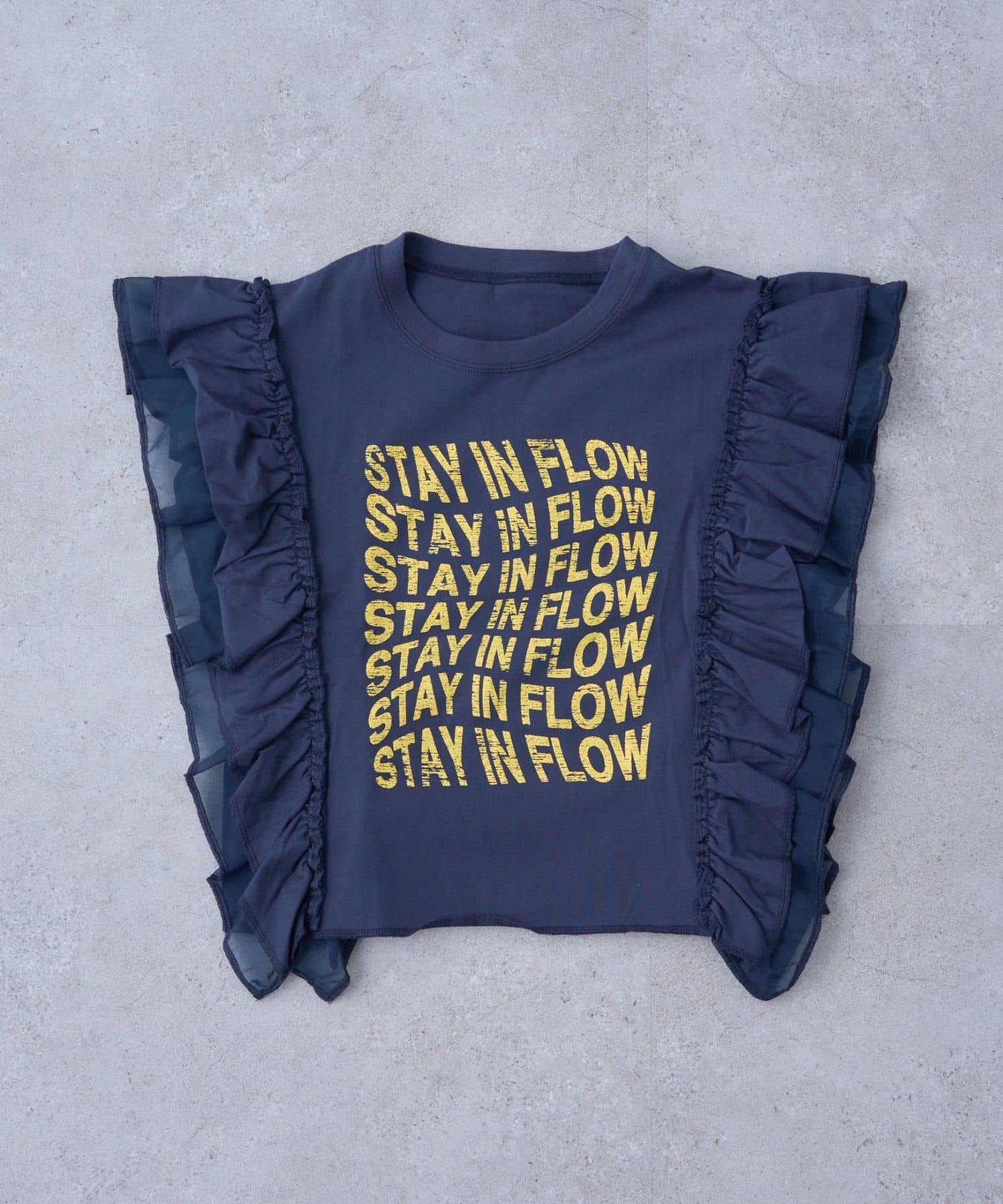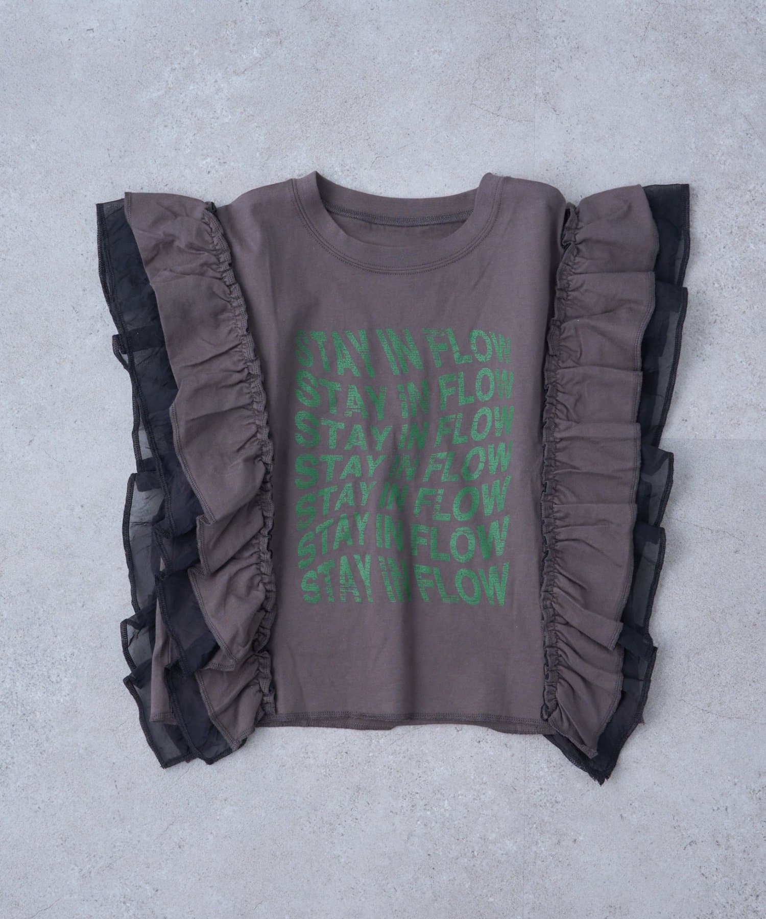 カジュアルなロゴTシャツに、ふんわりとしたチュールフリルをドッキングしたデザイントップス。