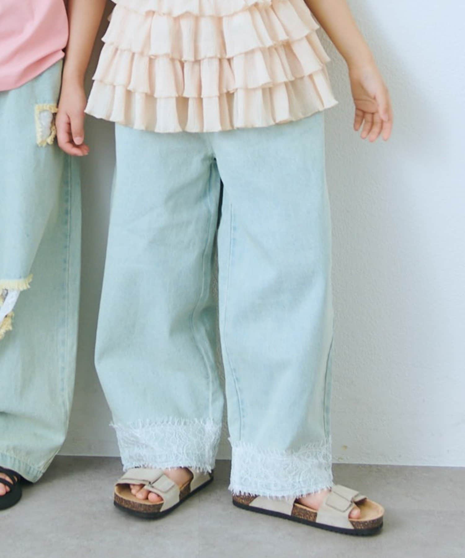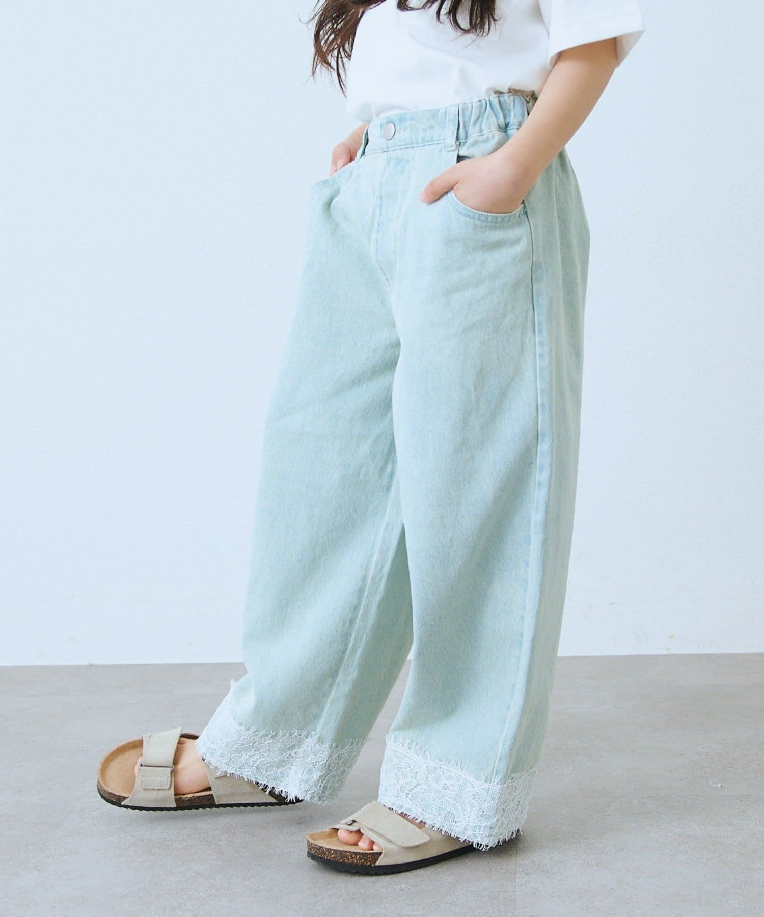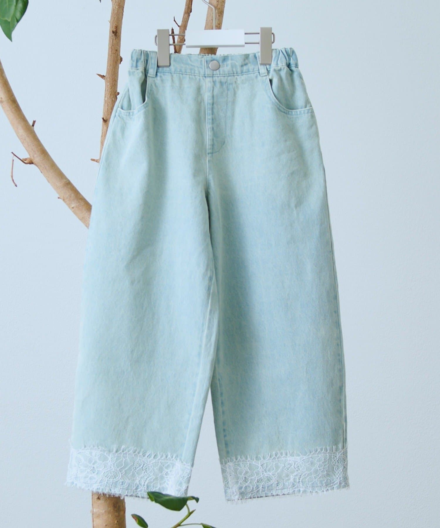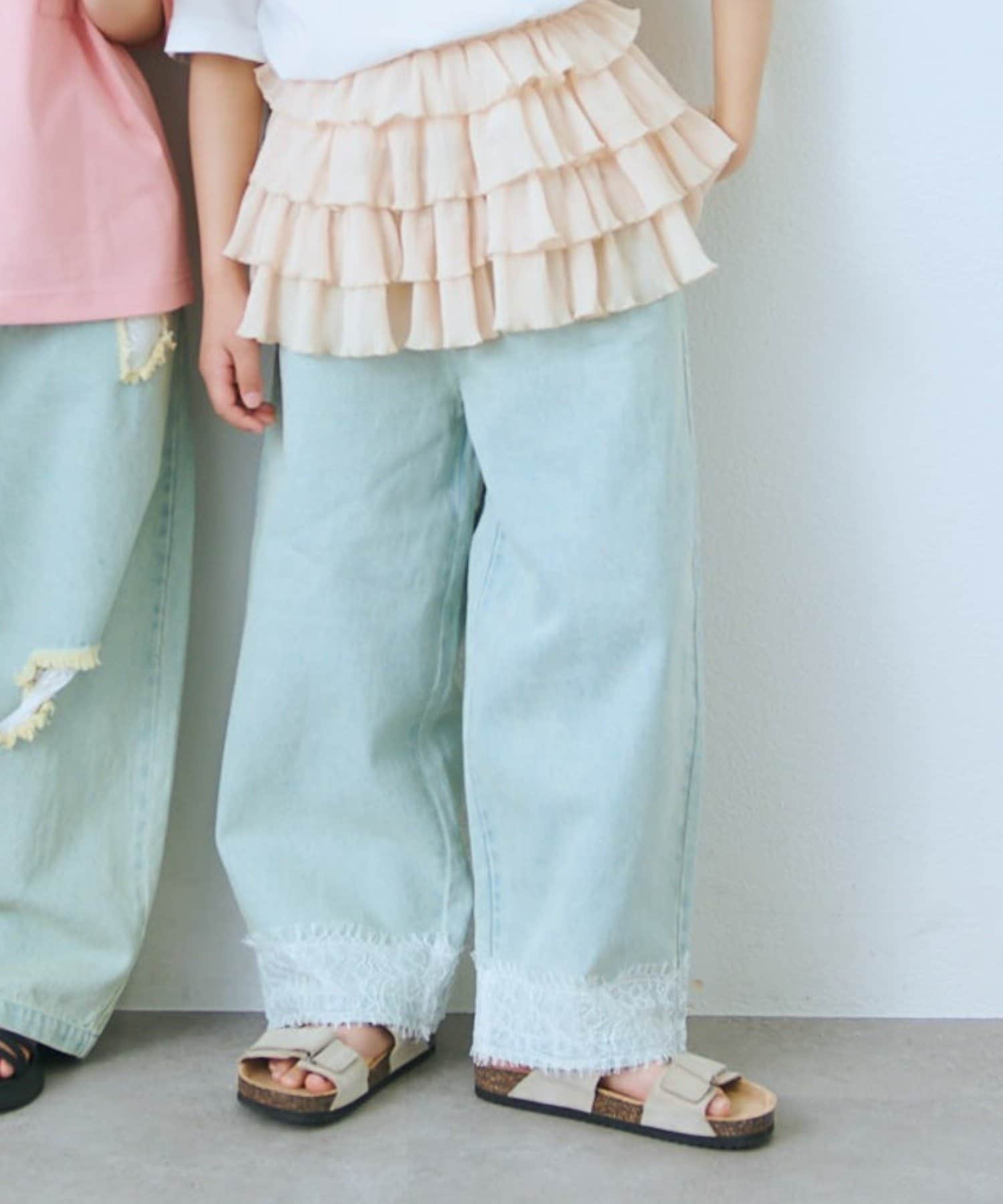 裾からのぞく白レースがさりげなく華やかで、カジュアルなデニムに女の子らしい可愛さをプラス。