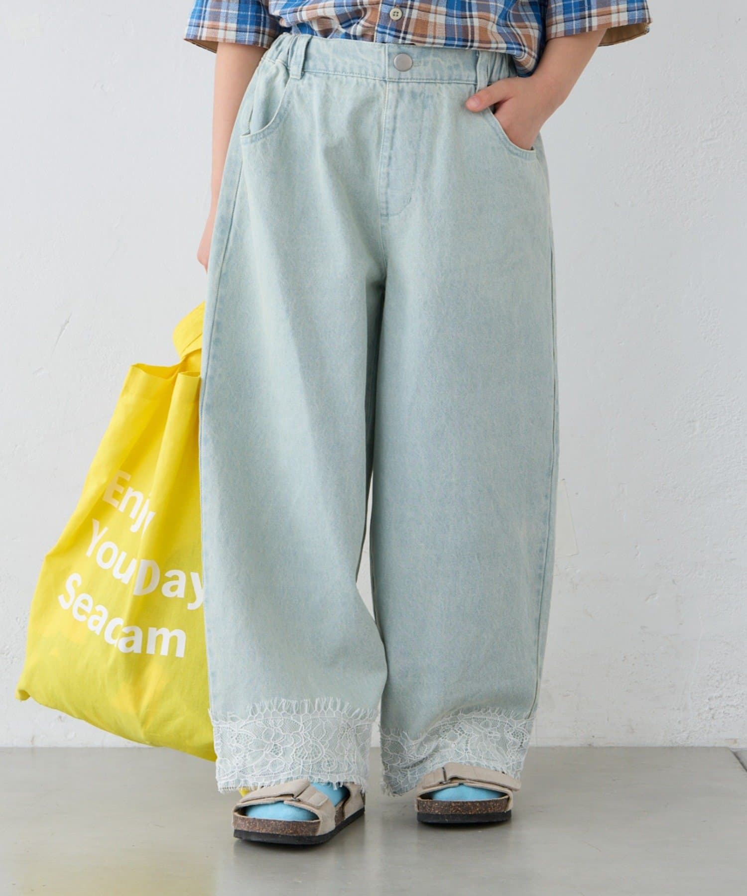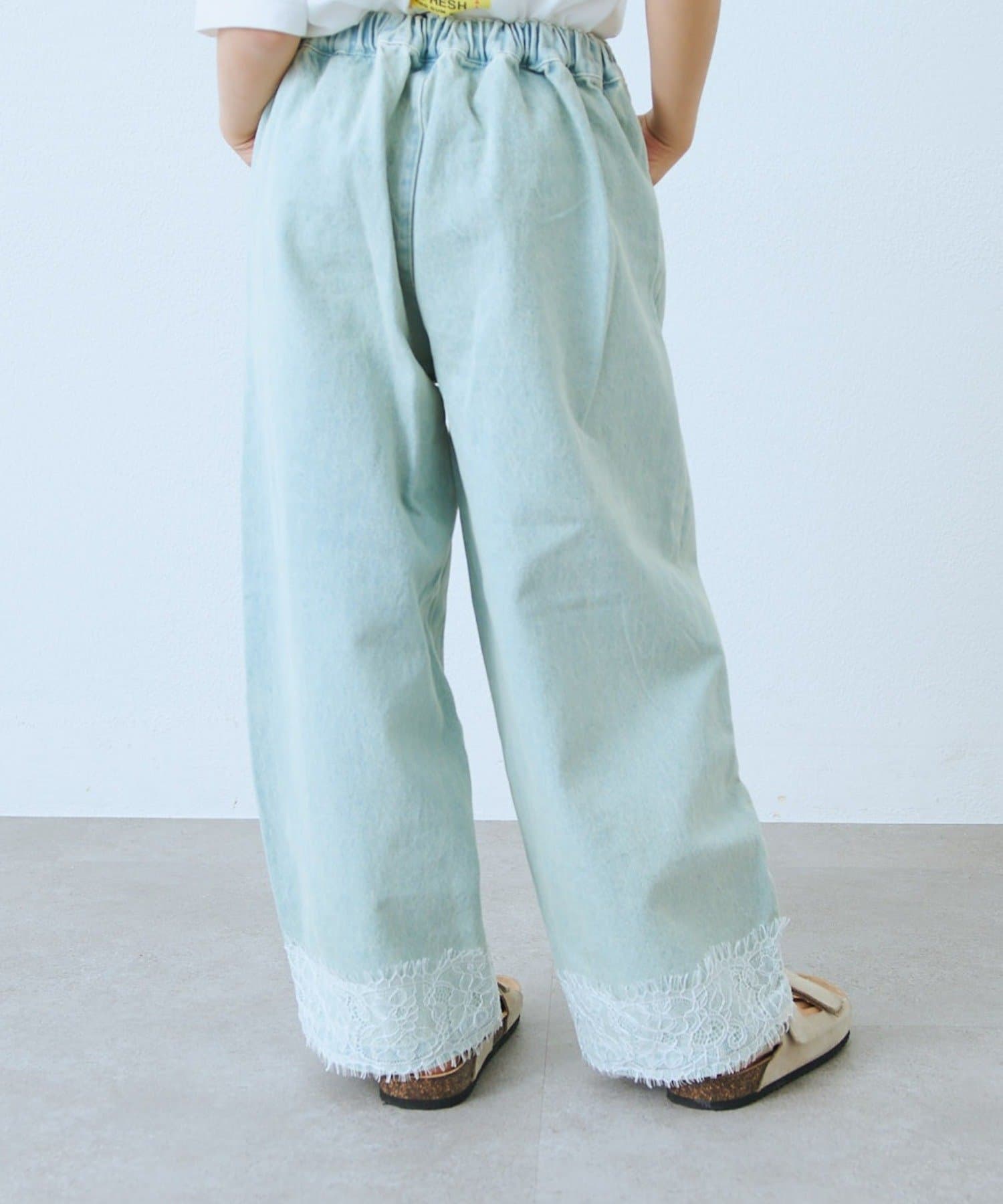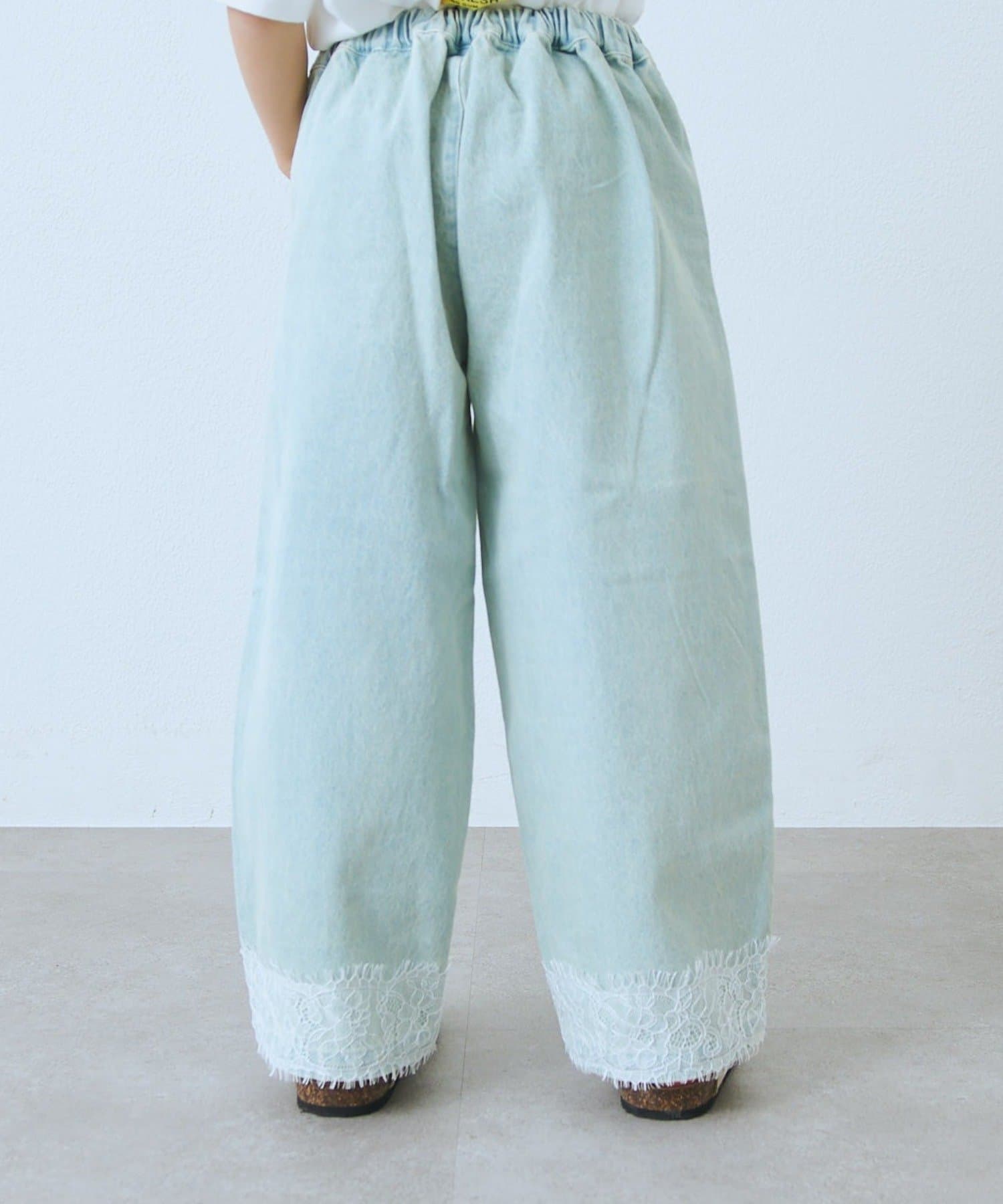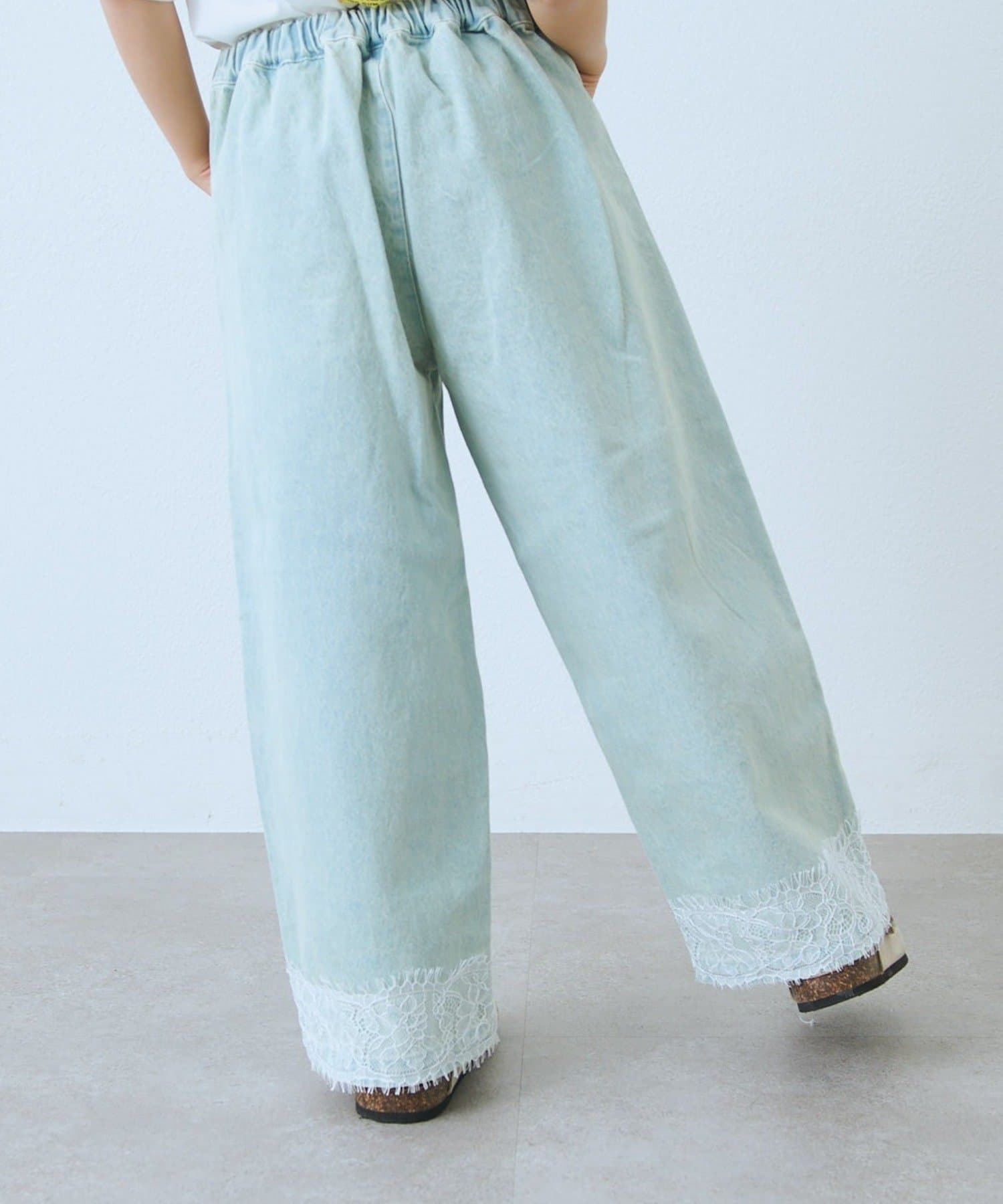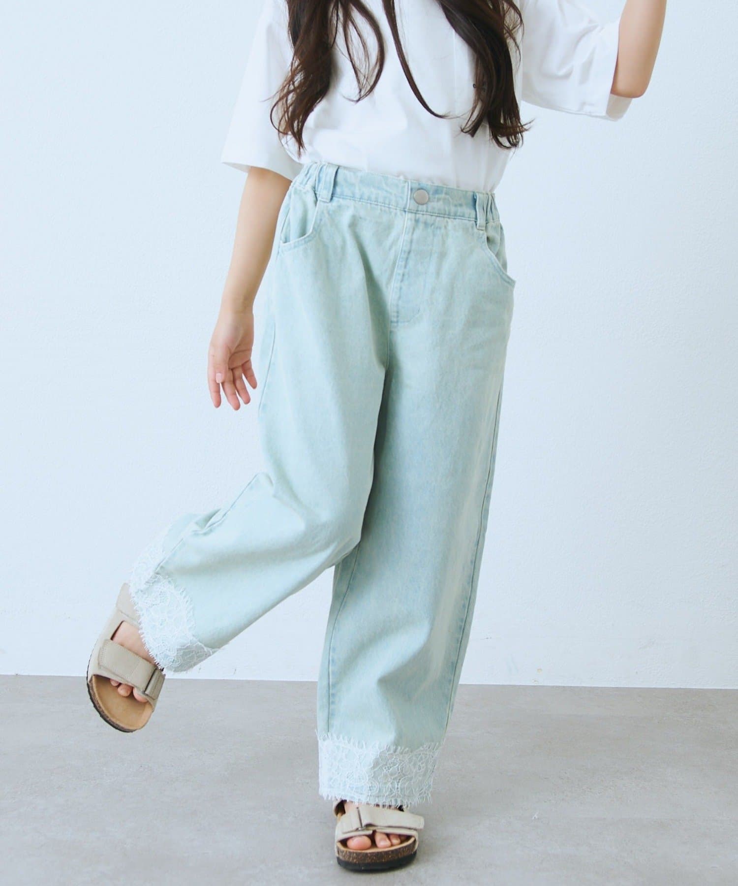 裾からのぞく白レースがさりげなく華やかで、カジュアルなデニムに女の子らしい可愛さをプラス。