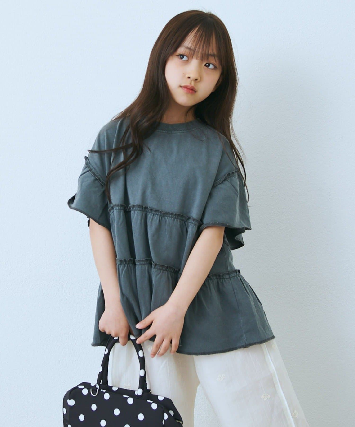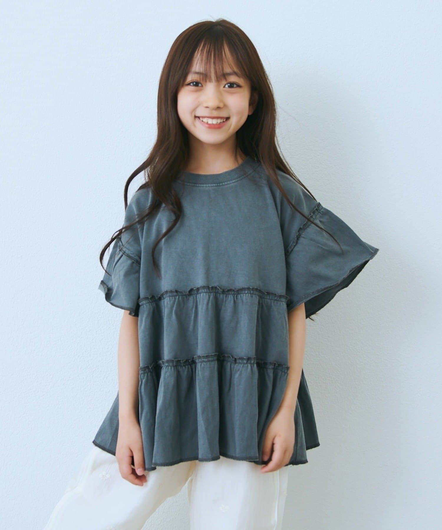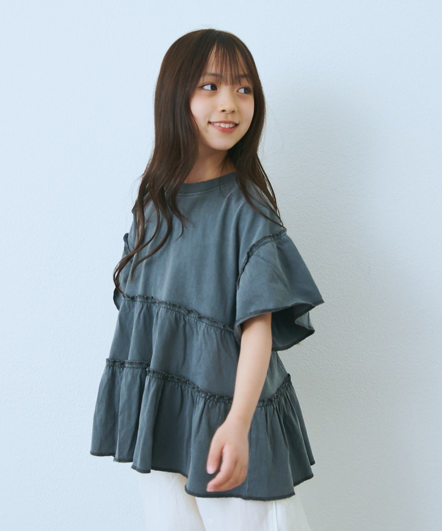 【KIDS】ピグメントティアードフリル半袖TEE