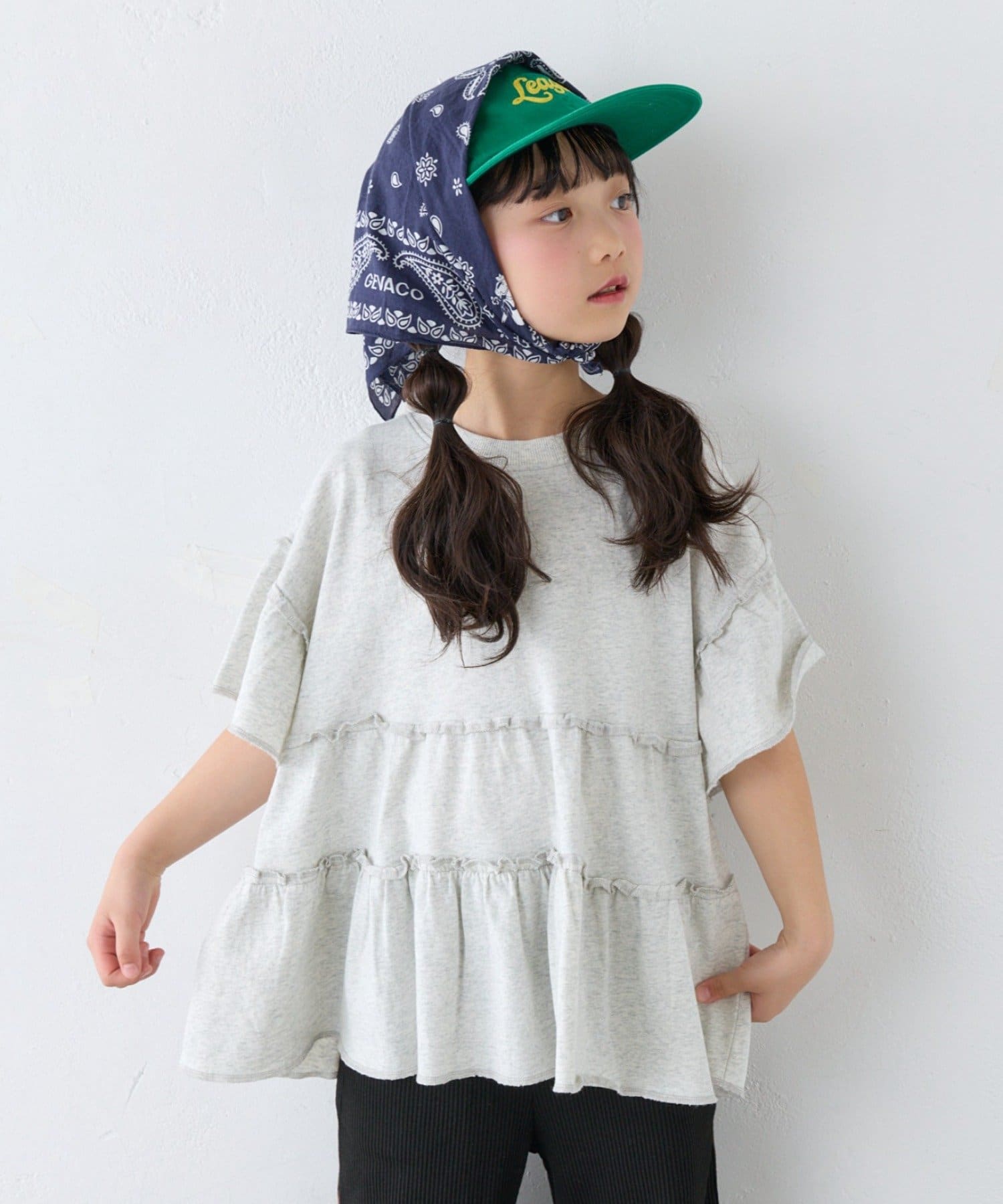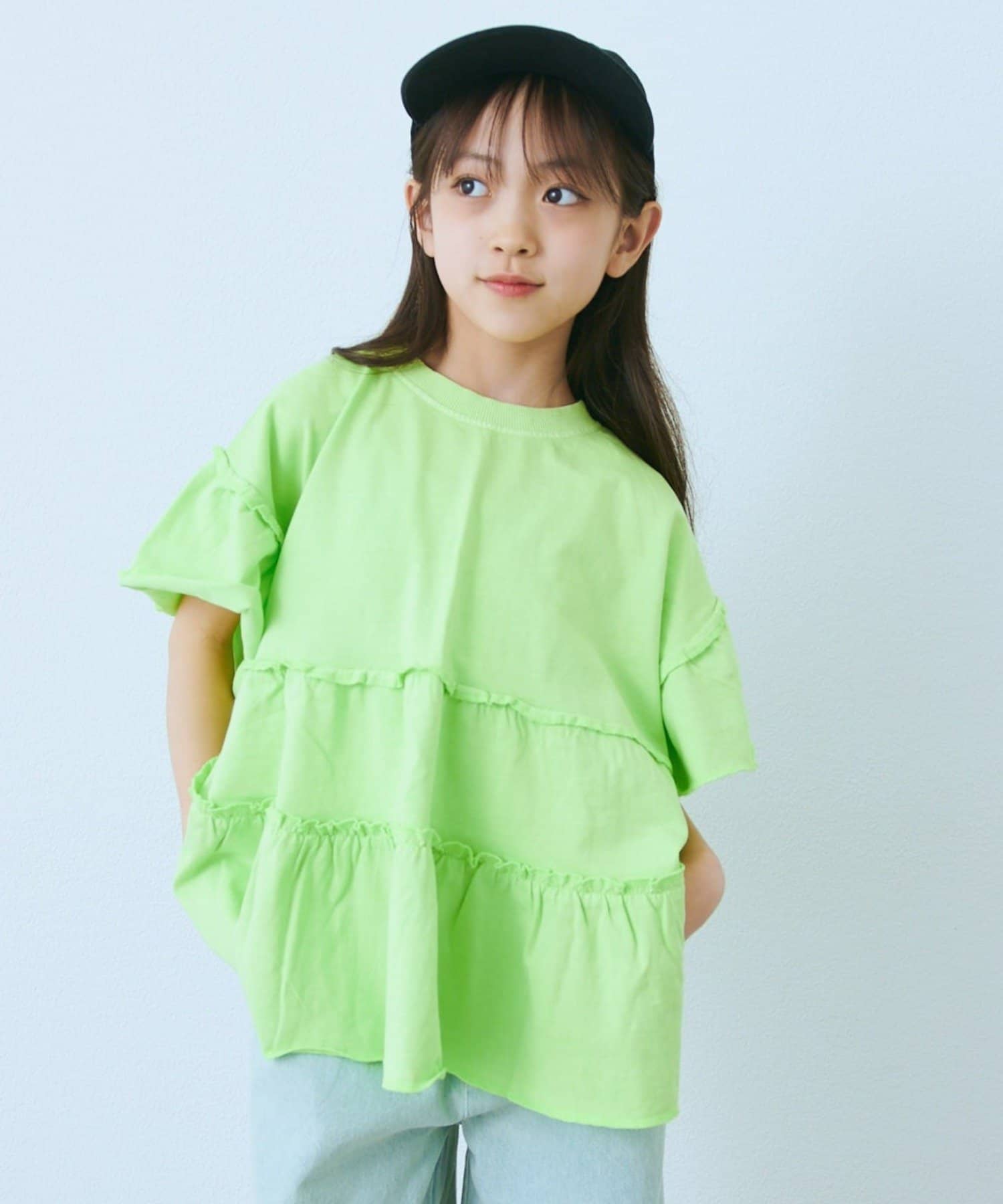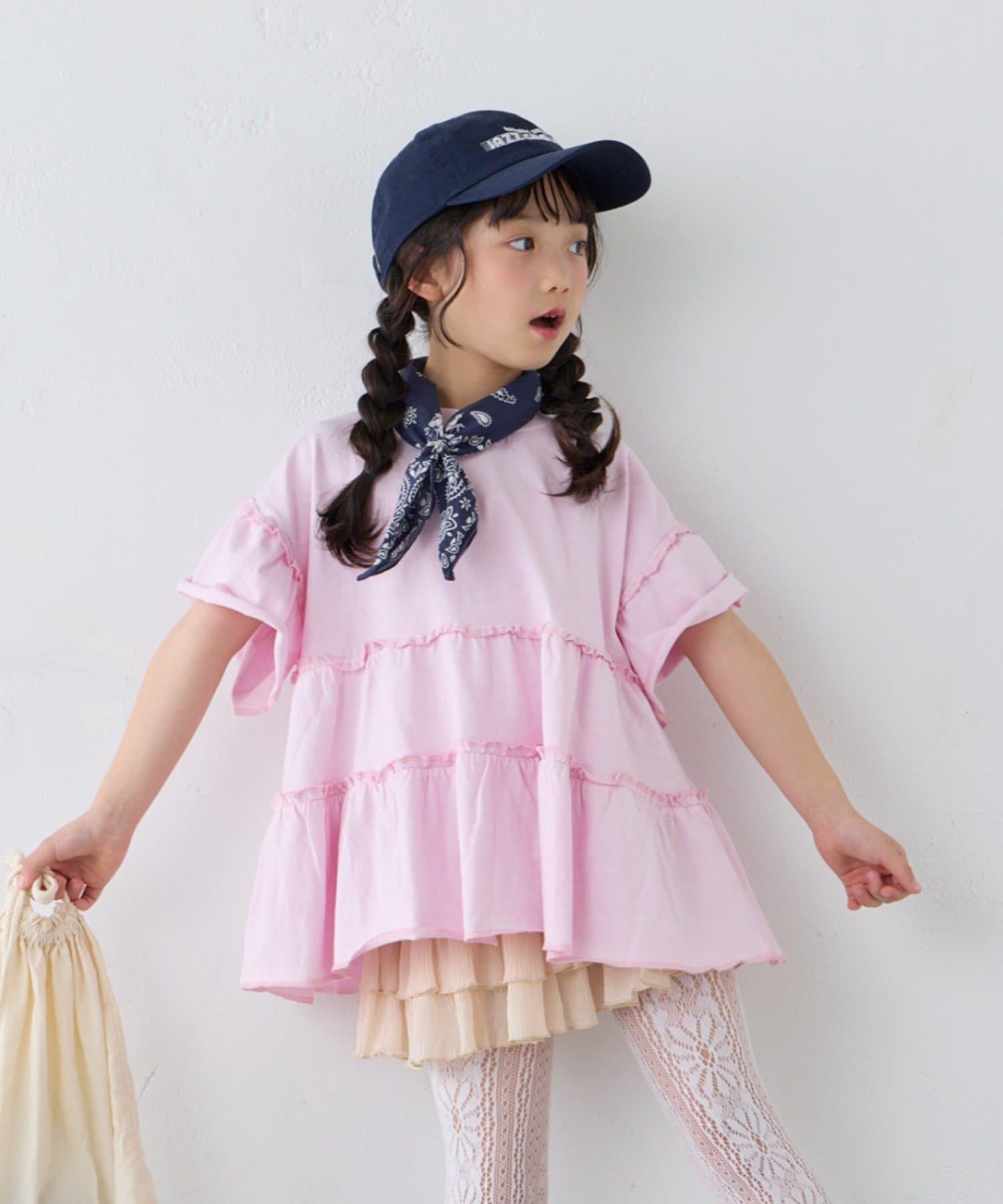 【KIDS】ピグメントティアードフリル半袖TEE