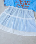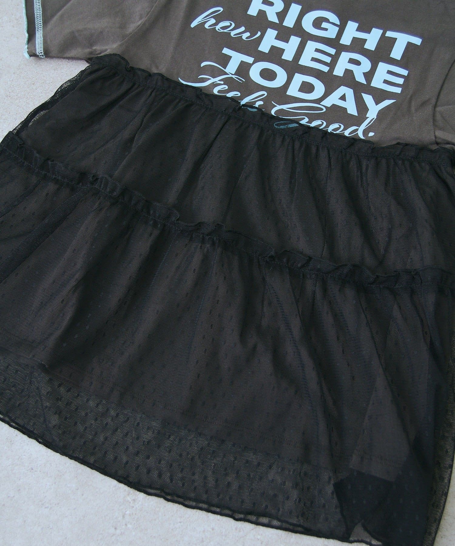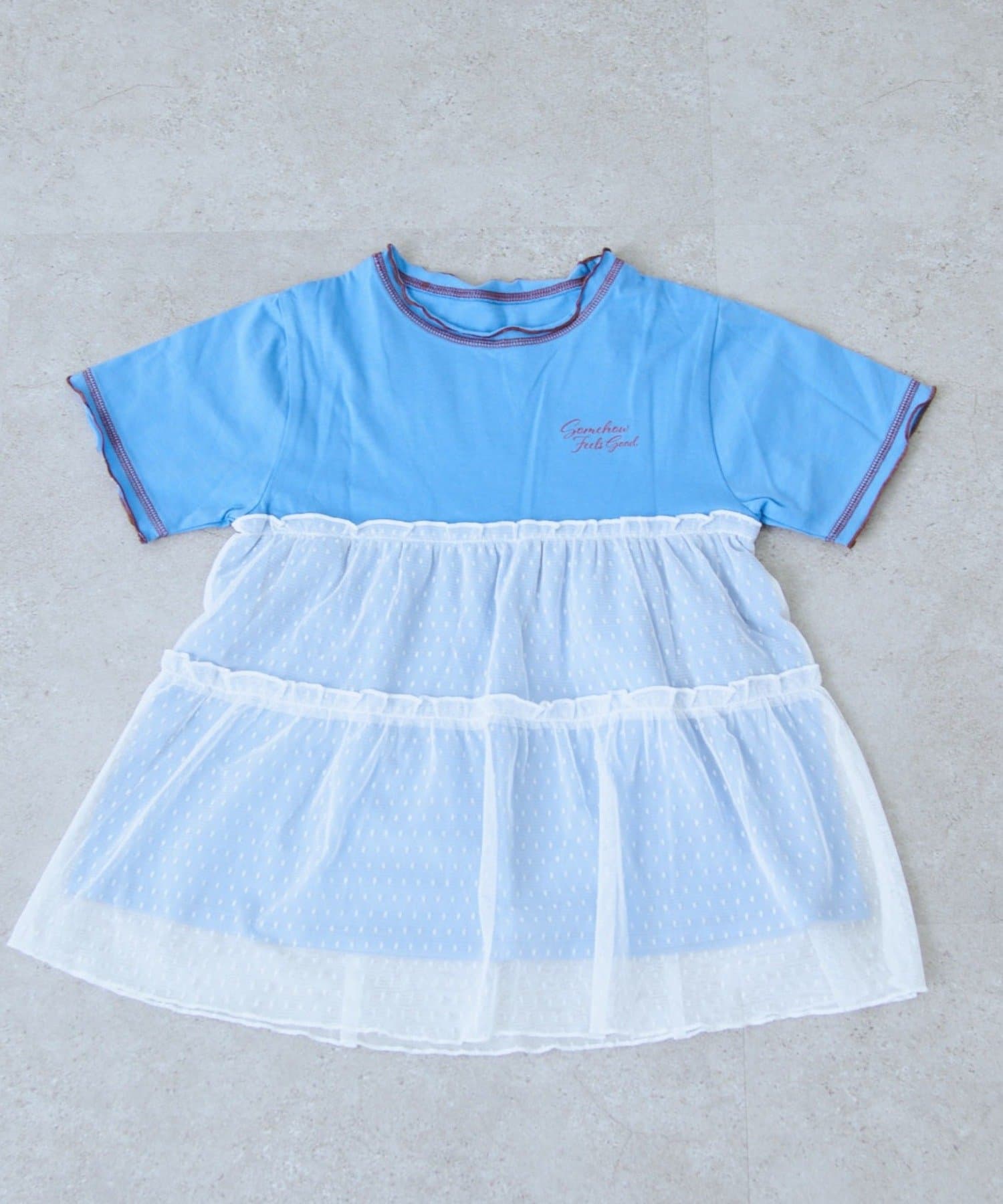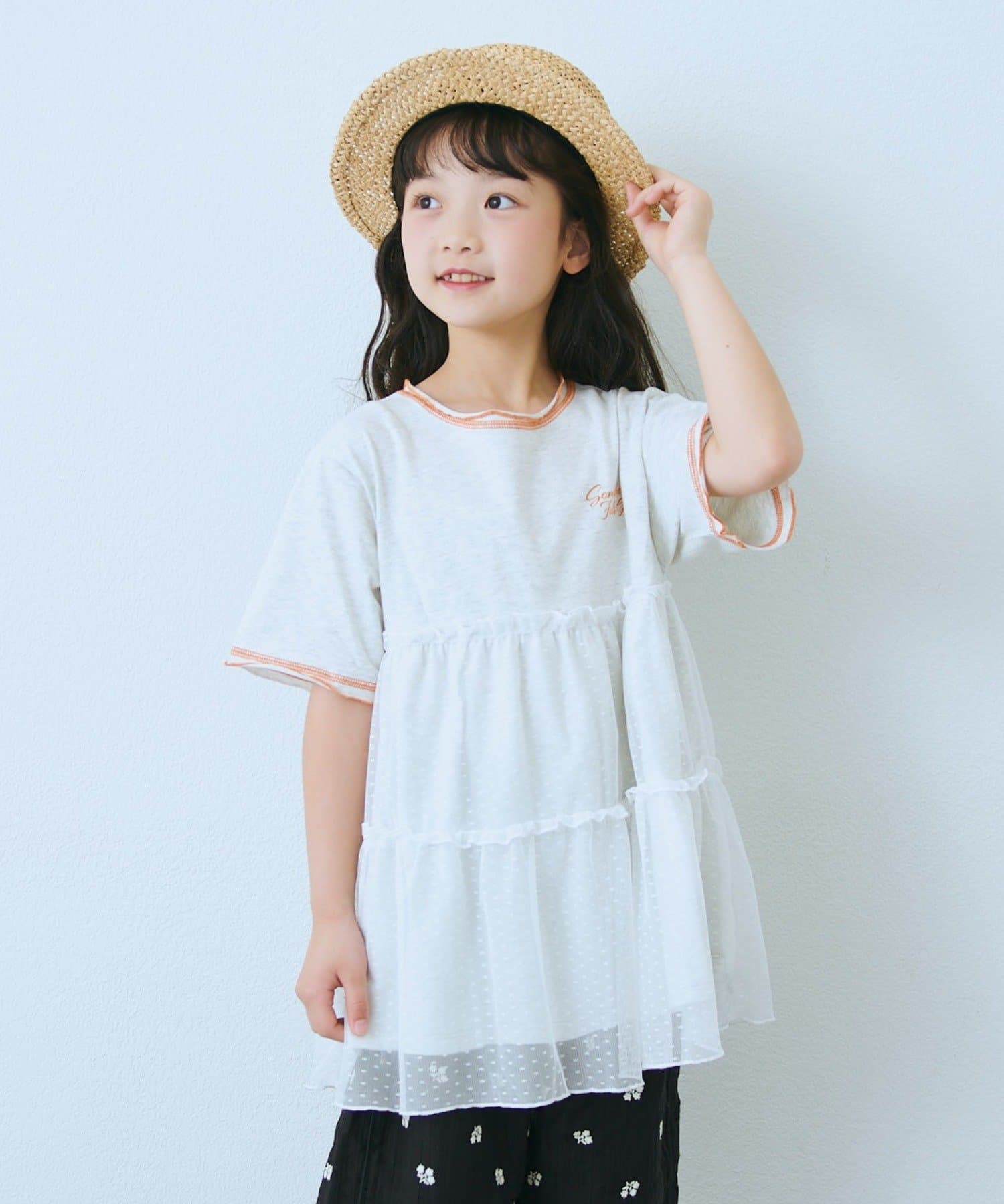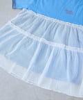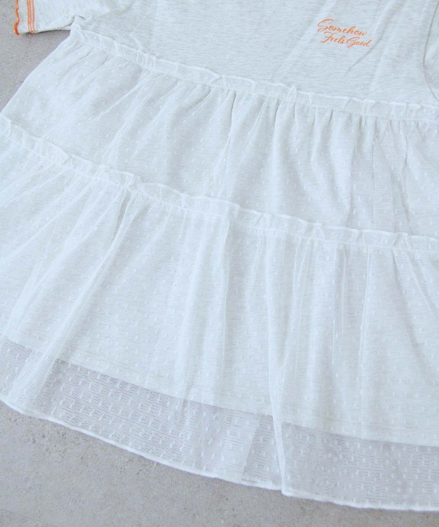やわらかな綿100%素材に、ドット柄のチュールを重ねた華やかさたっぷりの一枚。