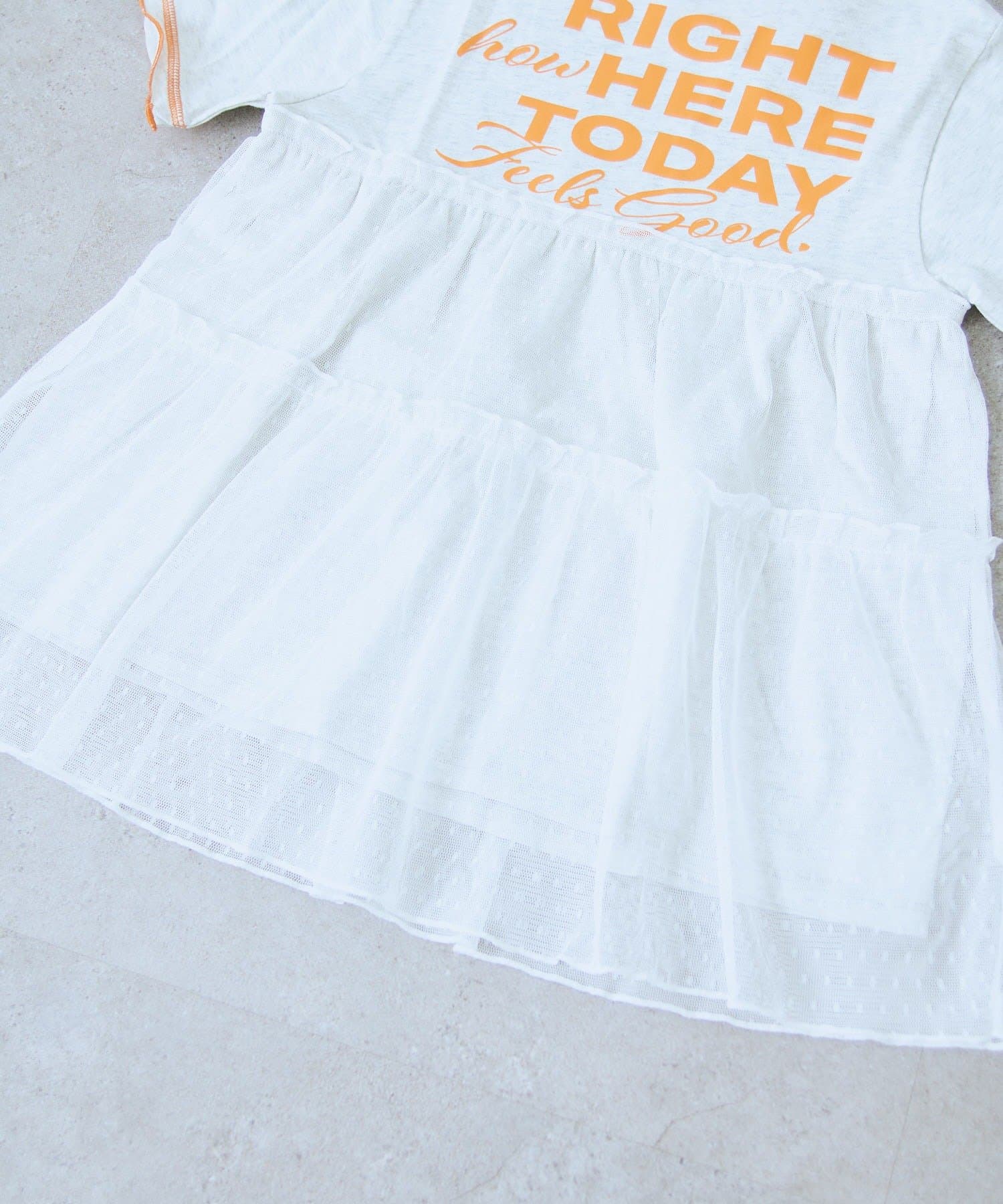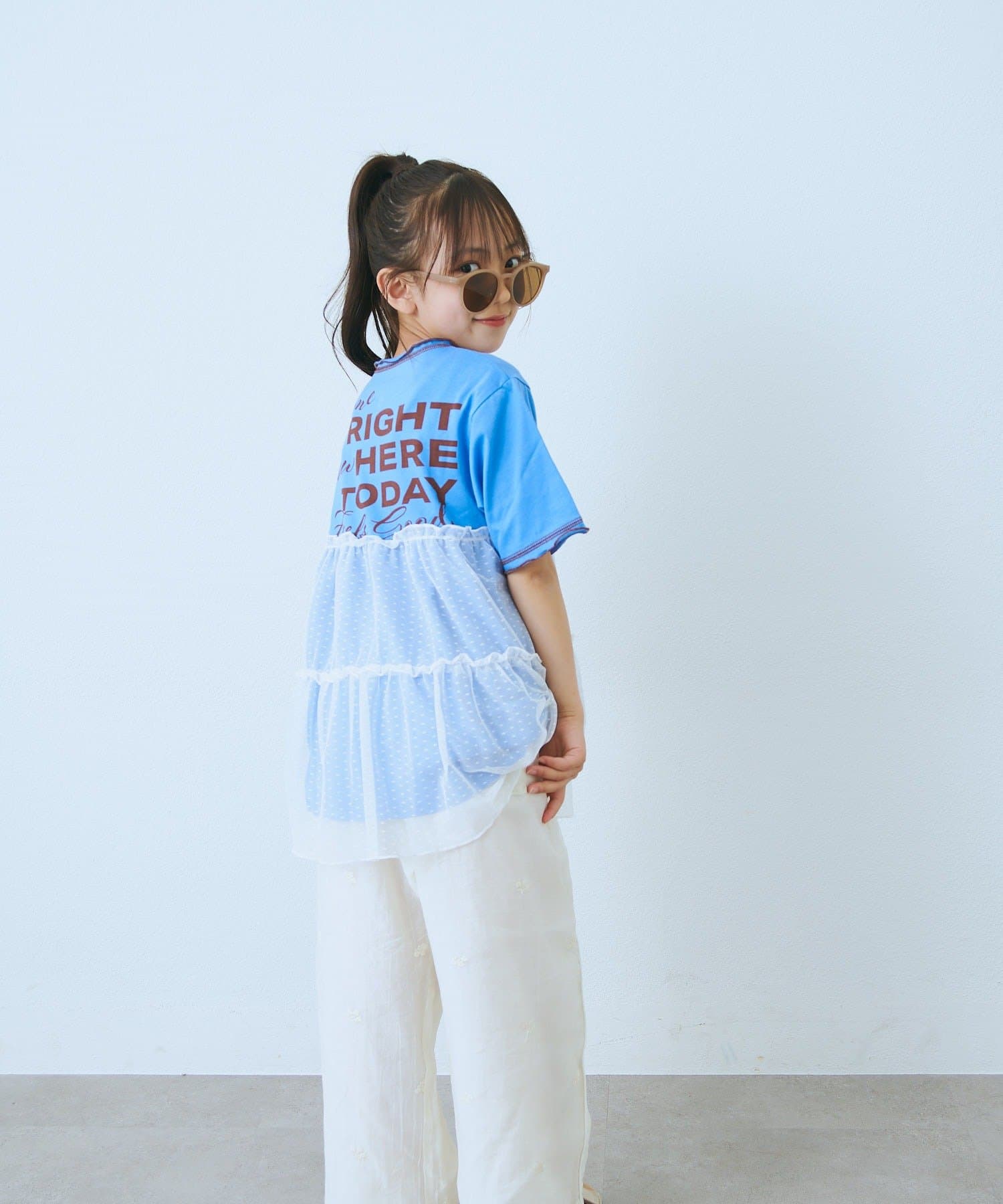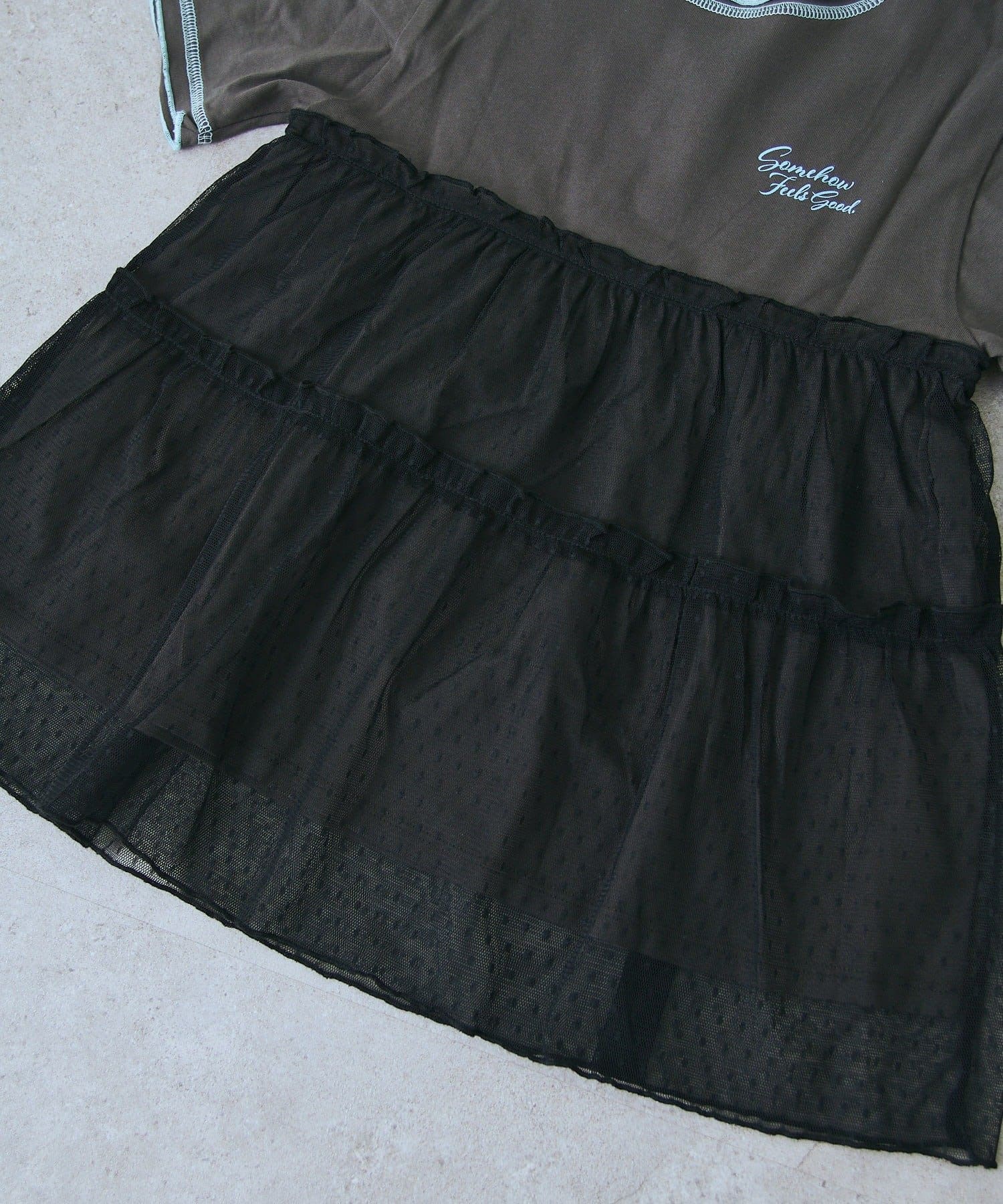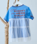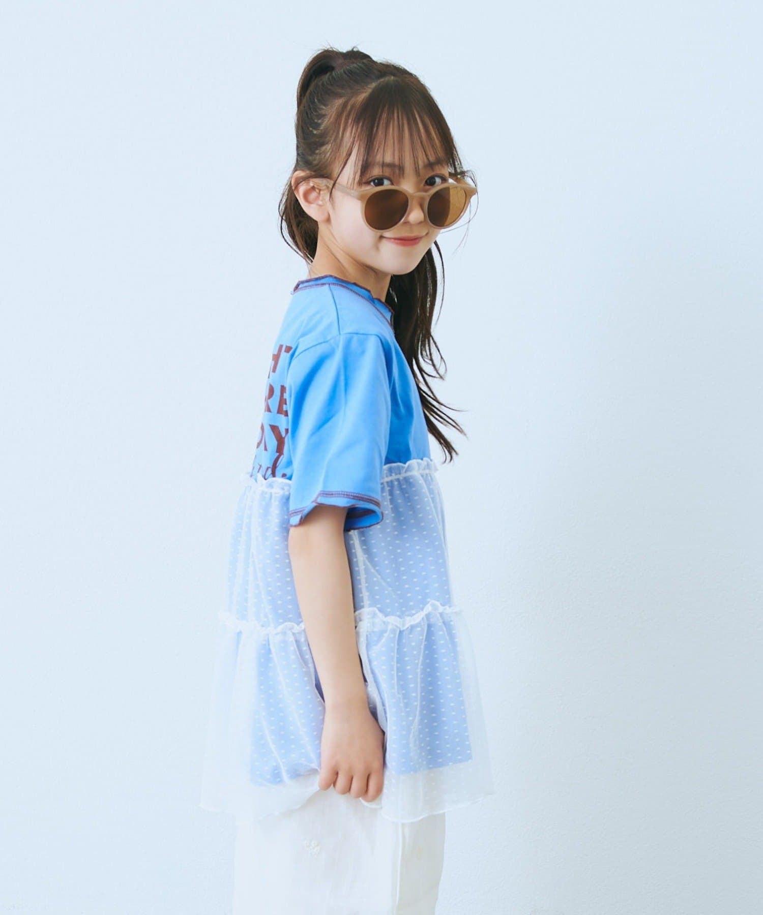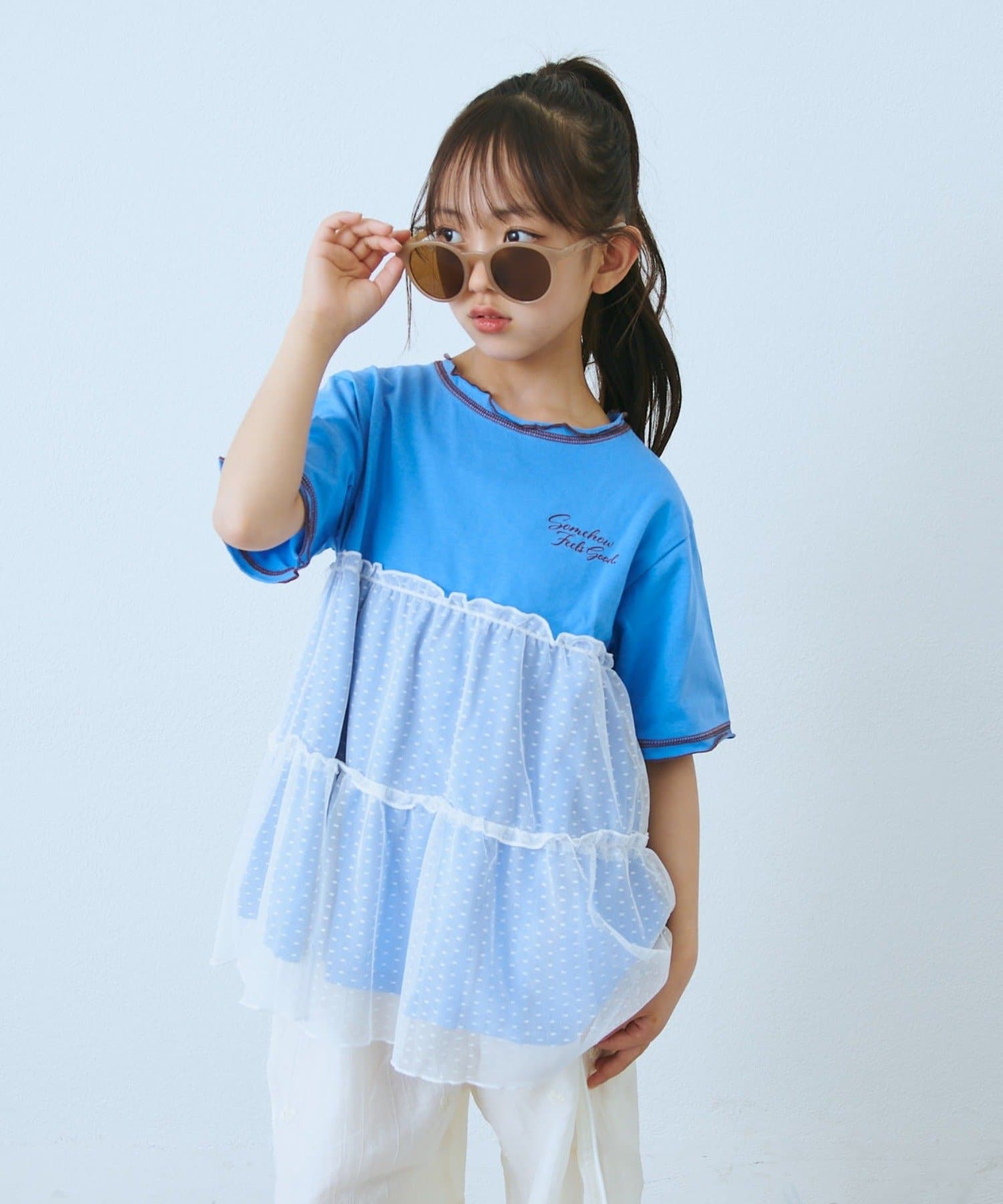 やわらかな綿100%素材に、ドット柄のチュールを重ねた華やかさたっぷりの一枚。