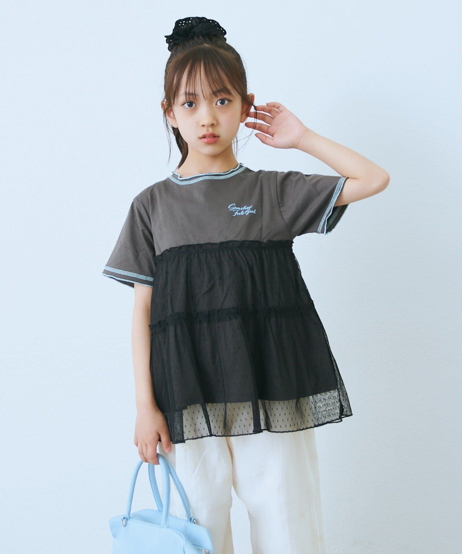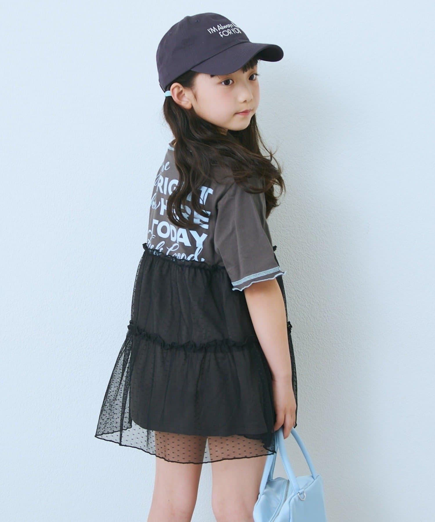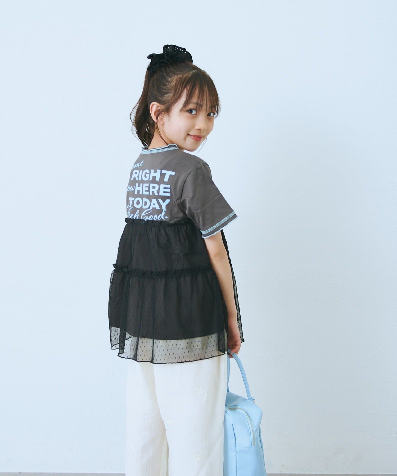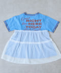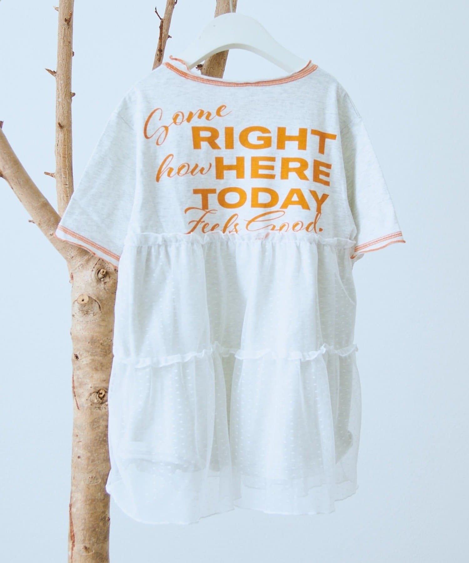 やわらかな綿100%素材に、ドット柄のチュールを重ねた華やかさたっぷりの一枚。