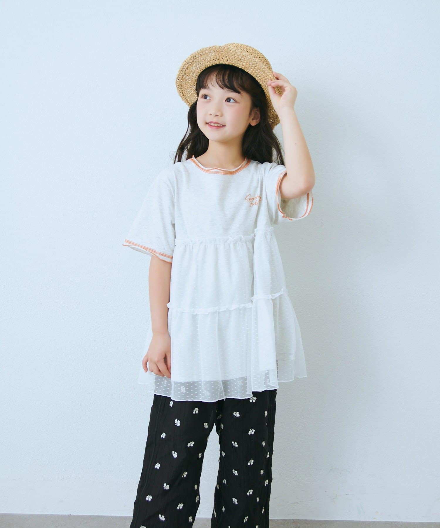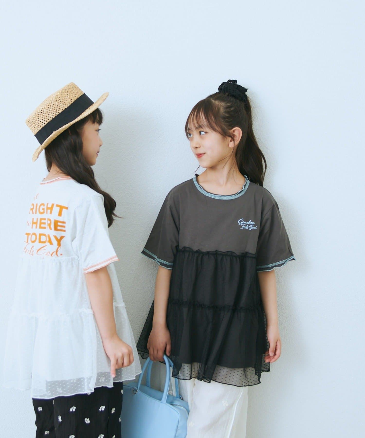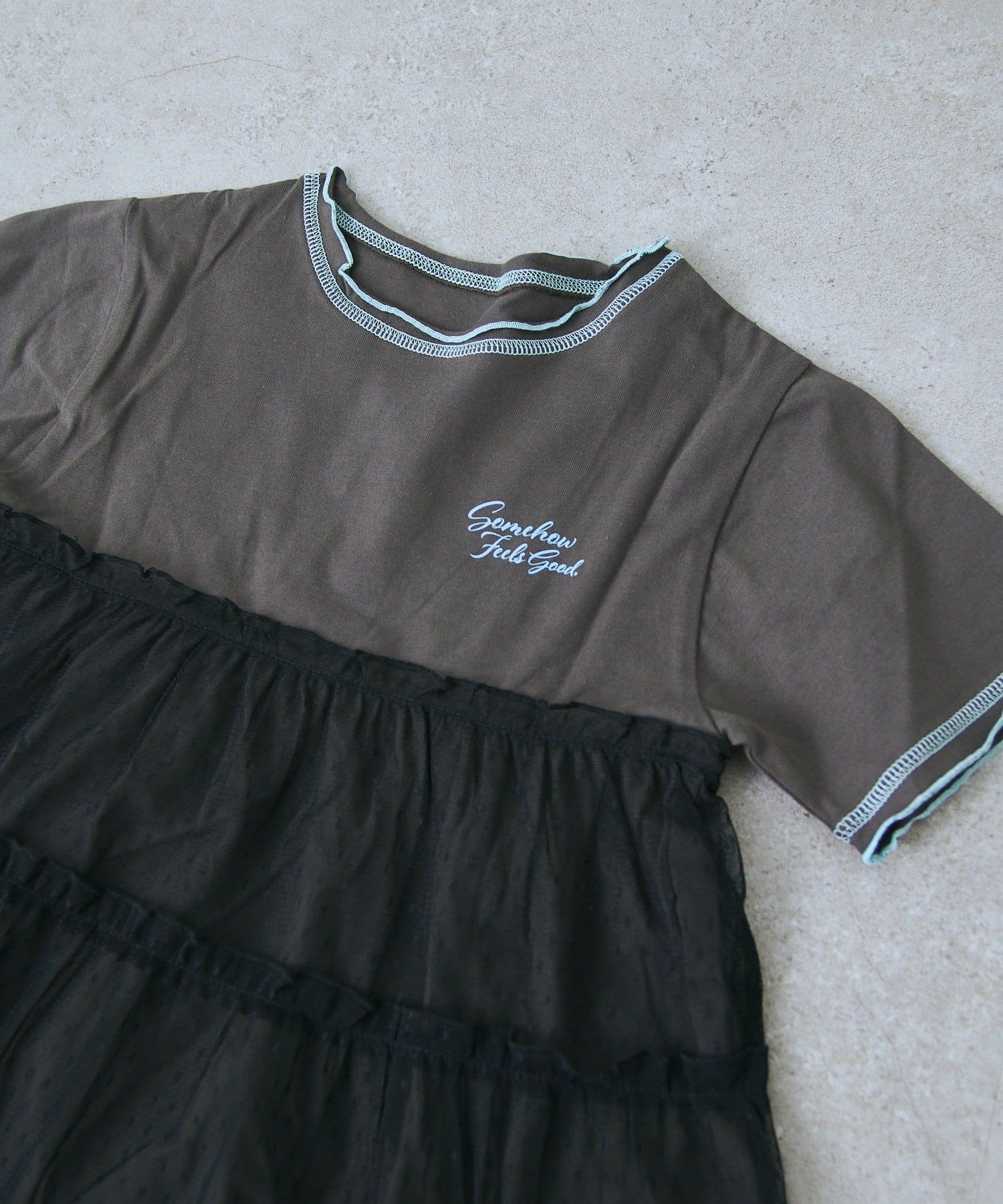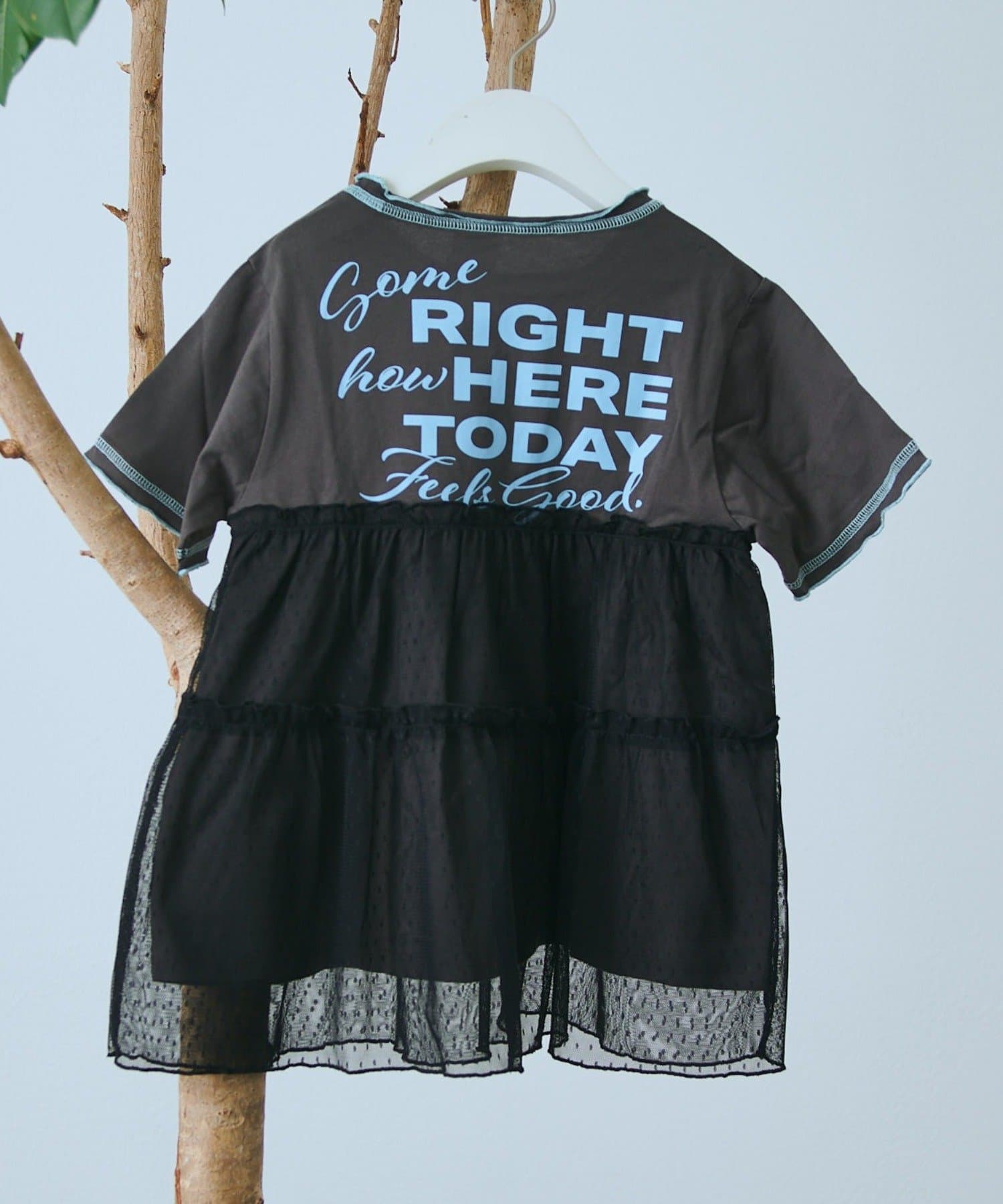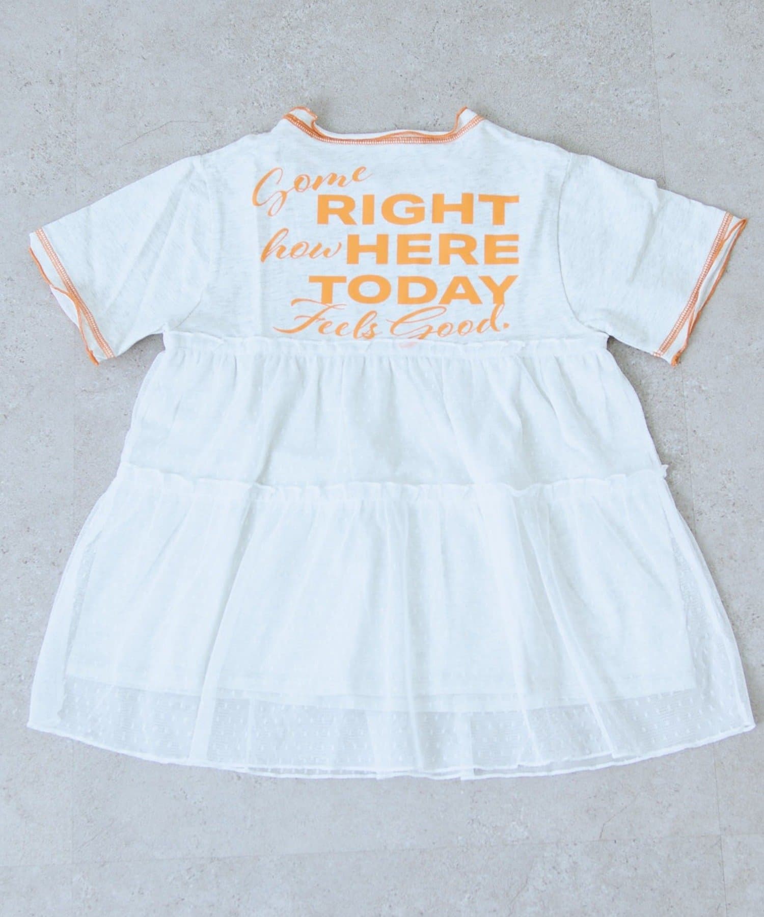 やわらかな綿100%素材に、ドット柄のチュールを重ねた華やかさたっぷりの一枚。