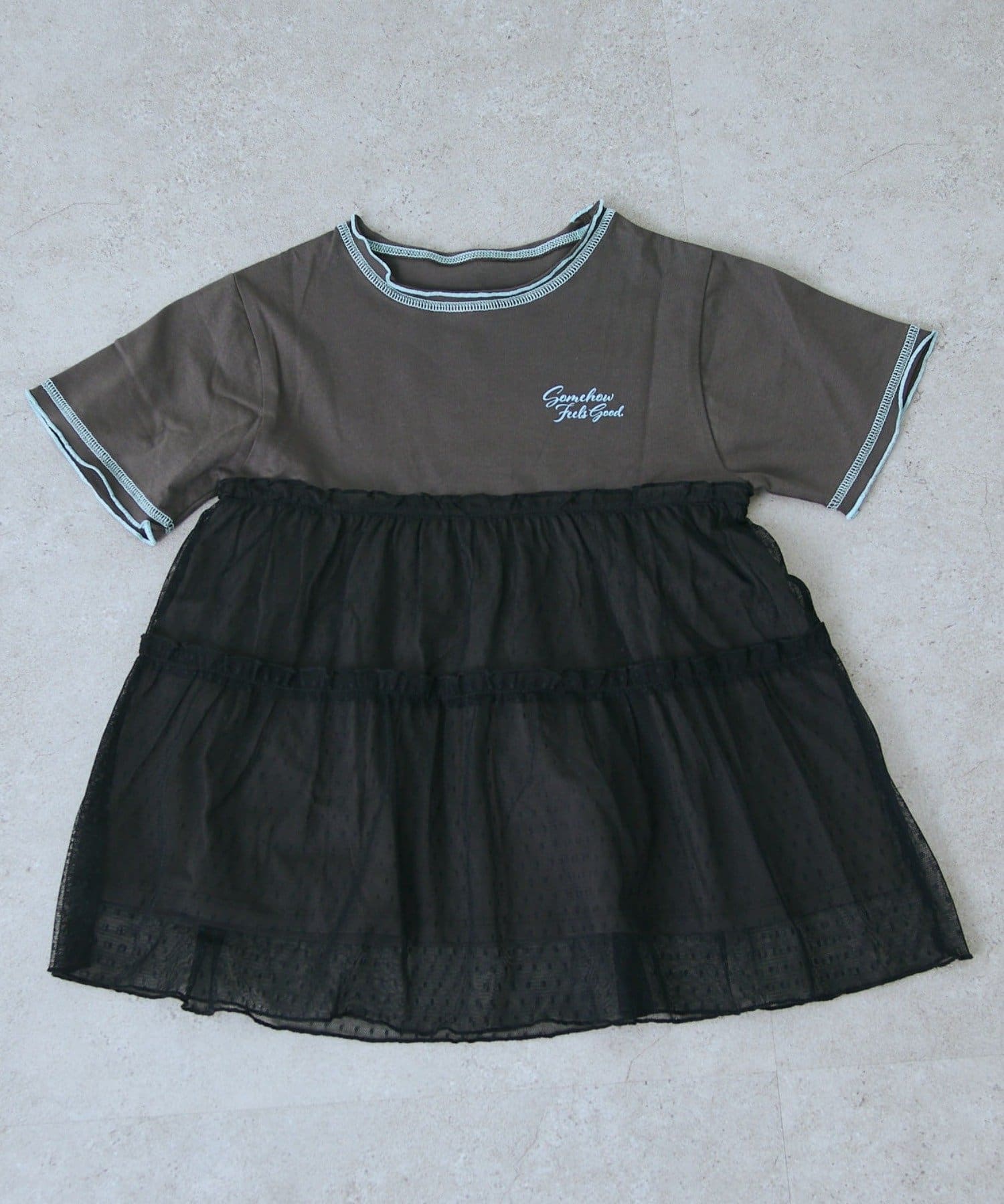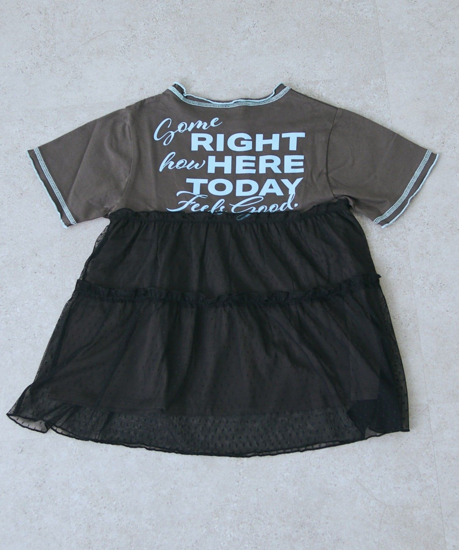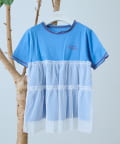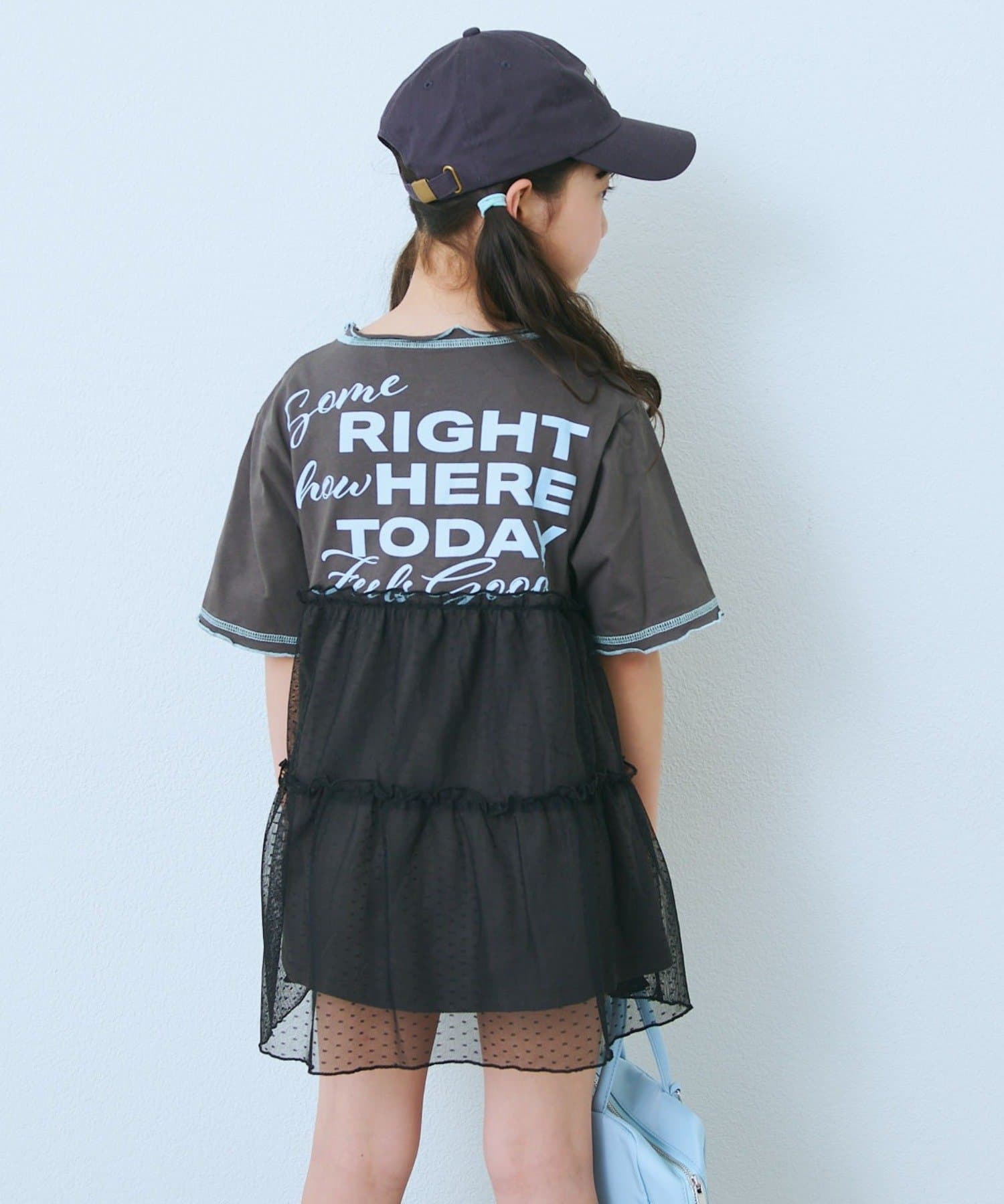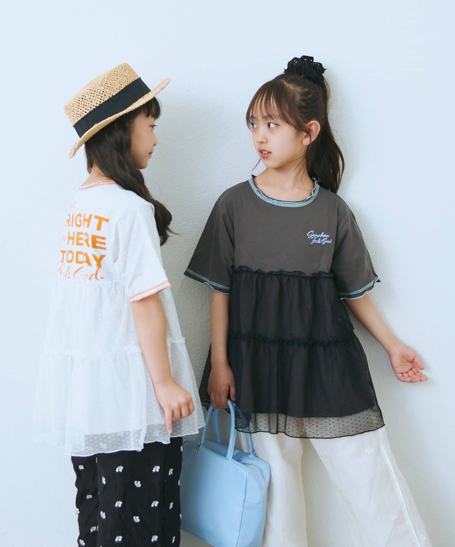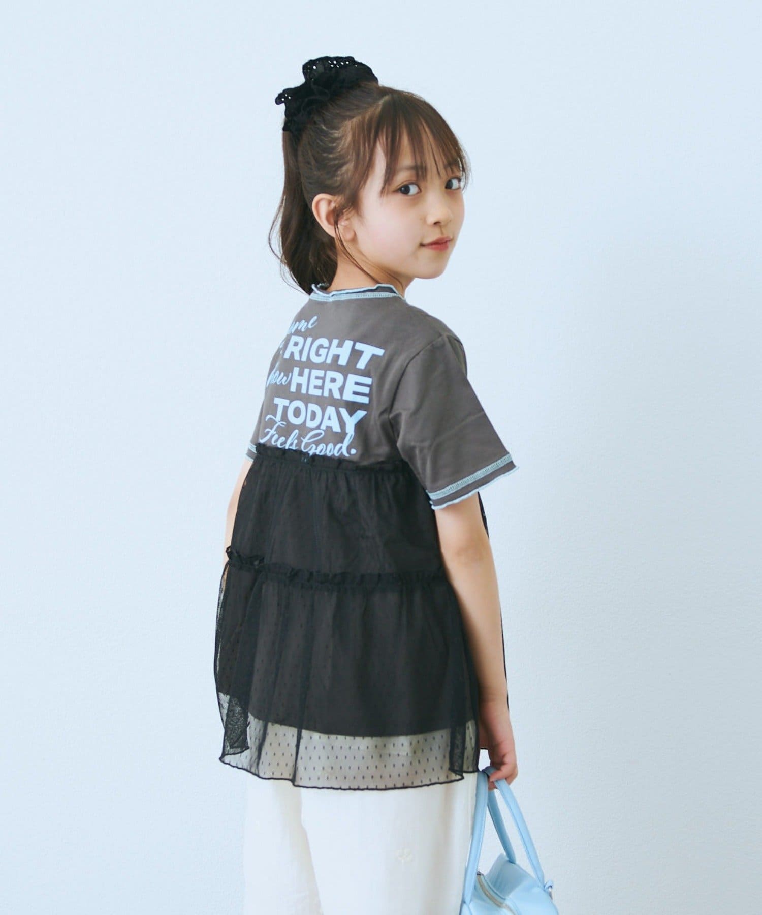 やわらかな綿100%素材に、ドット柄のチュールを重ねた華やかさたっぷりの一枚。