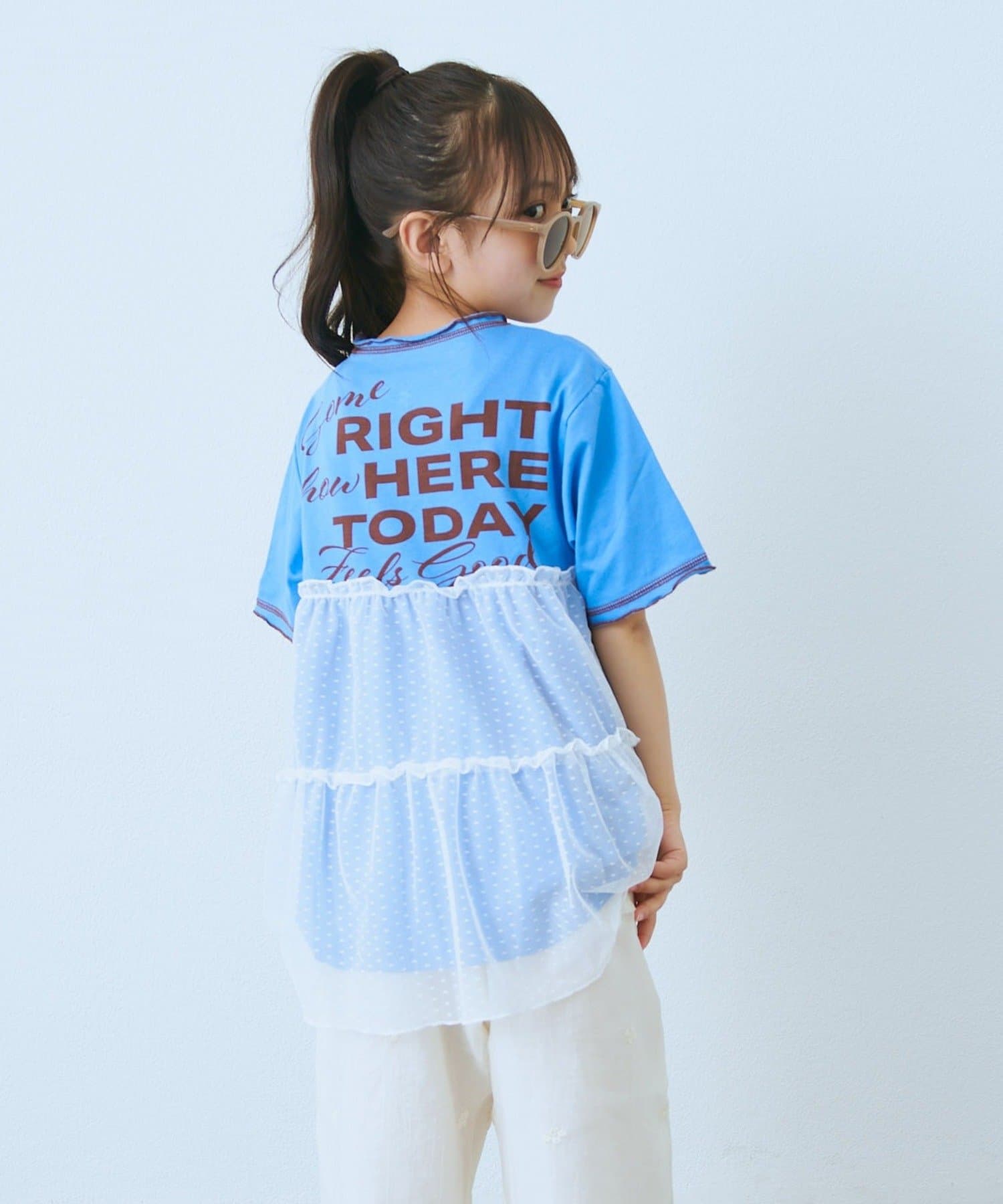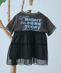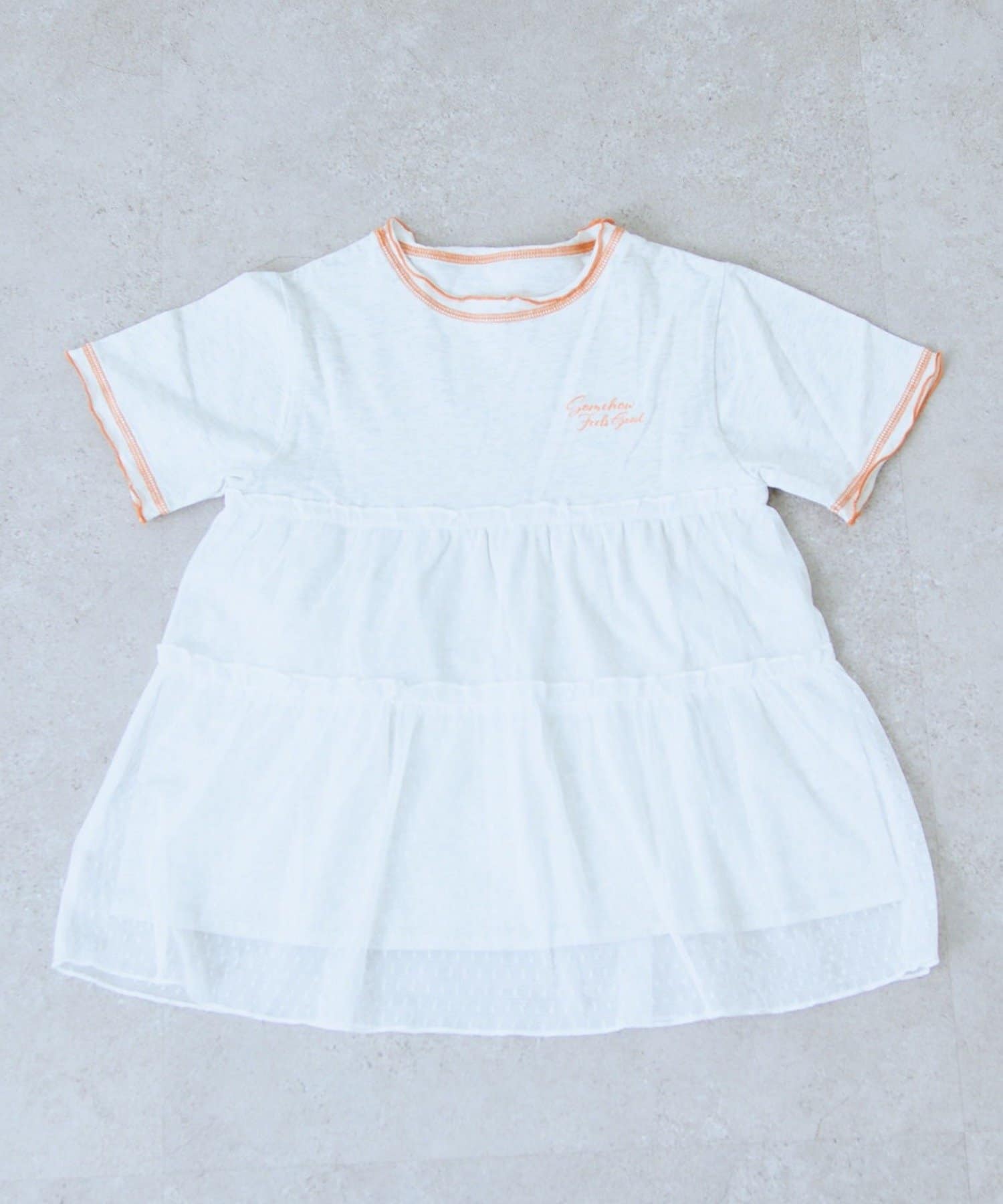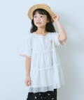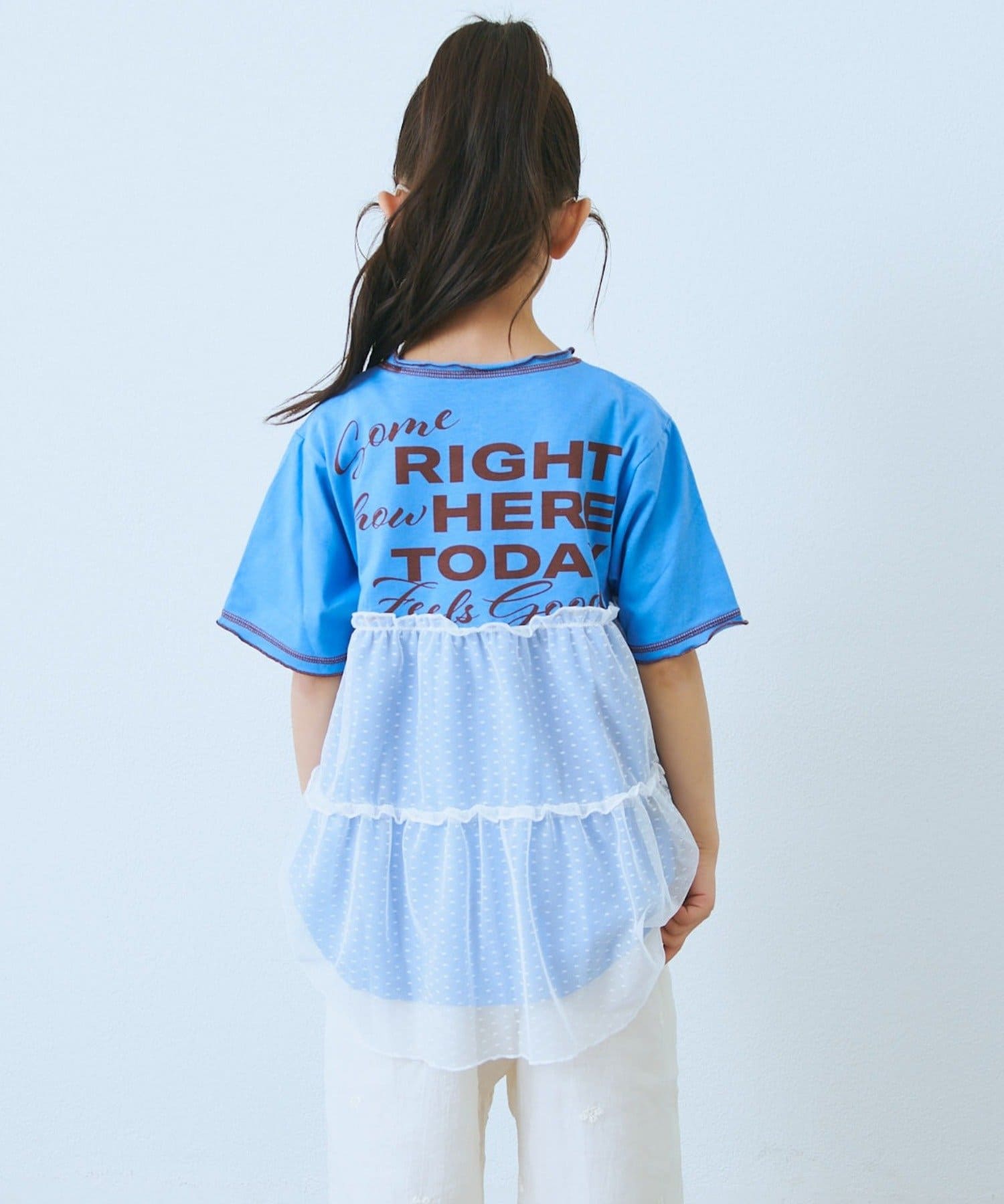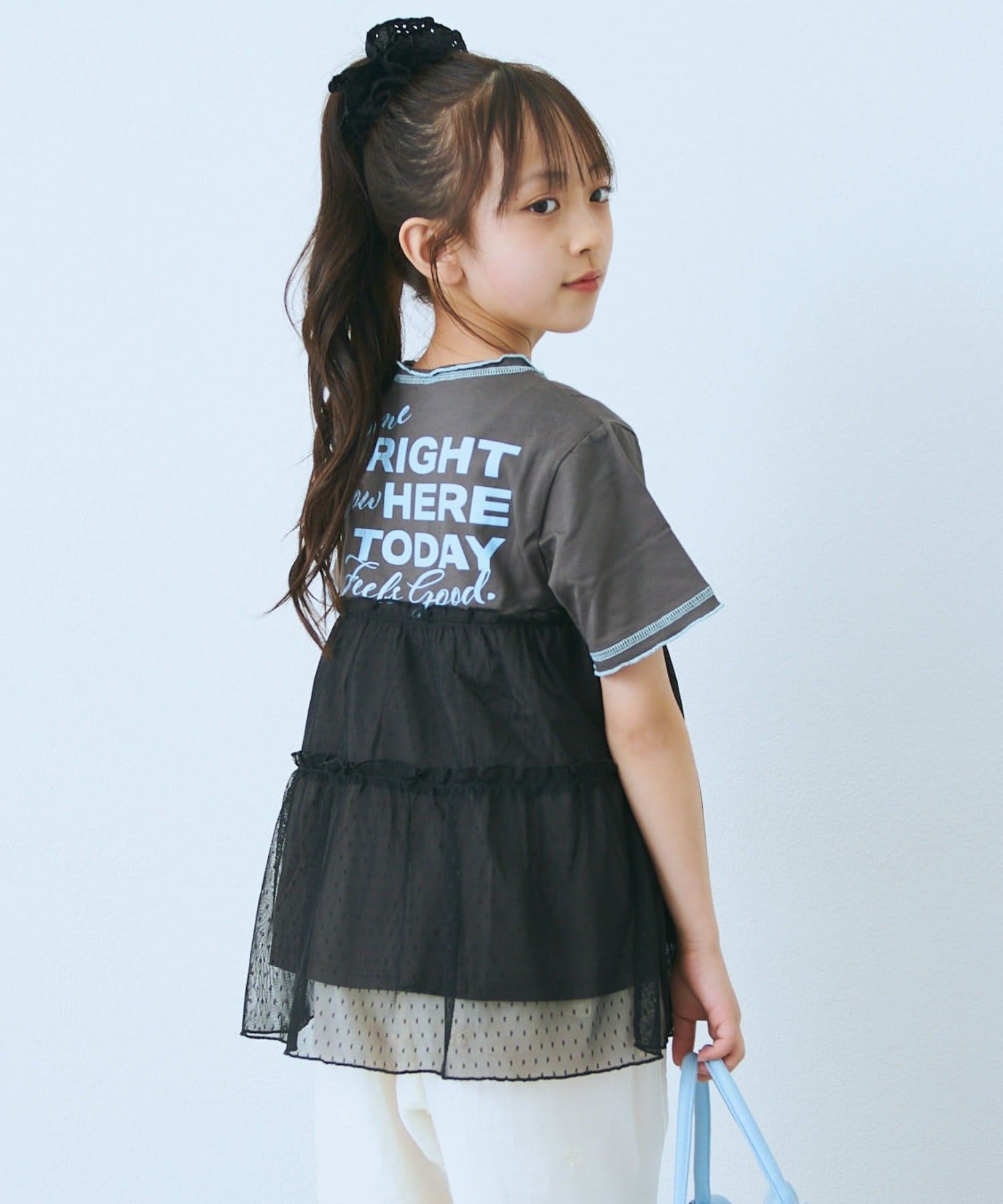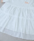 やわらかな綿100%素材に、ドット柄のチュールを重ねた華やかさたっぷりの一枚。