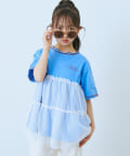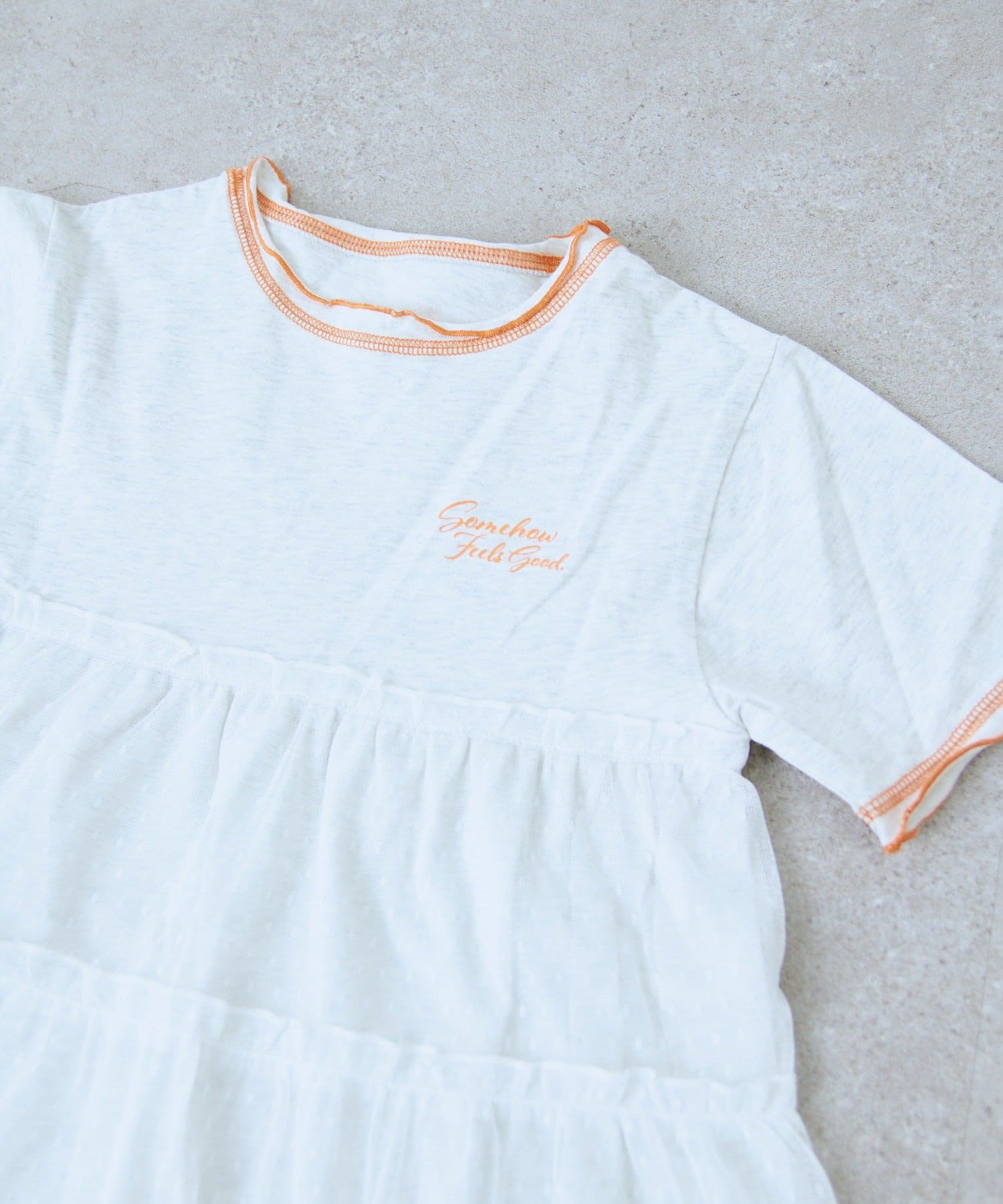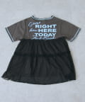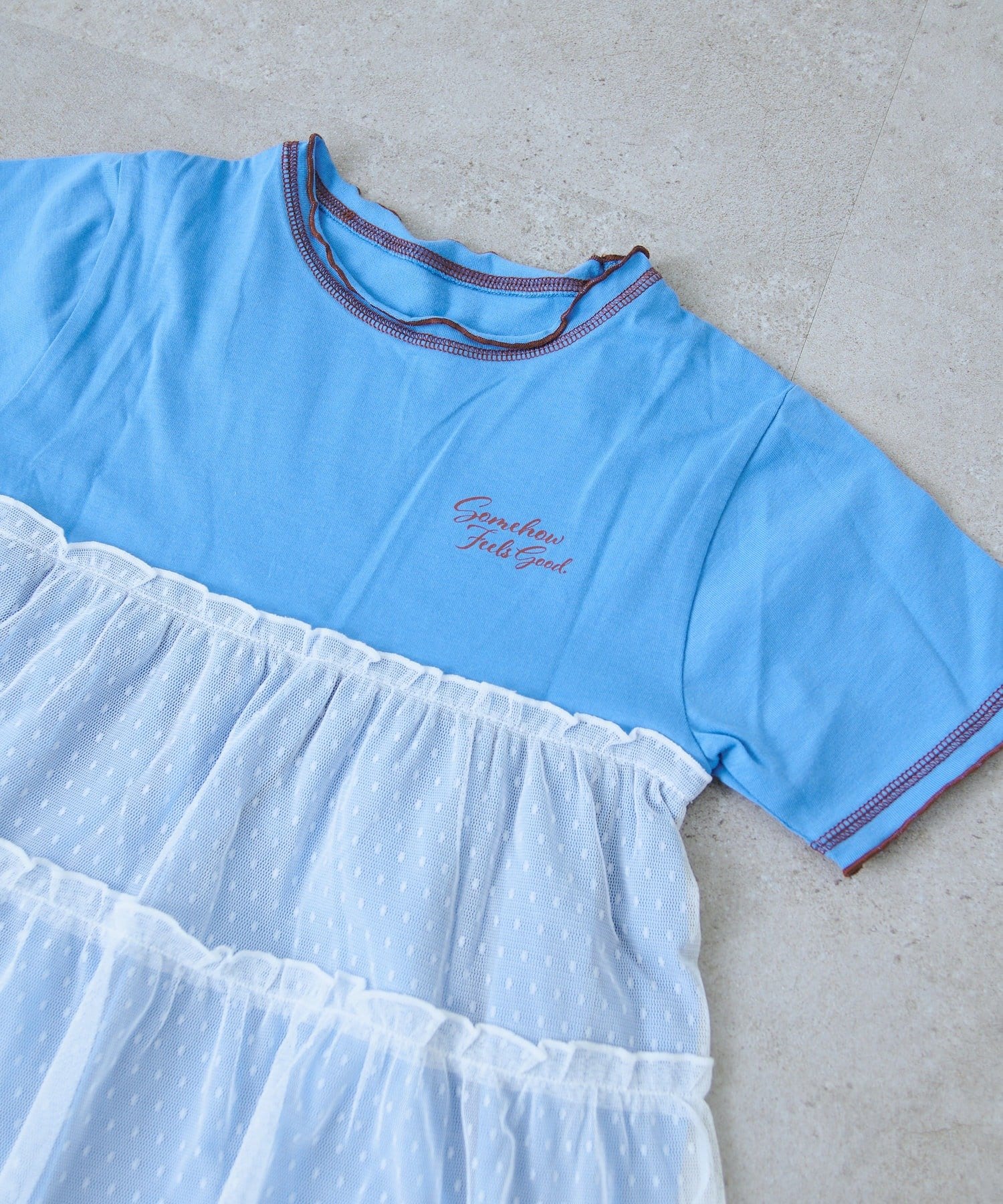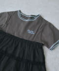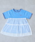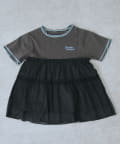 【KIDS】ドットチュールドッキング配色ステッチワンピース