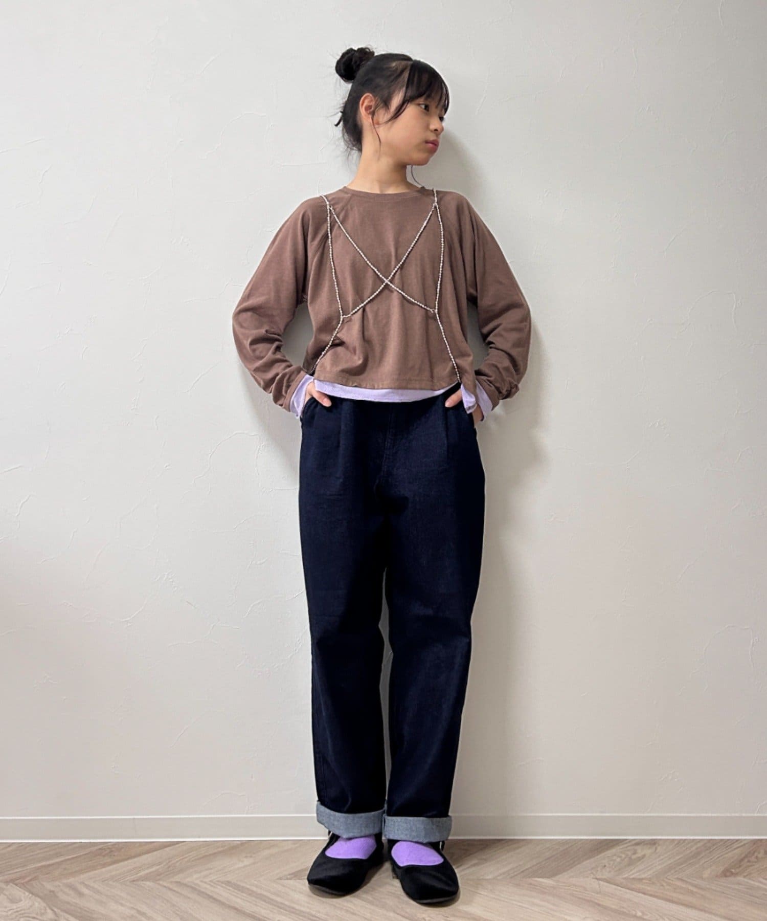 程よい薄手のTシャツなので、サロペットやキャミワンピースのインナーなどにもおすすめです。