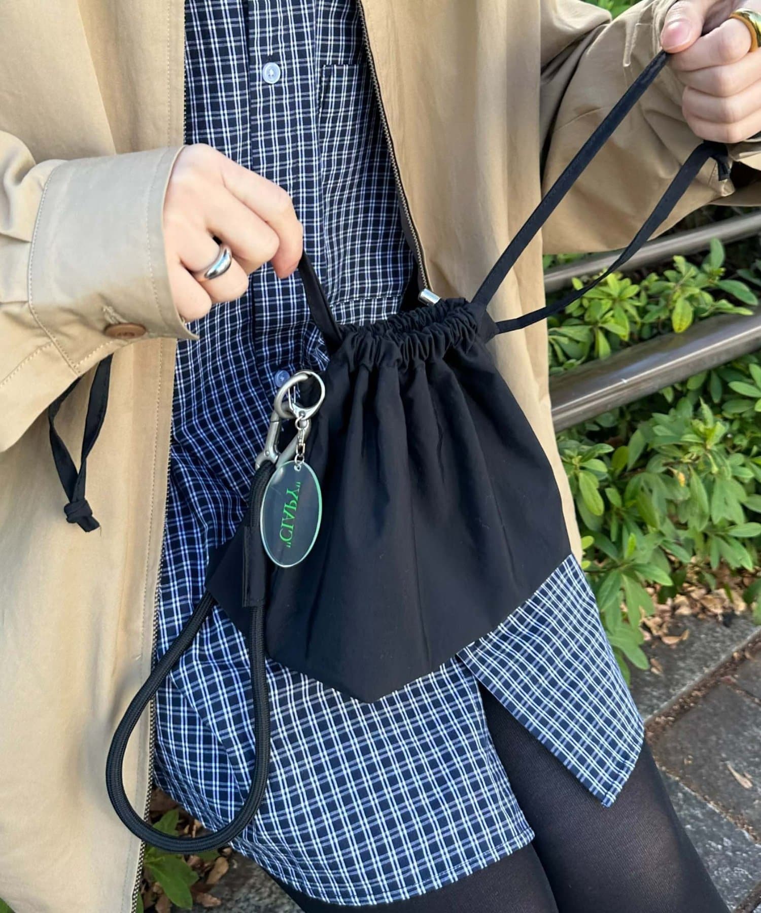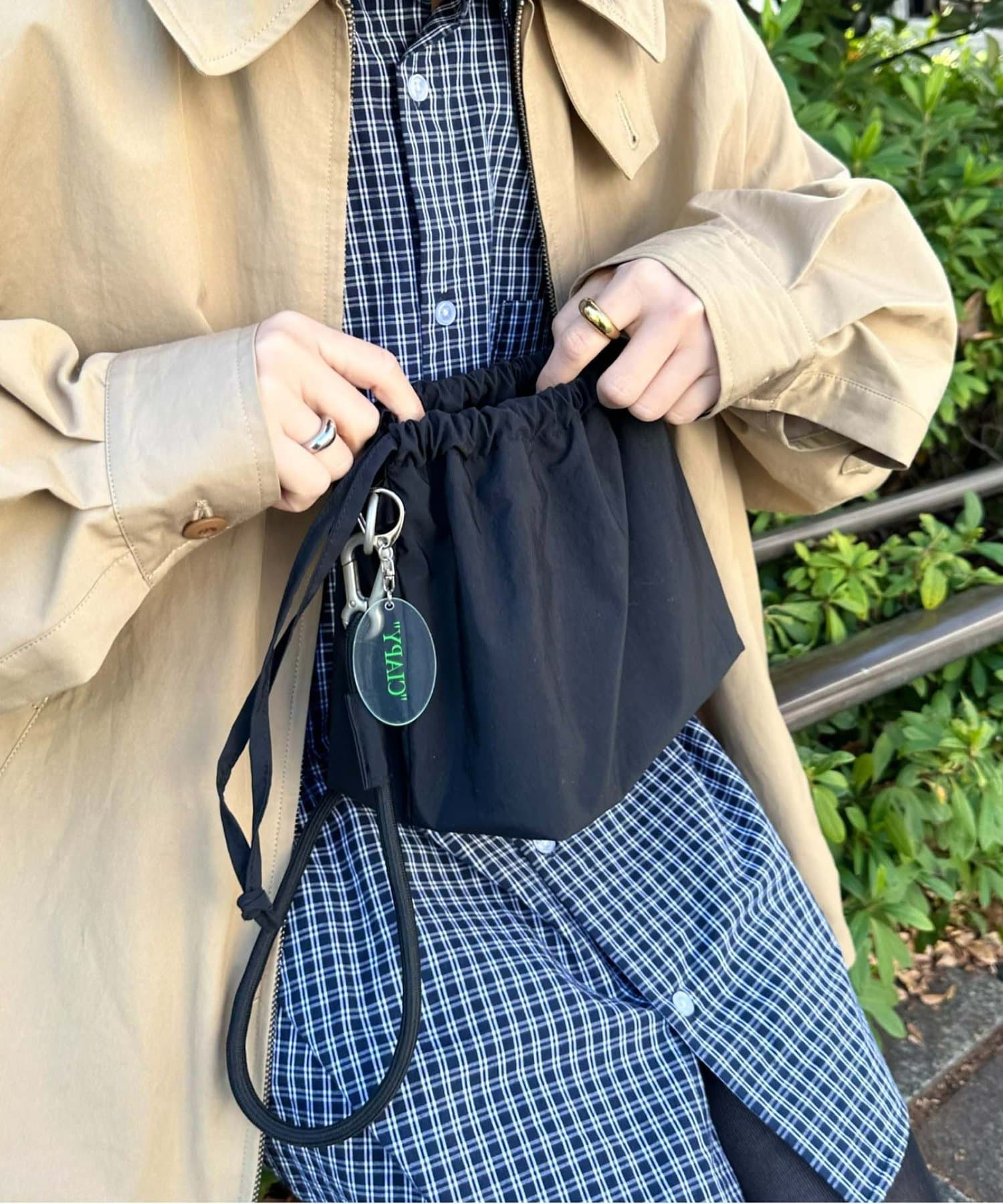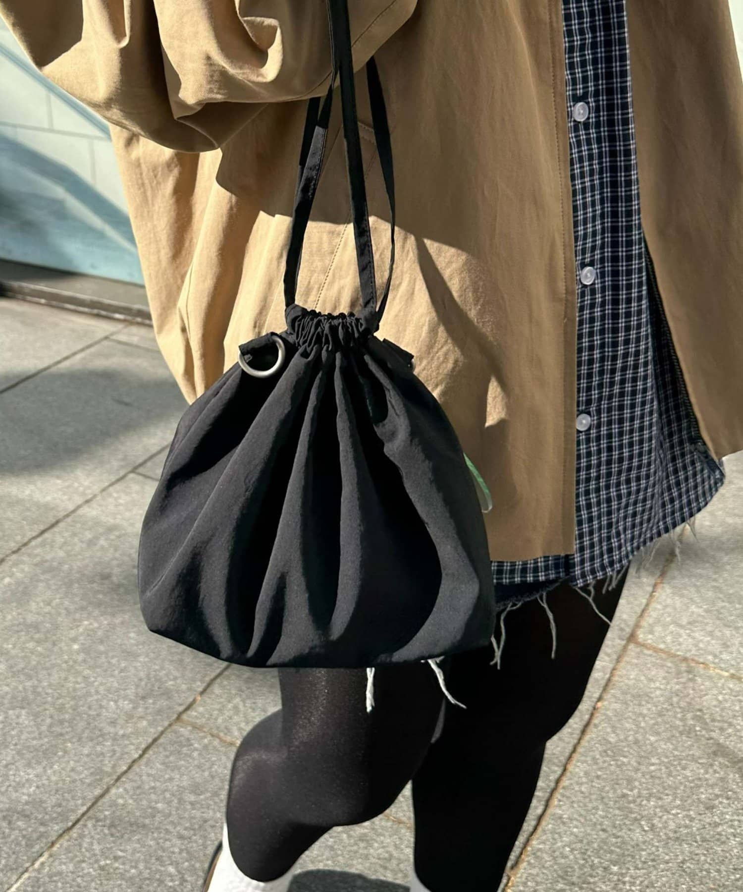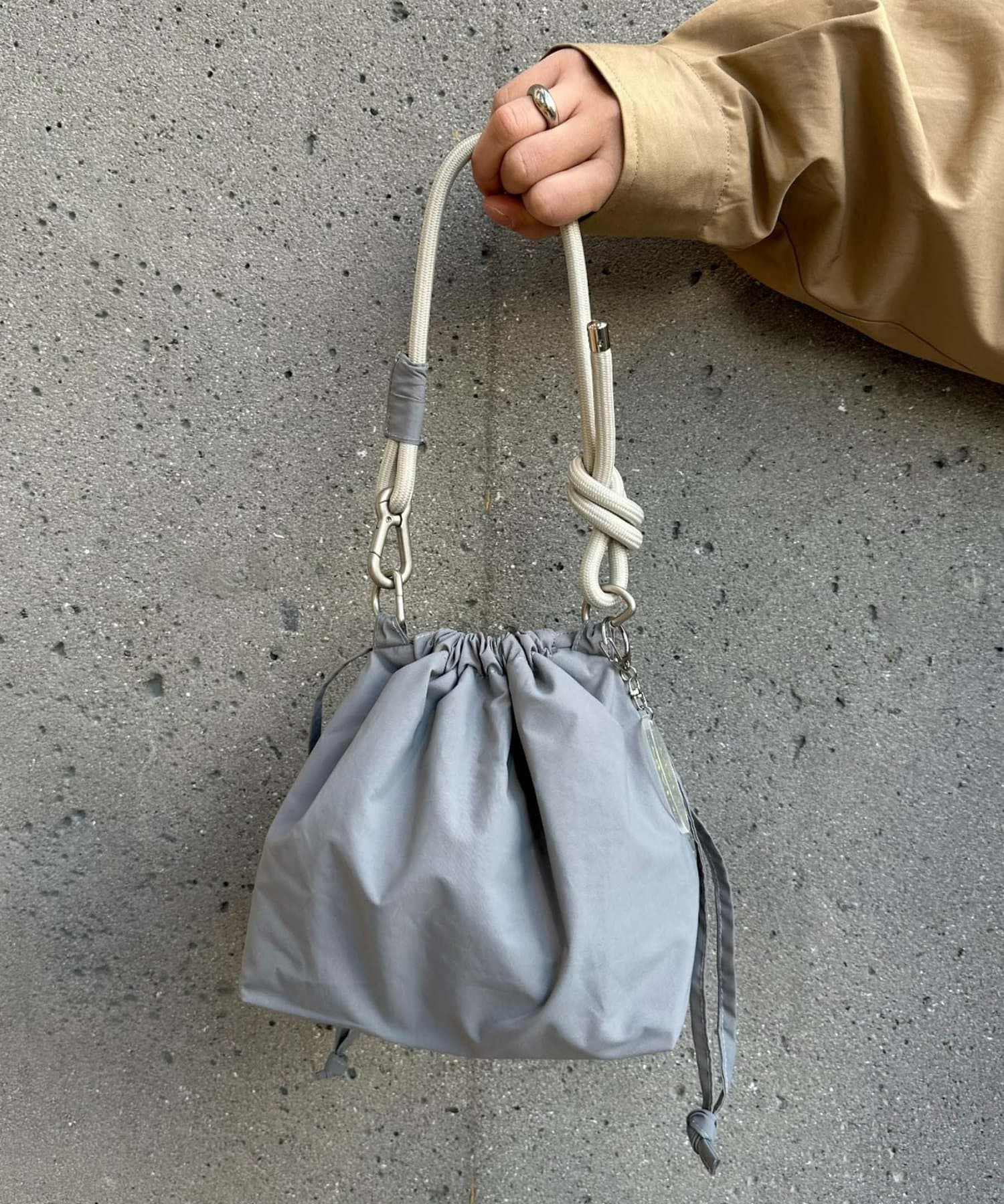 トレンド感のある巾着バッグを