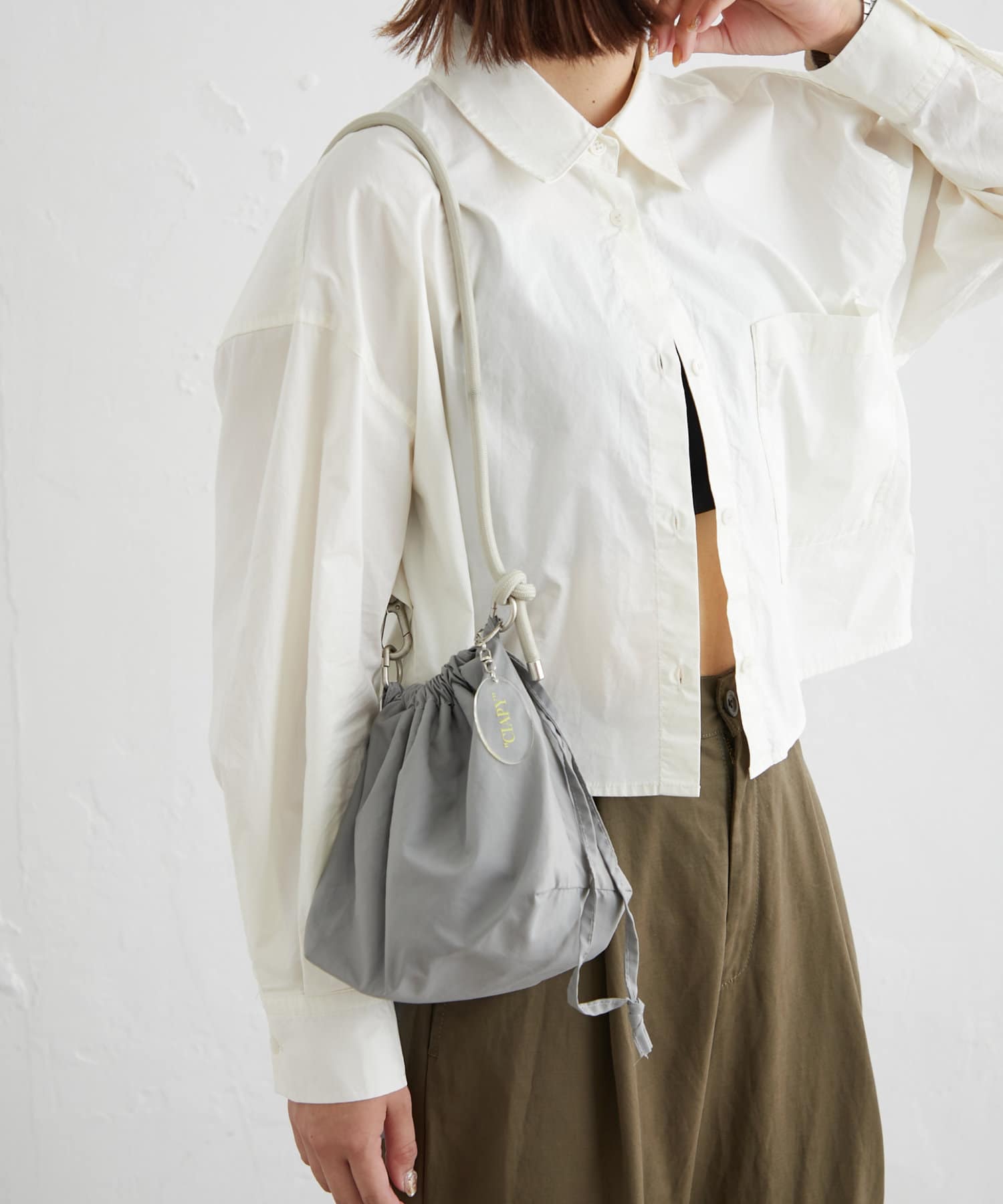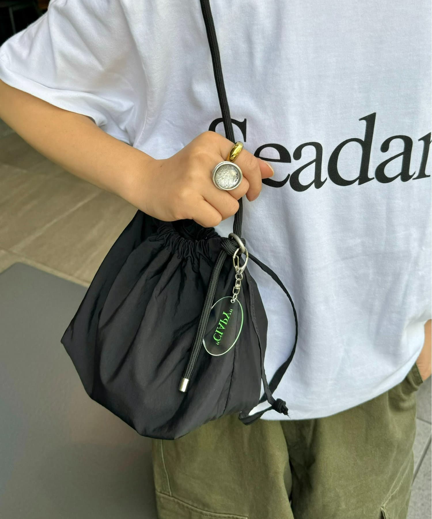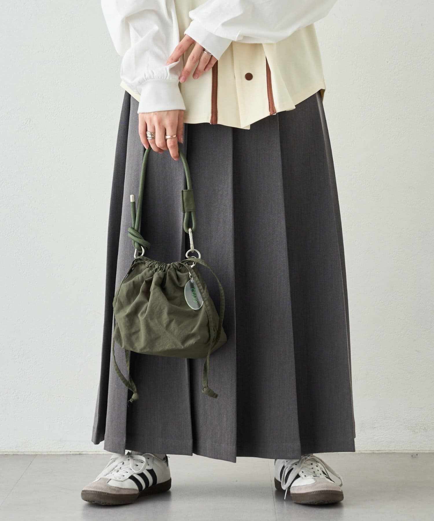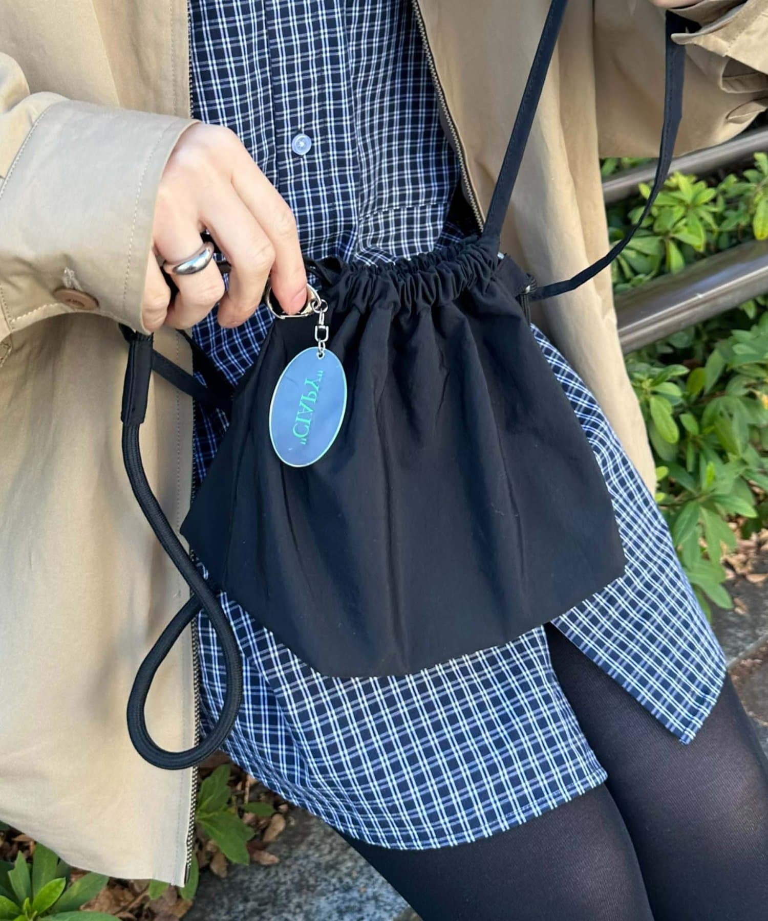 トレンド感のある巾着バッグを