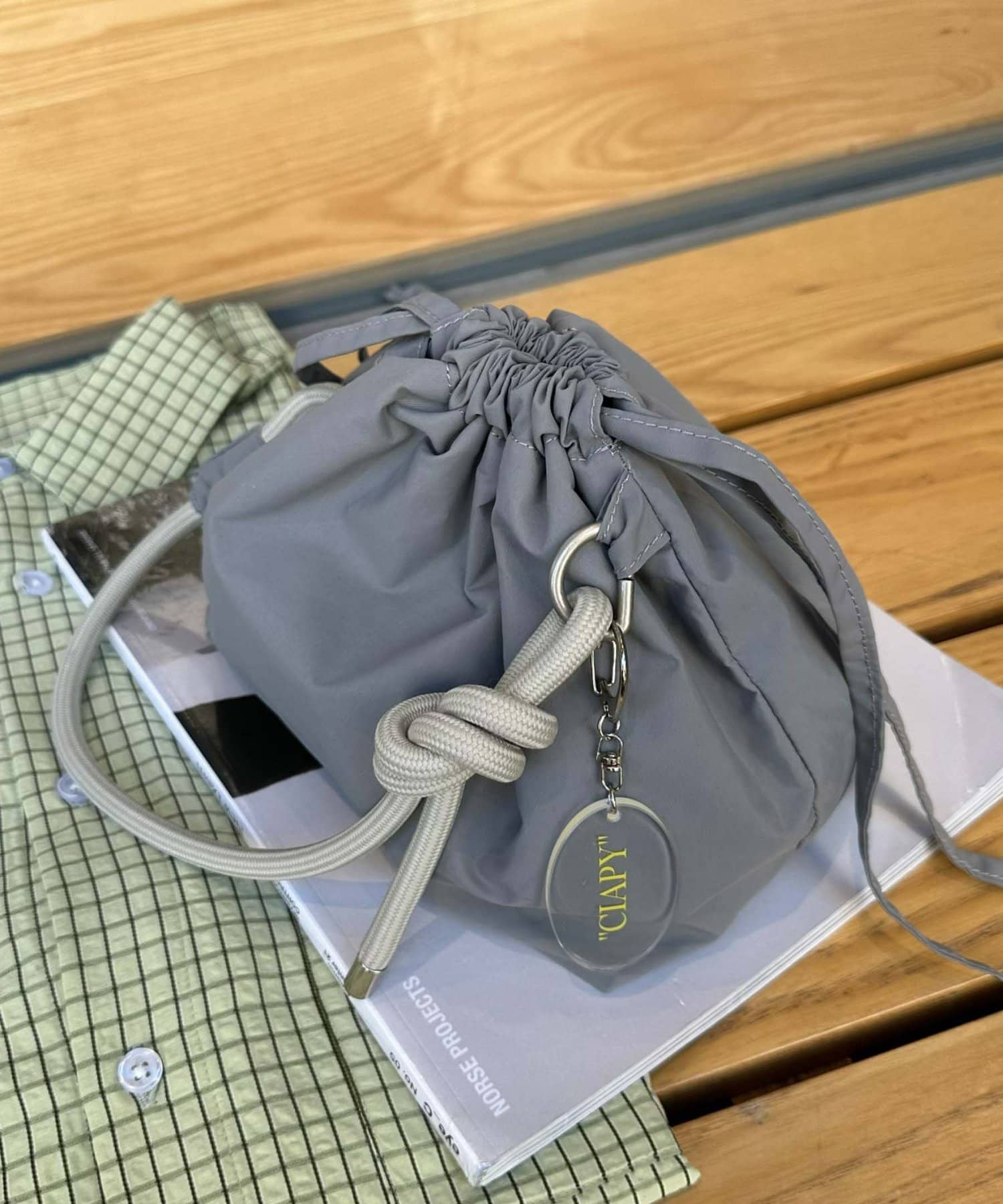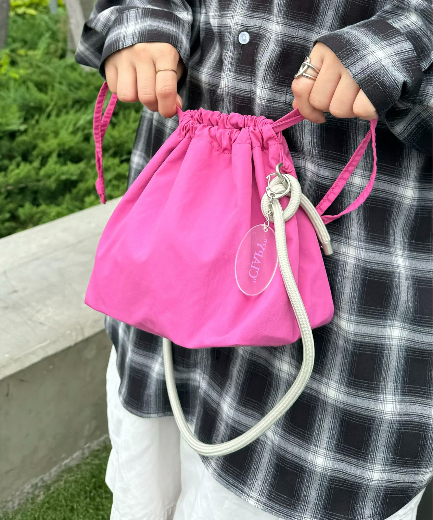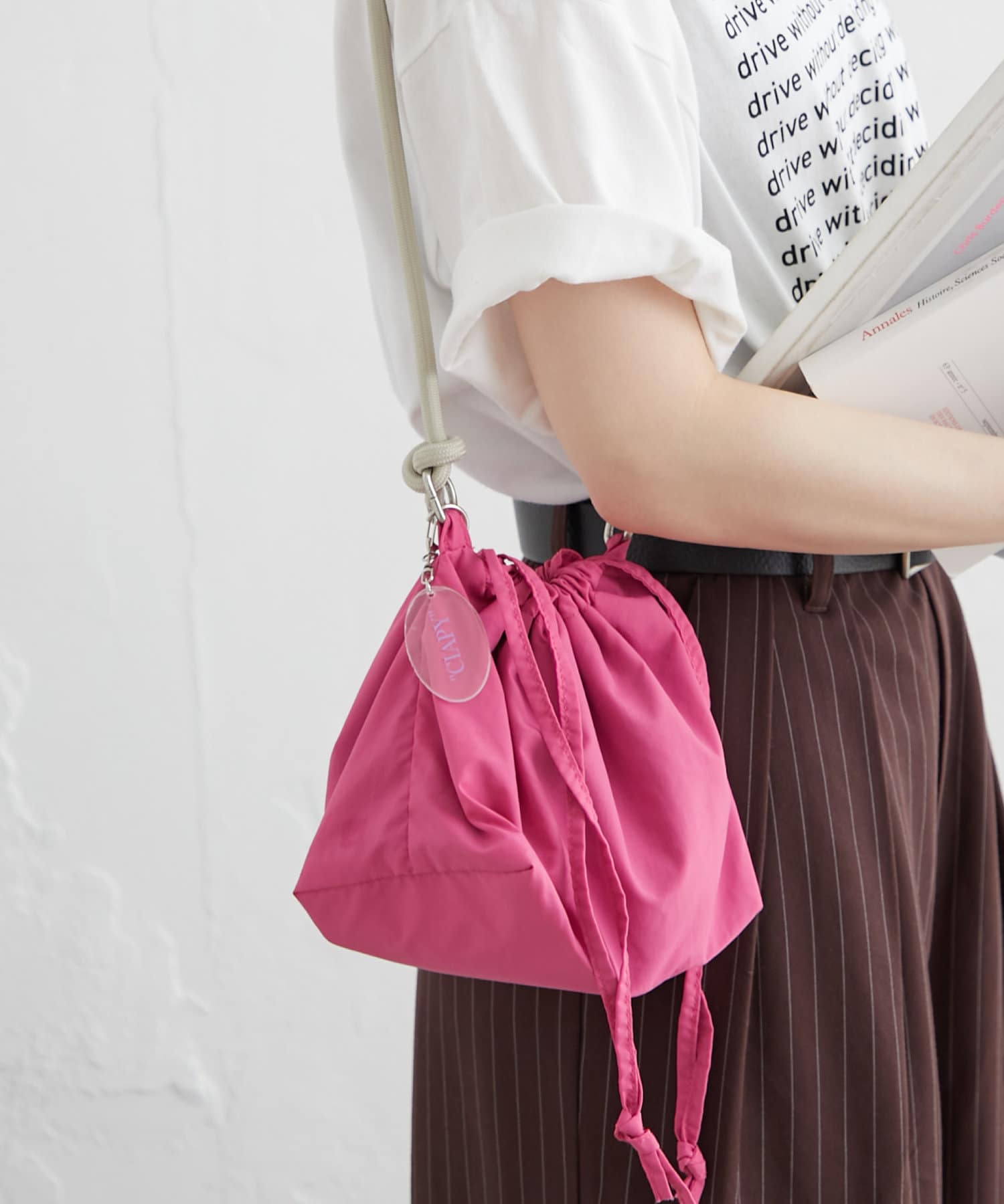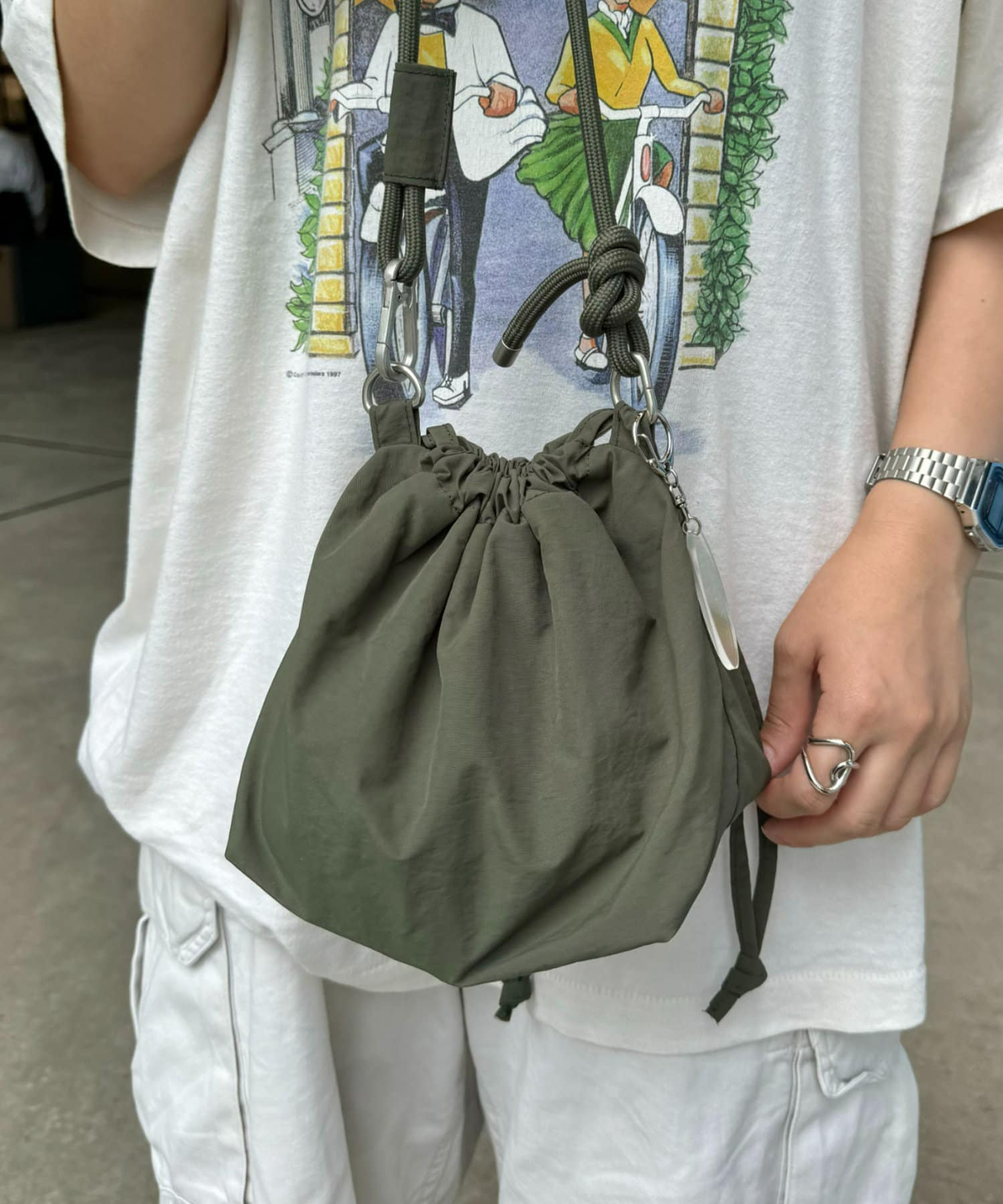 トレンド感のある巾着バッグを